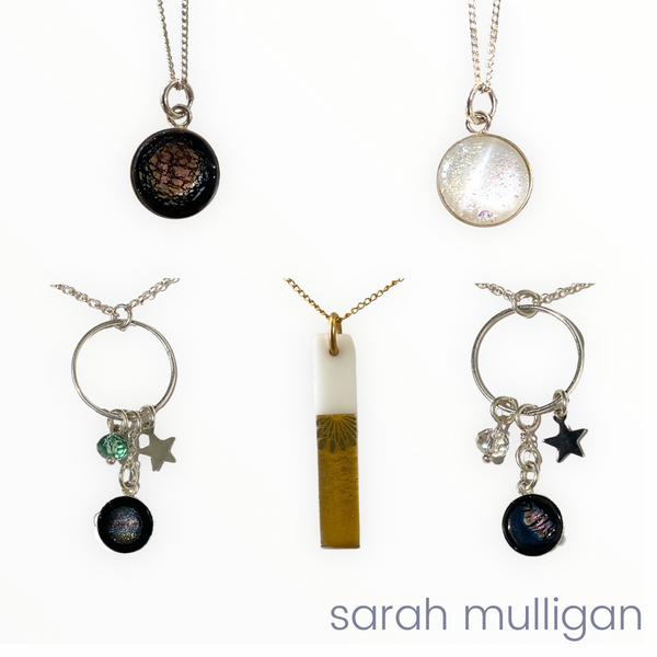 Sarah Mulligan Glass Art Necklaces Dichroic Glass pendant with nickel-free, .925 sterling silver chain and findings. ...