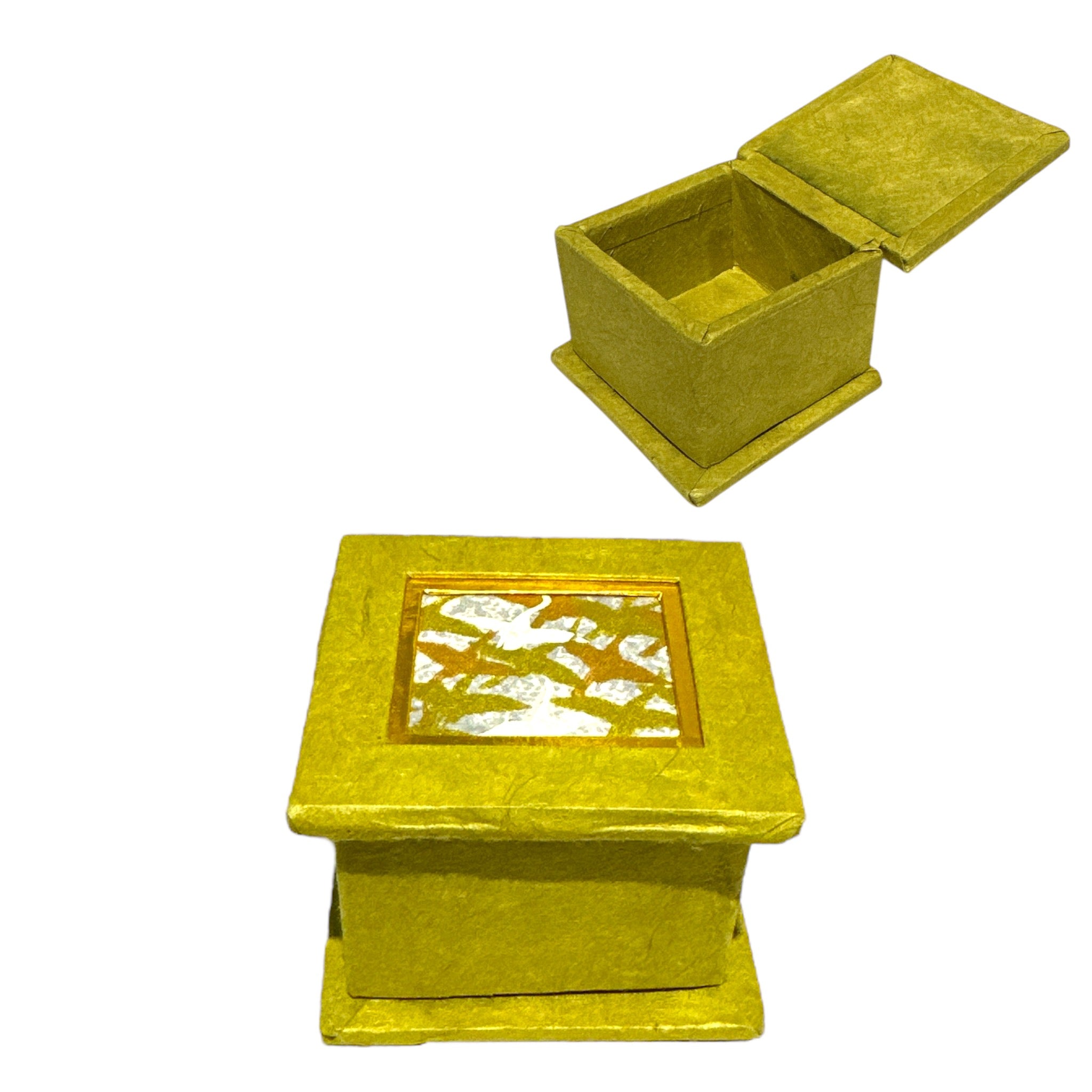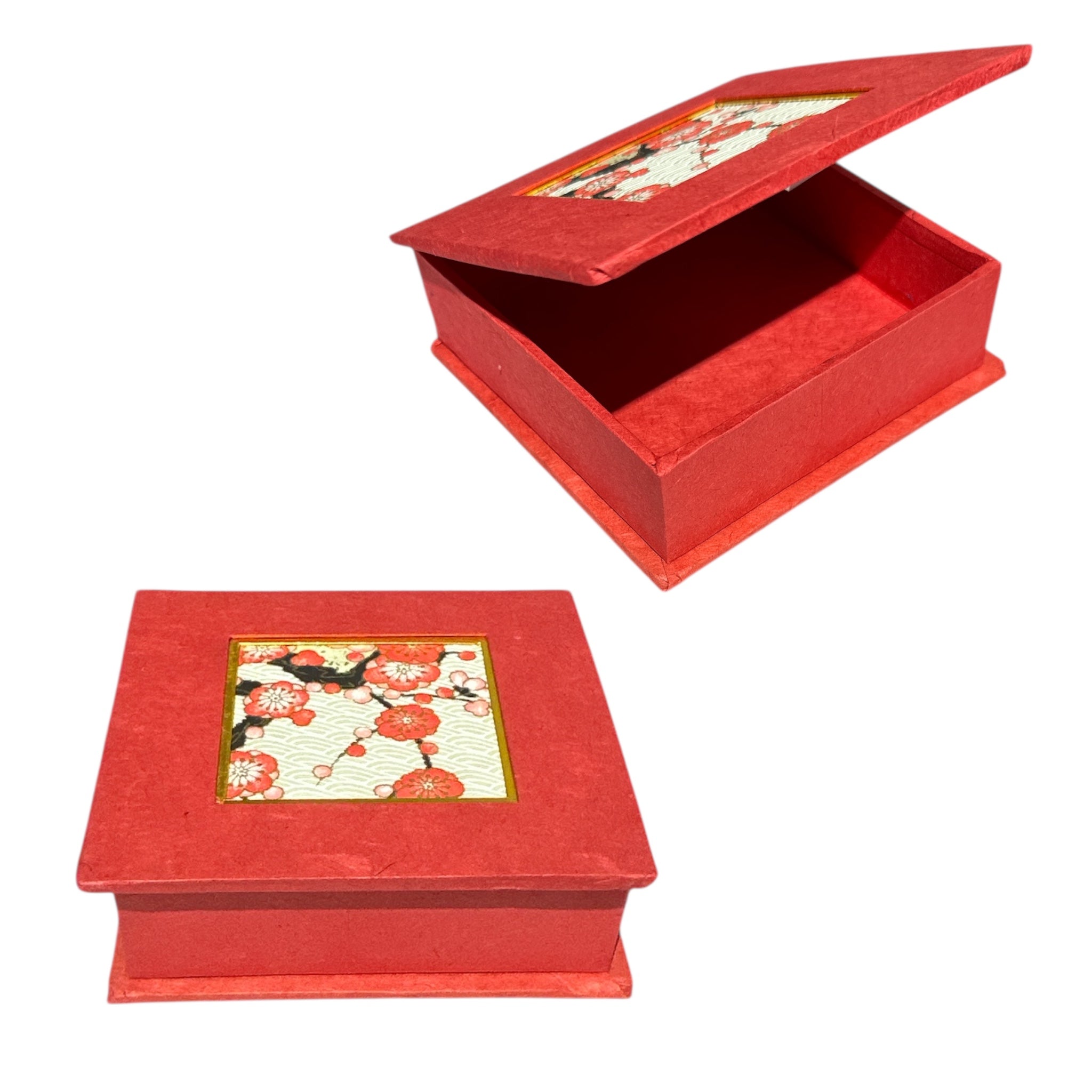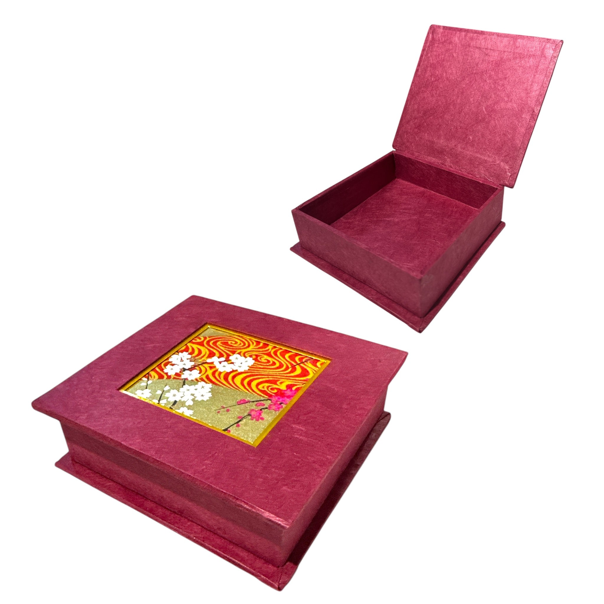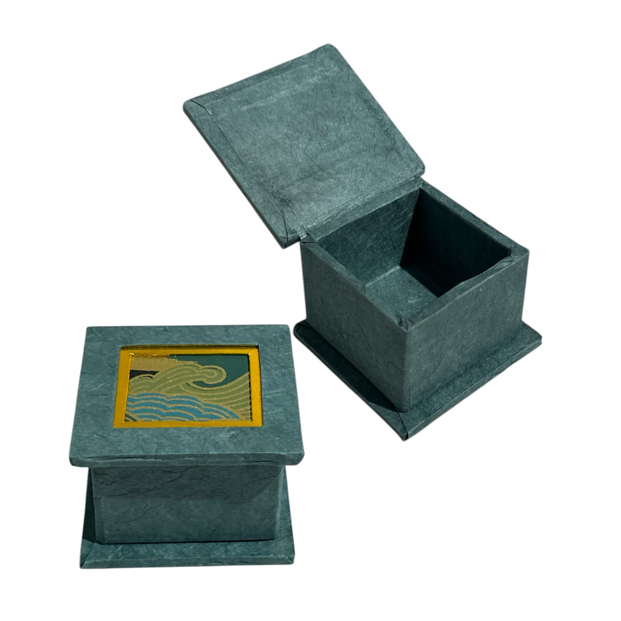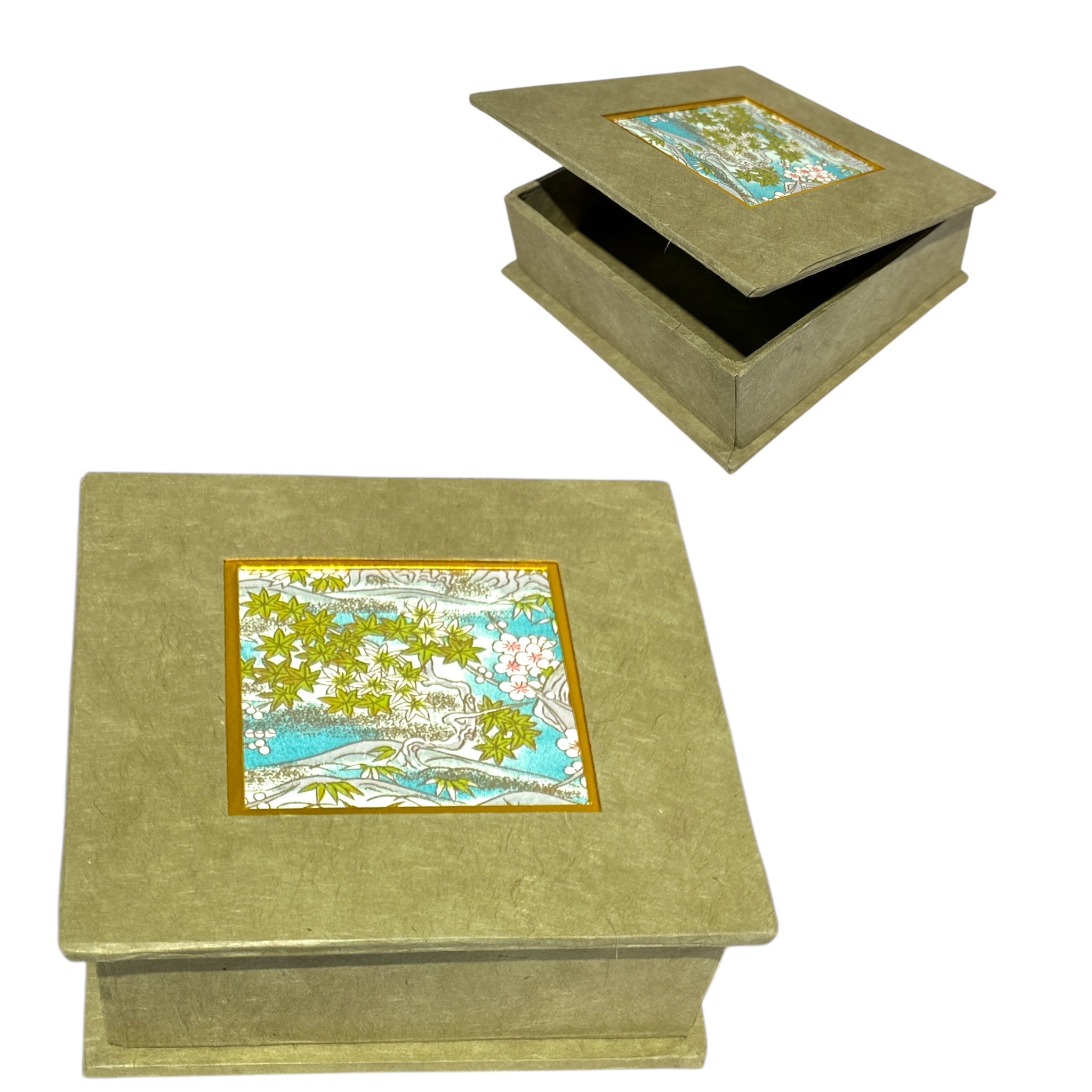 Assortment of boxes made of Nepalese lokta paper with windows of Japanese chiyogami and katazome