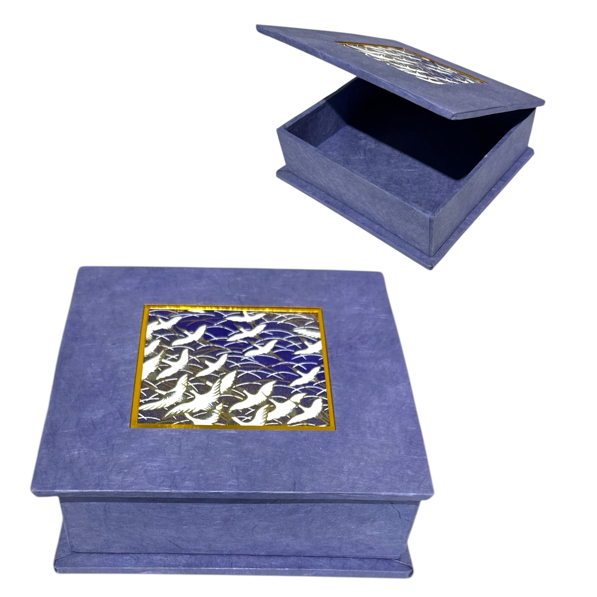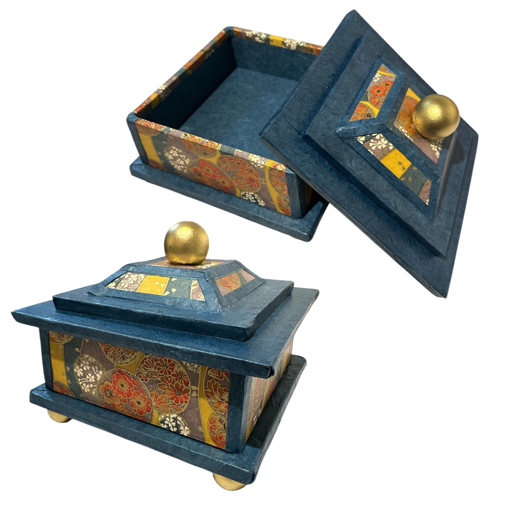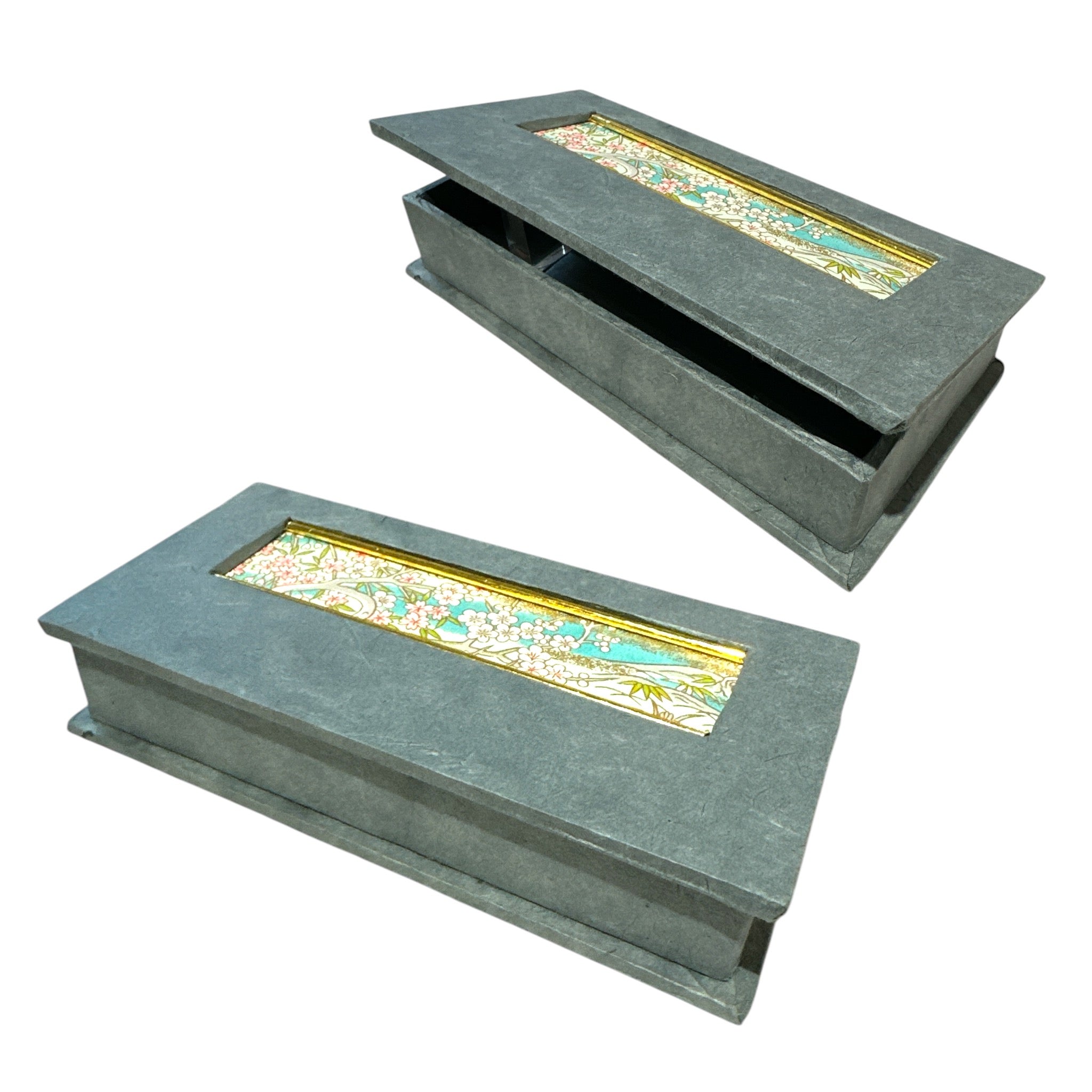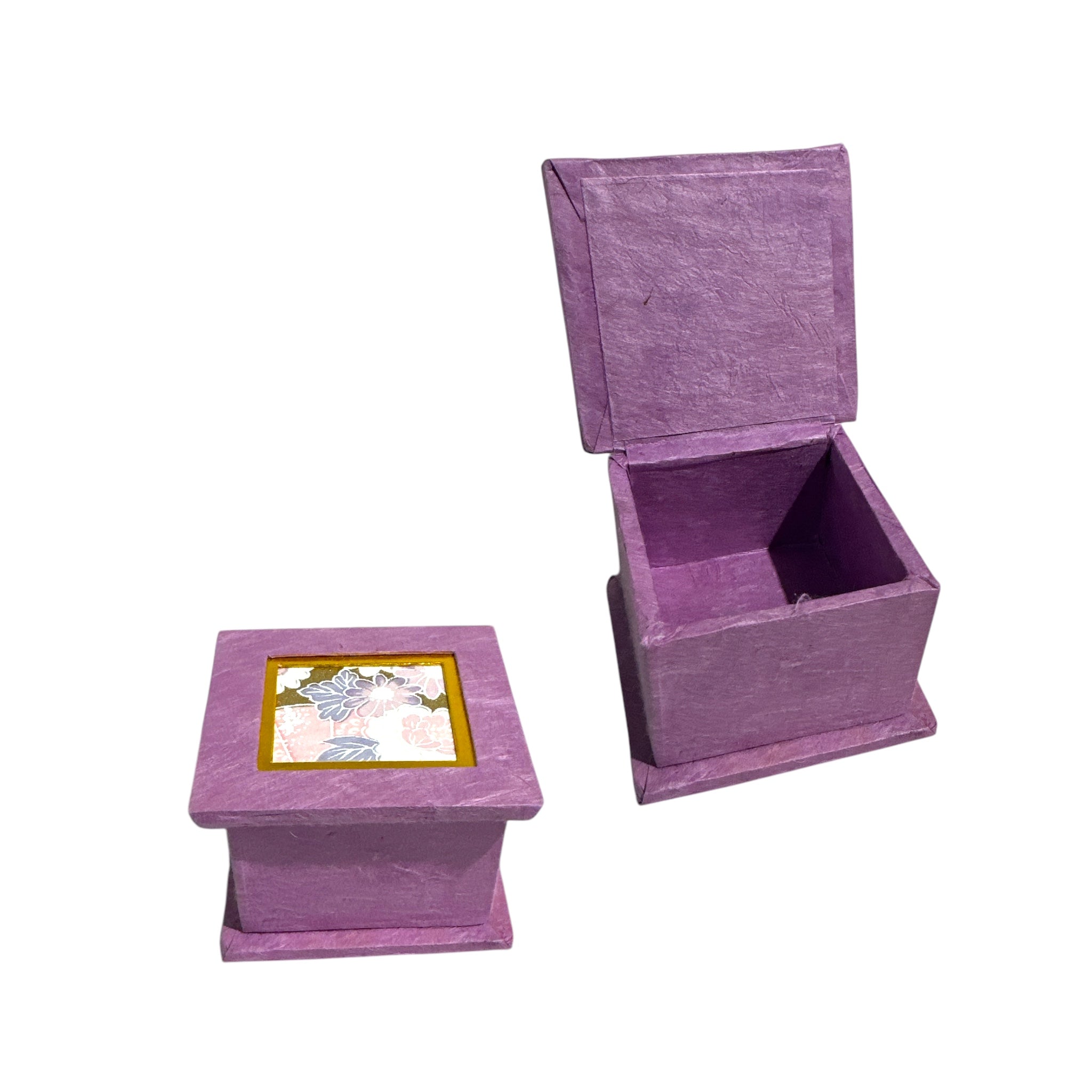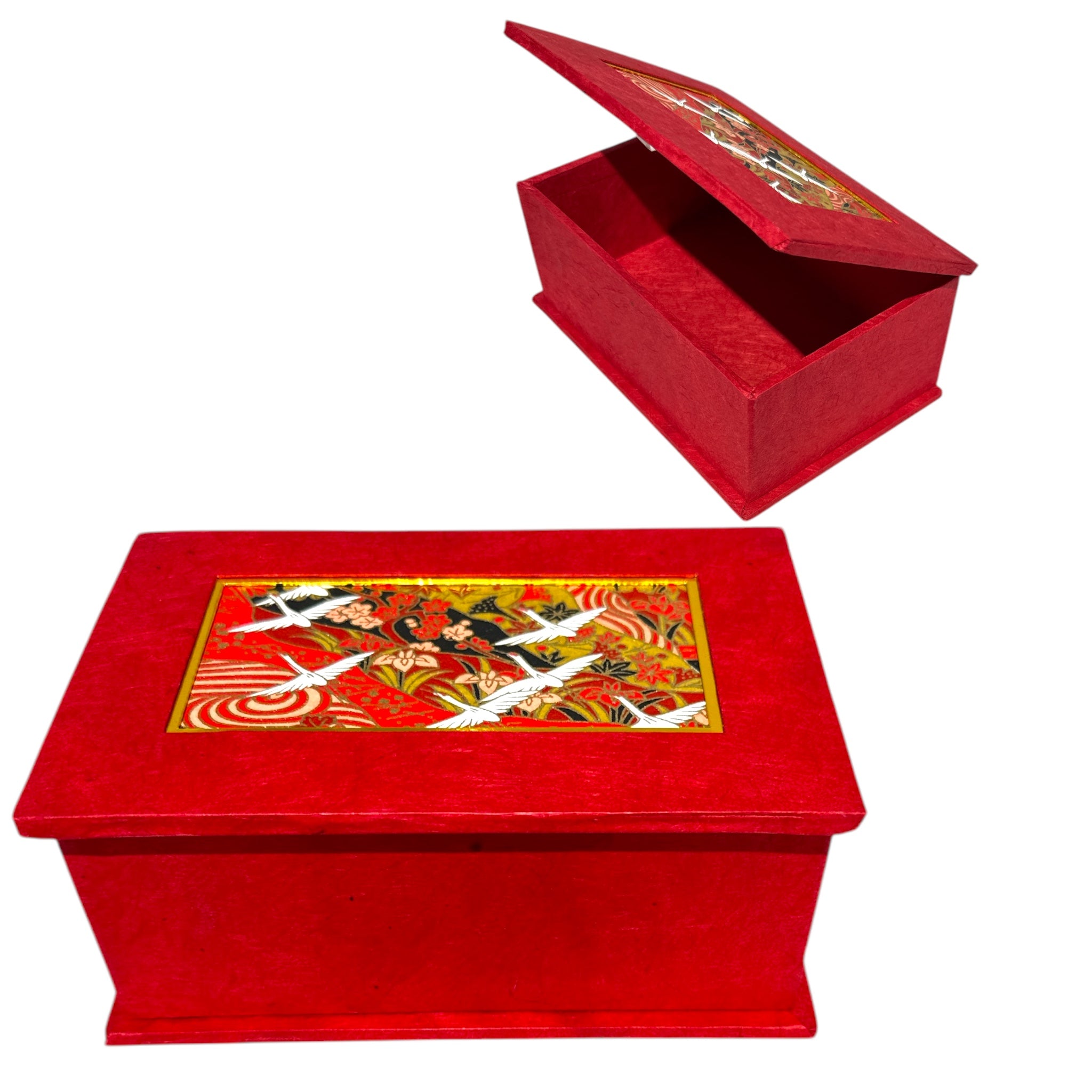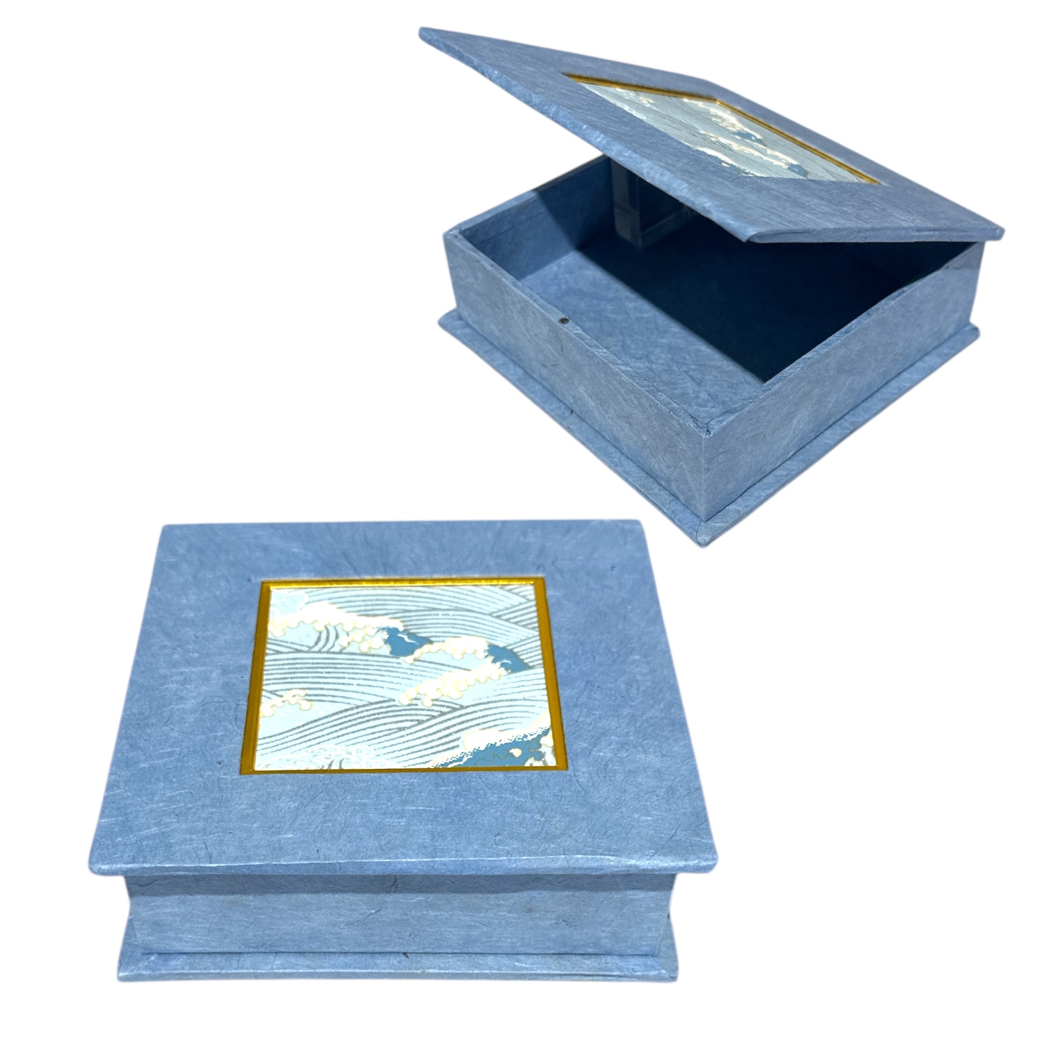 Assortment of boxes made of Nepalese lokta paper with windows of Japanese chiyogami and katazome
