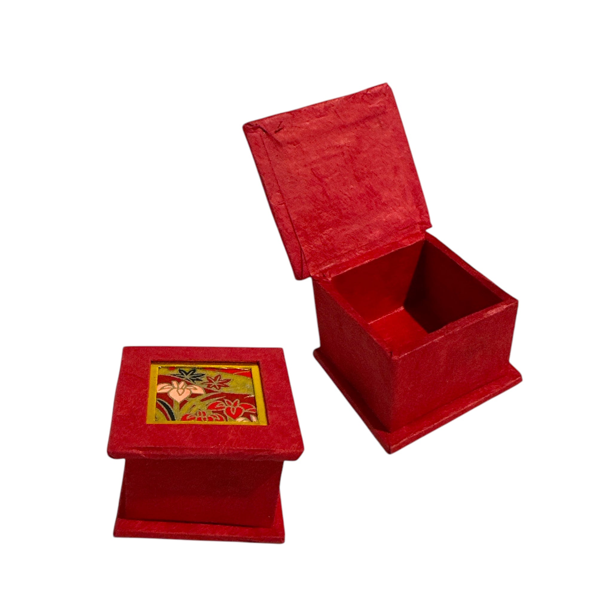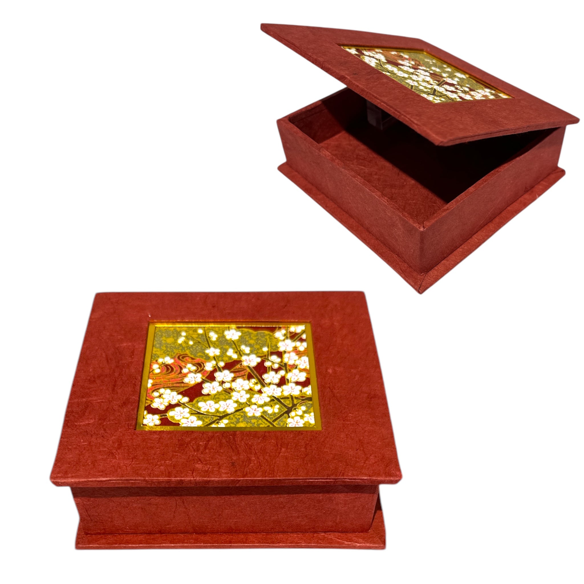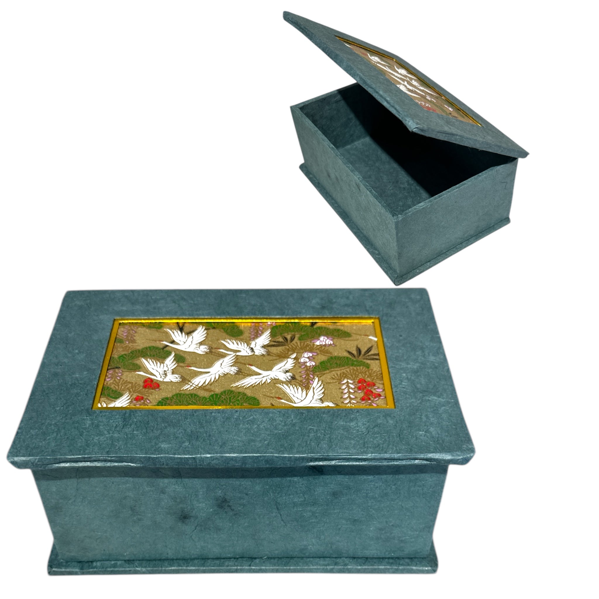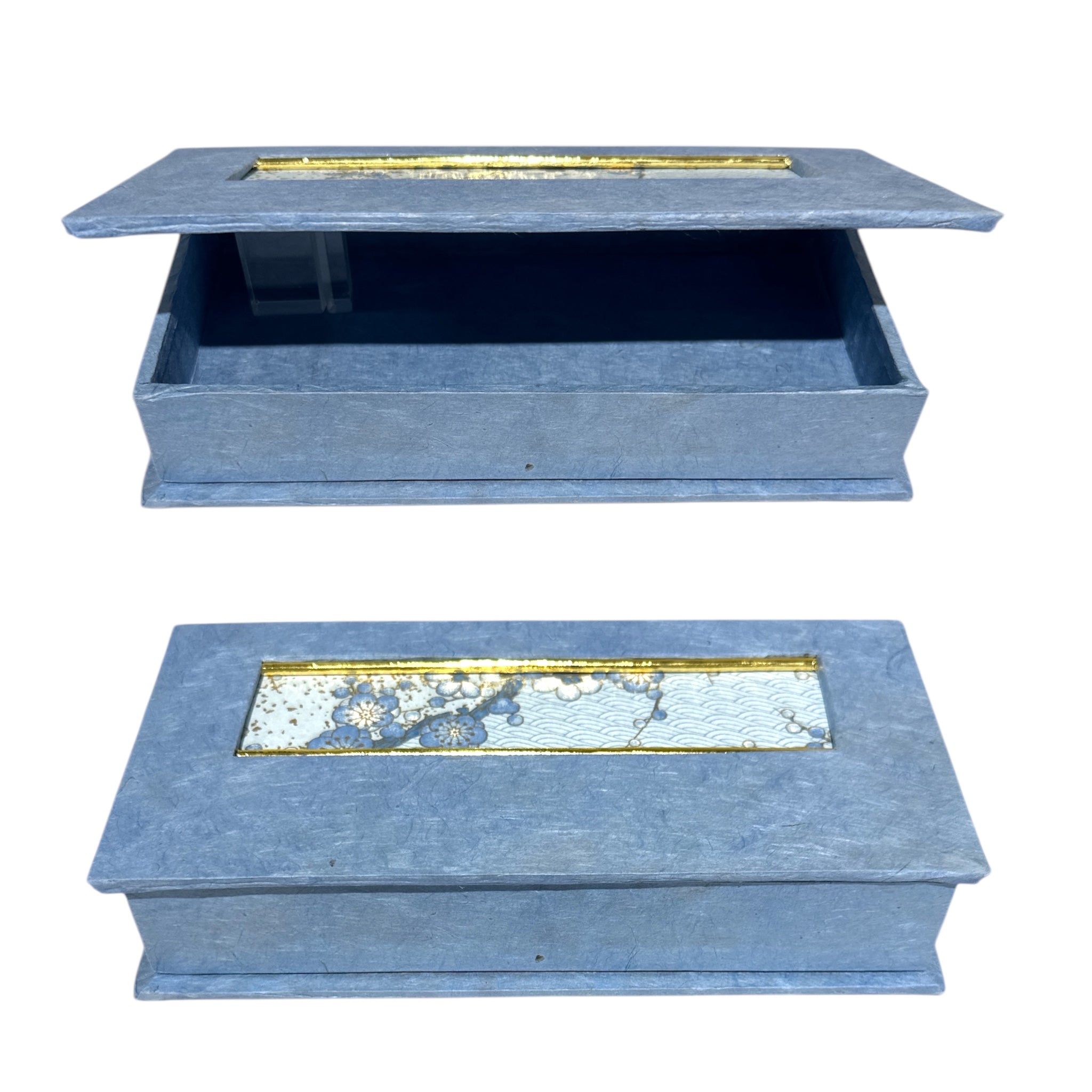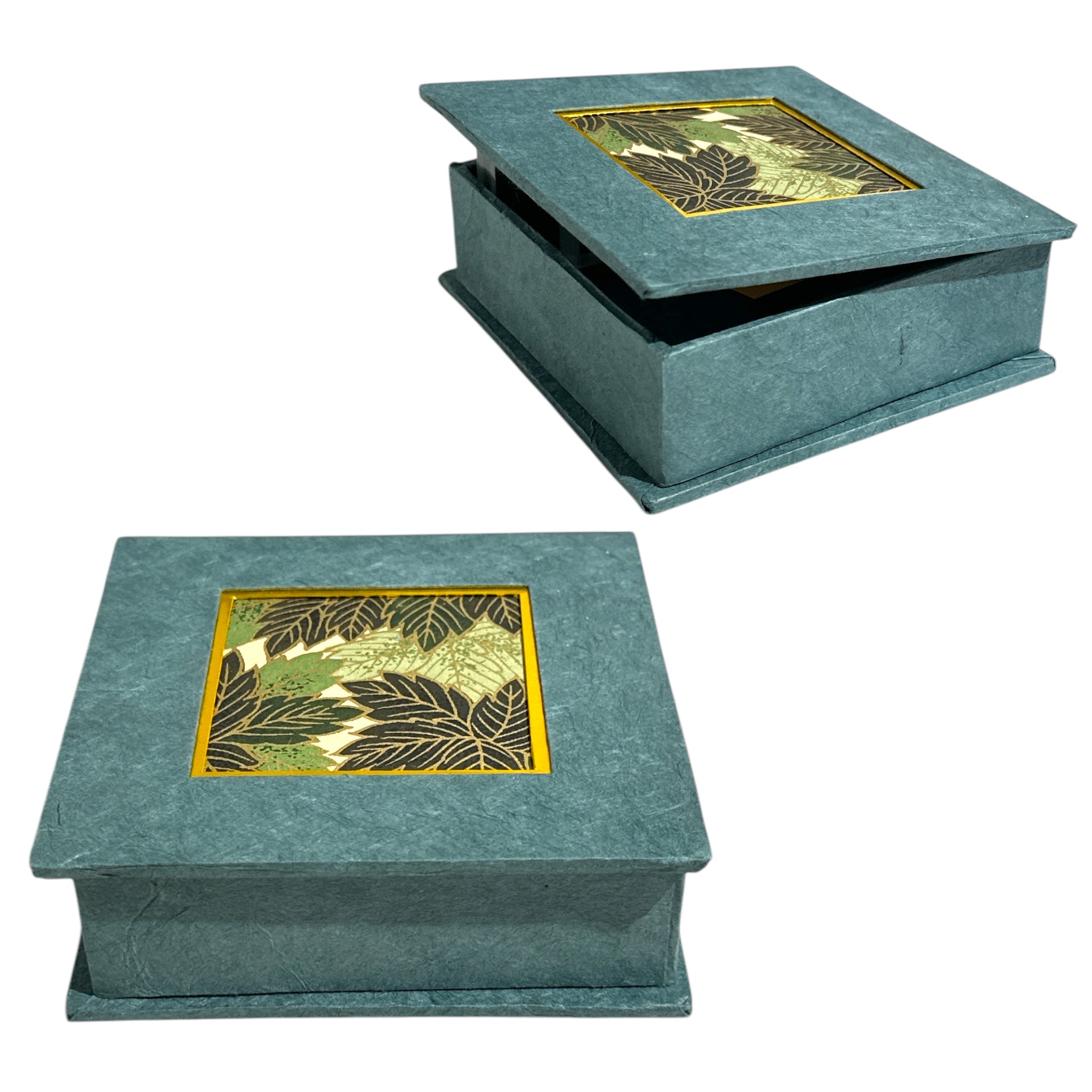 Assortment of boxes made of Nepalese lokta paper with windows of Japanese chiyogami and katazome