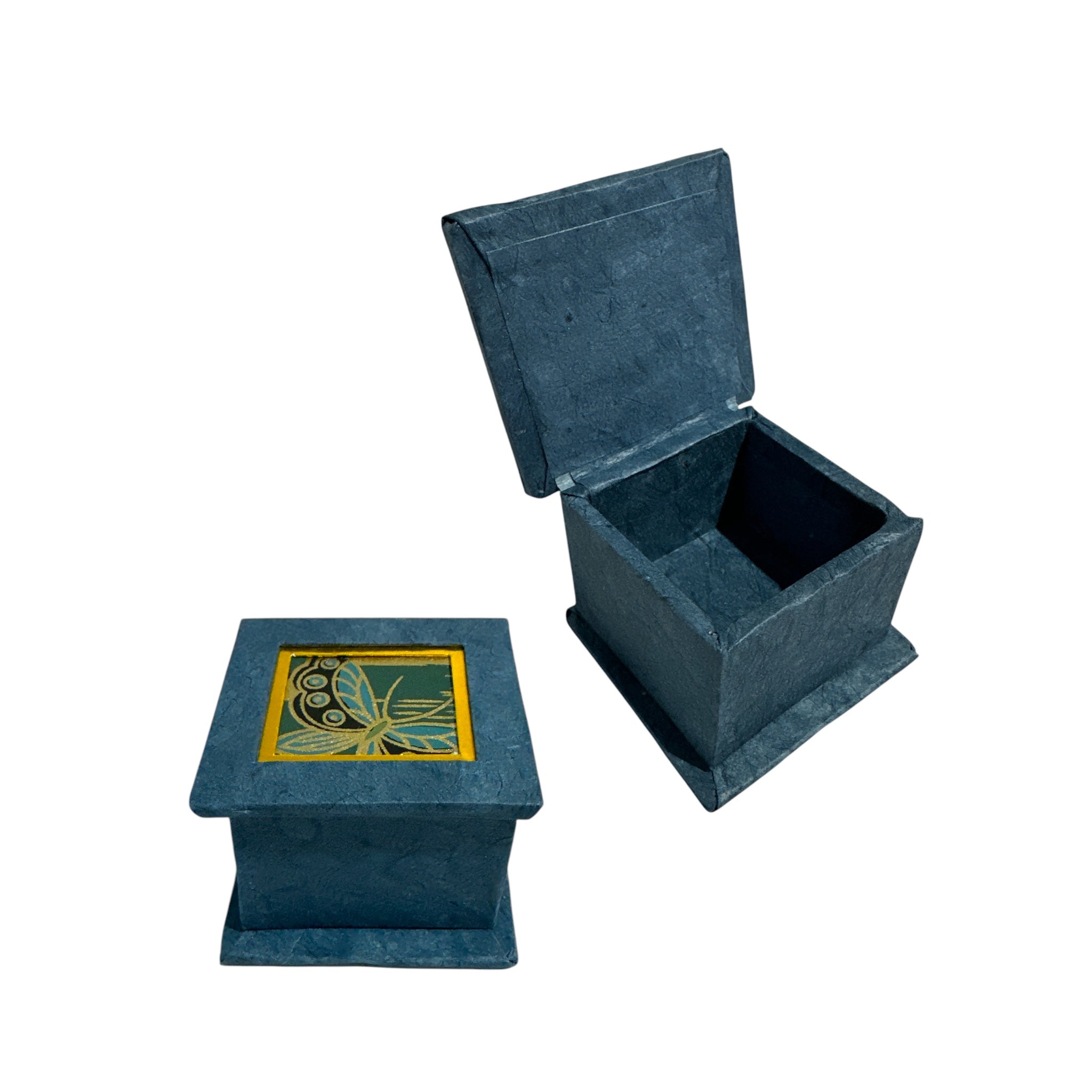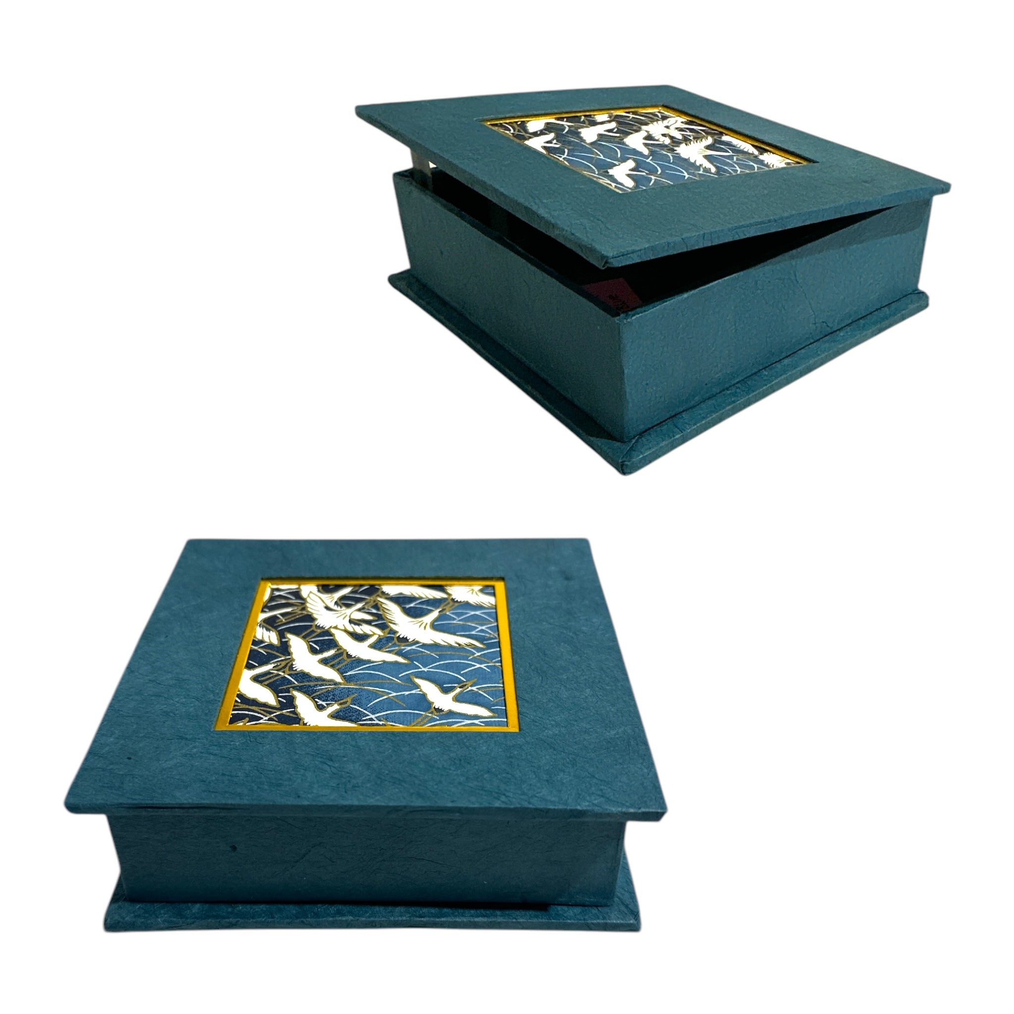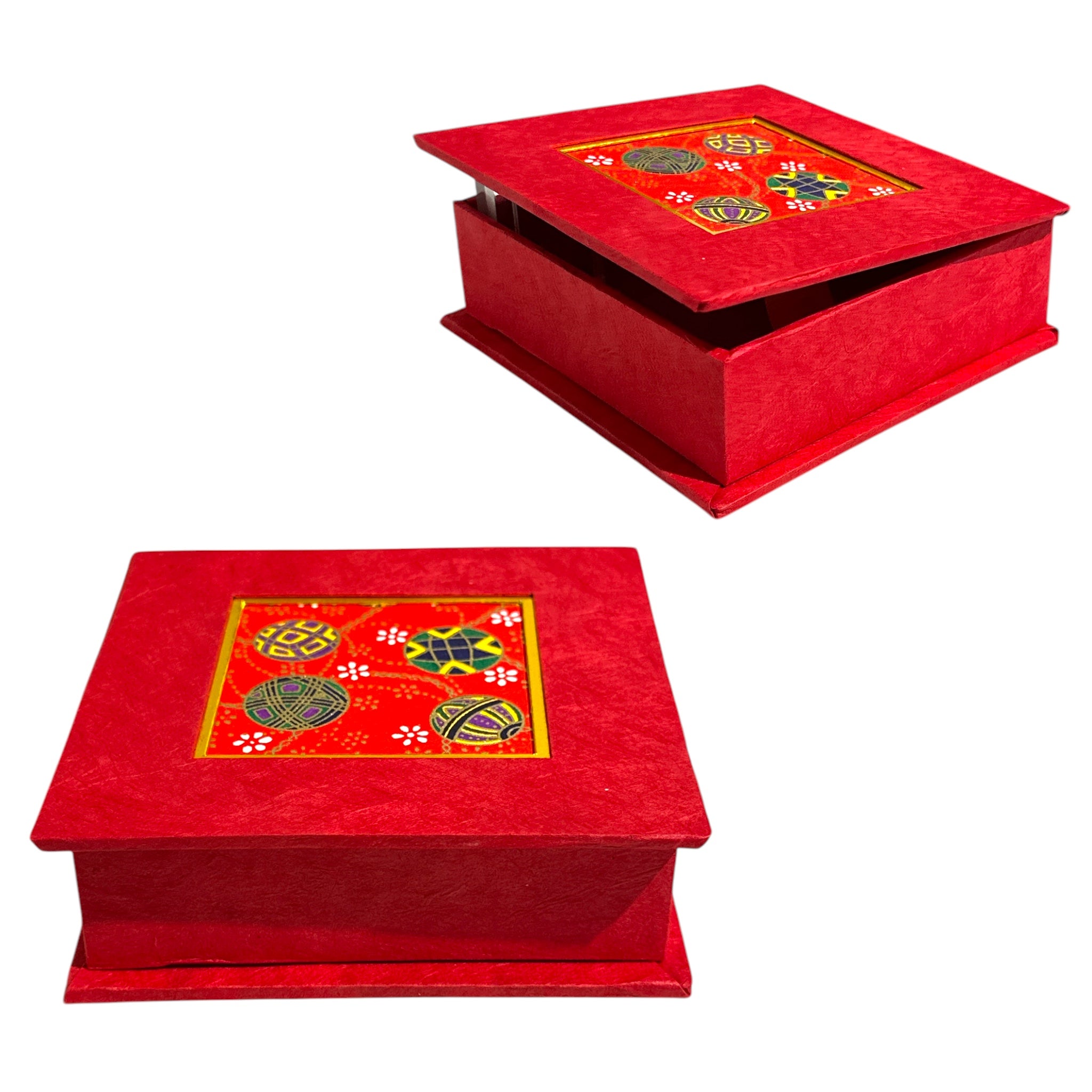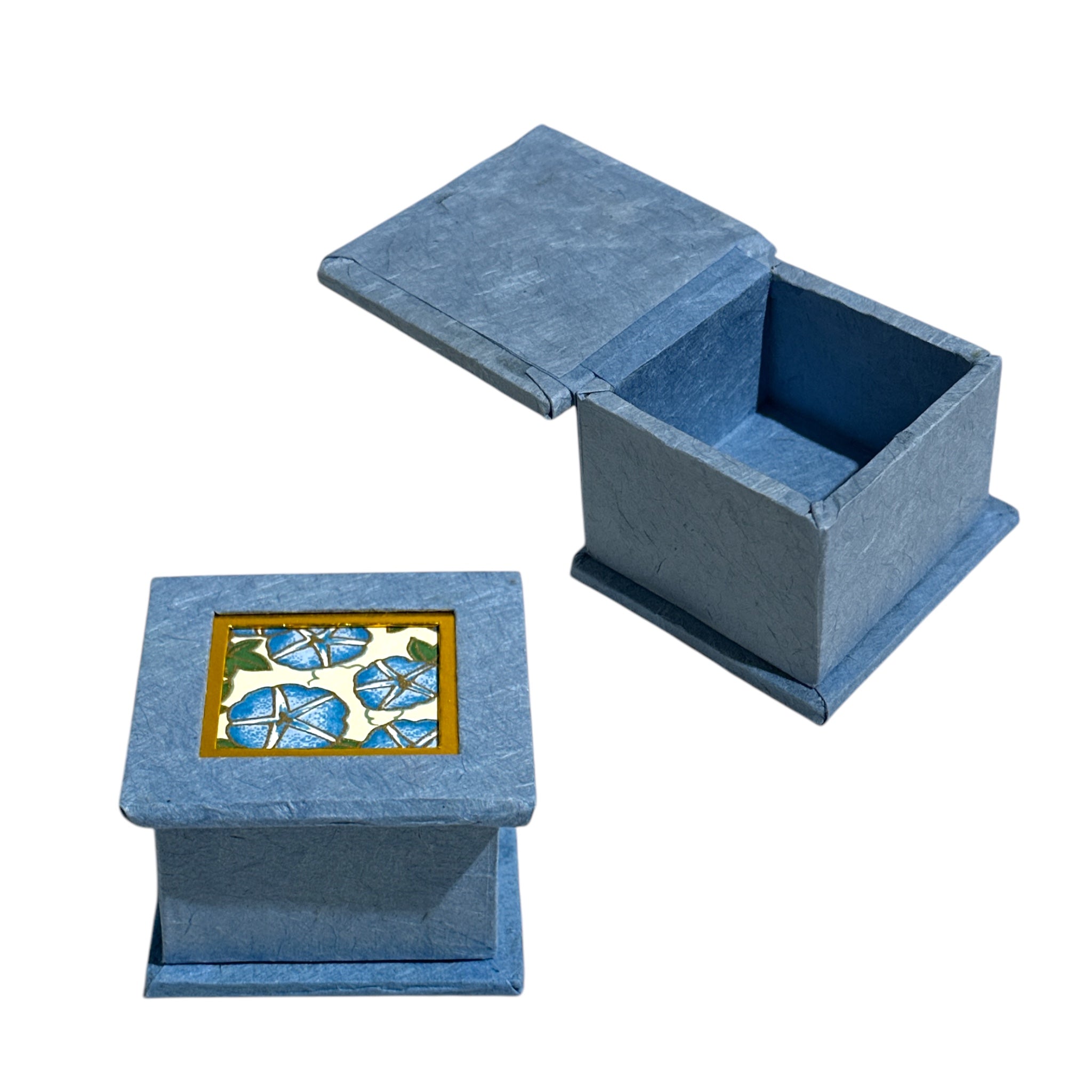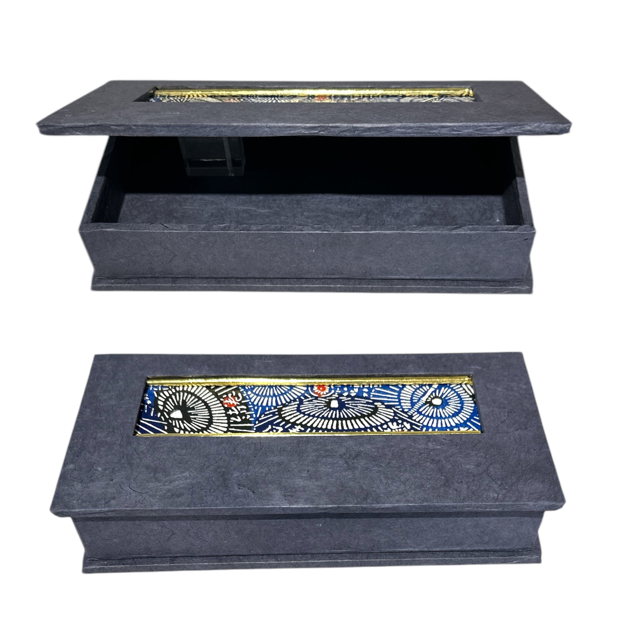 Assortment of boxes made of Nepalese lokta paper with windows of Japanese chiyogami and katazome