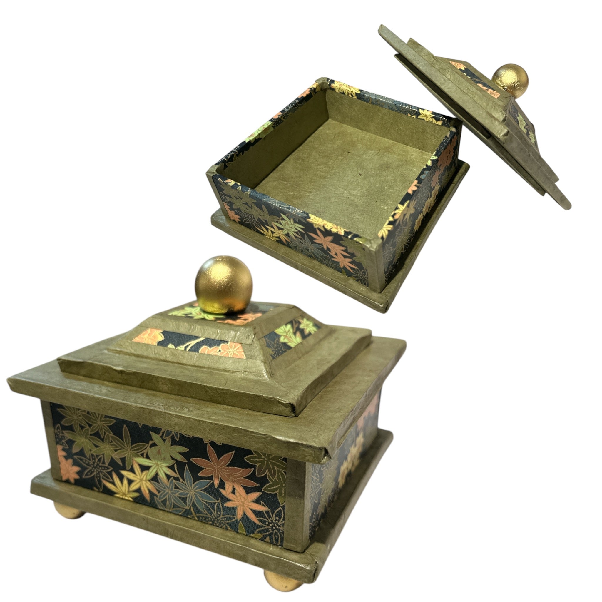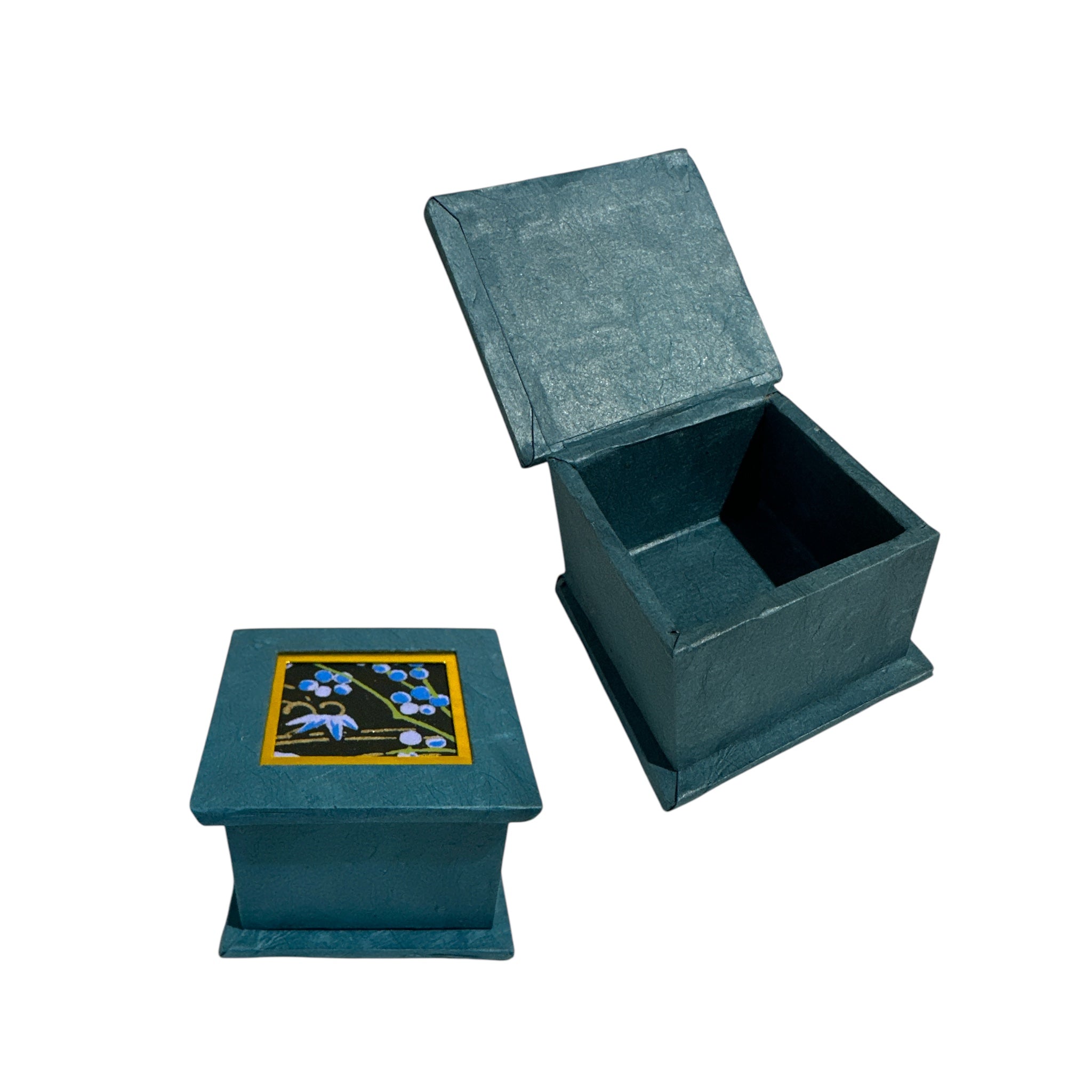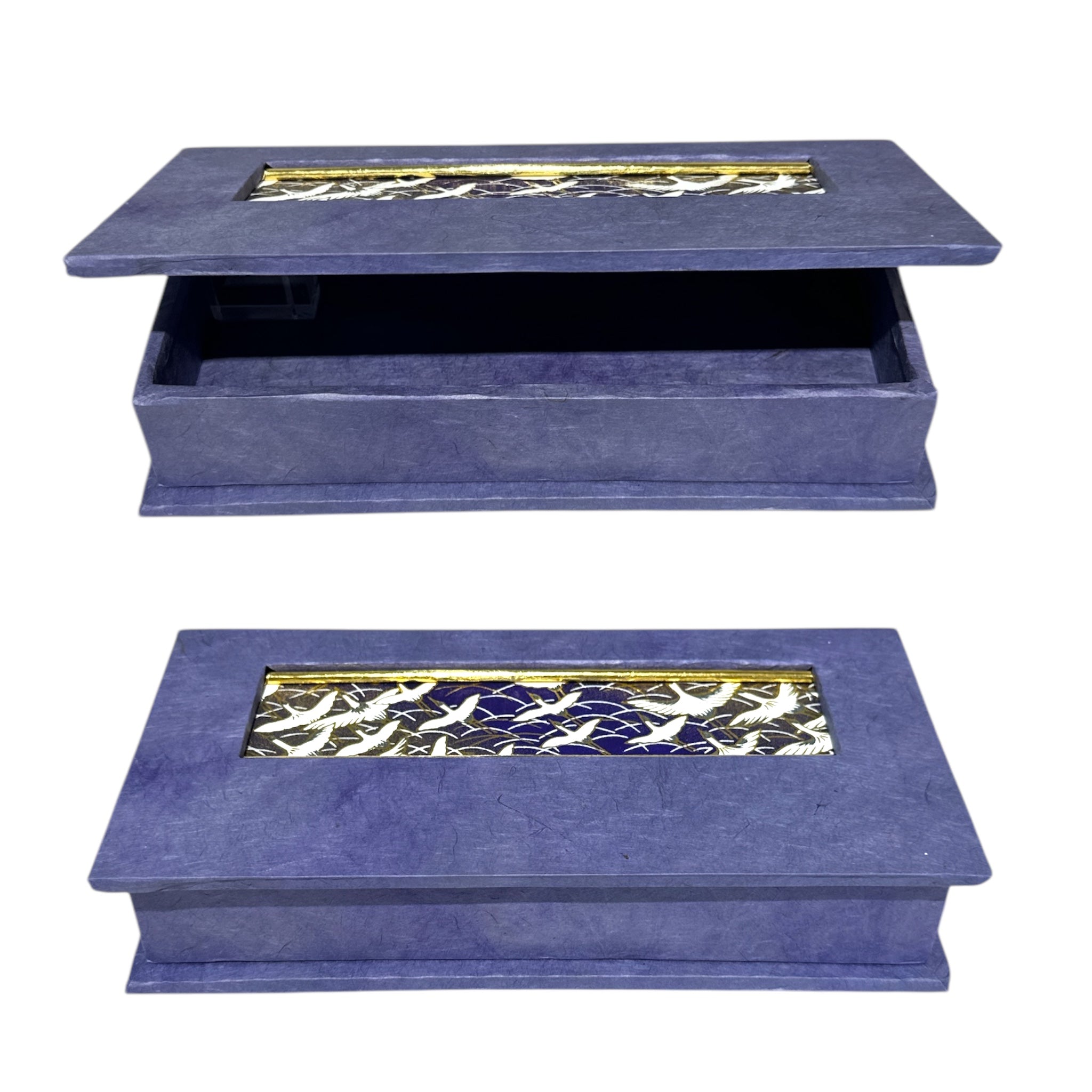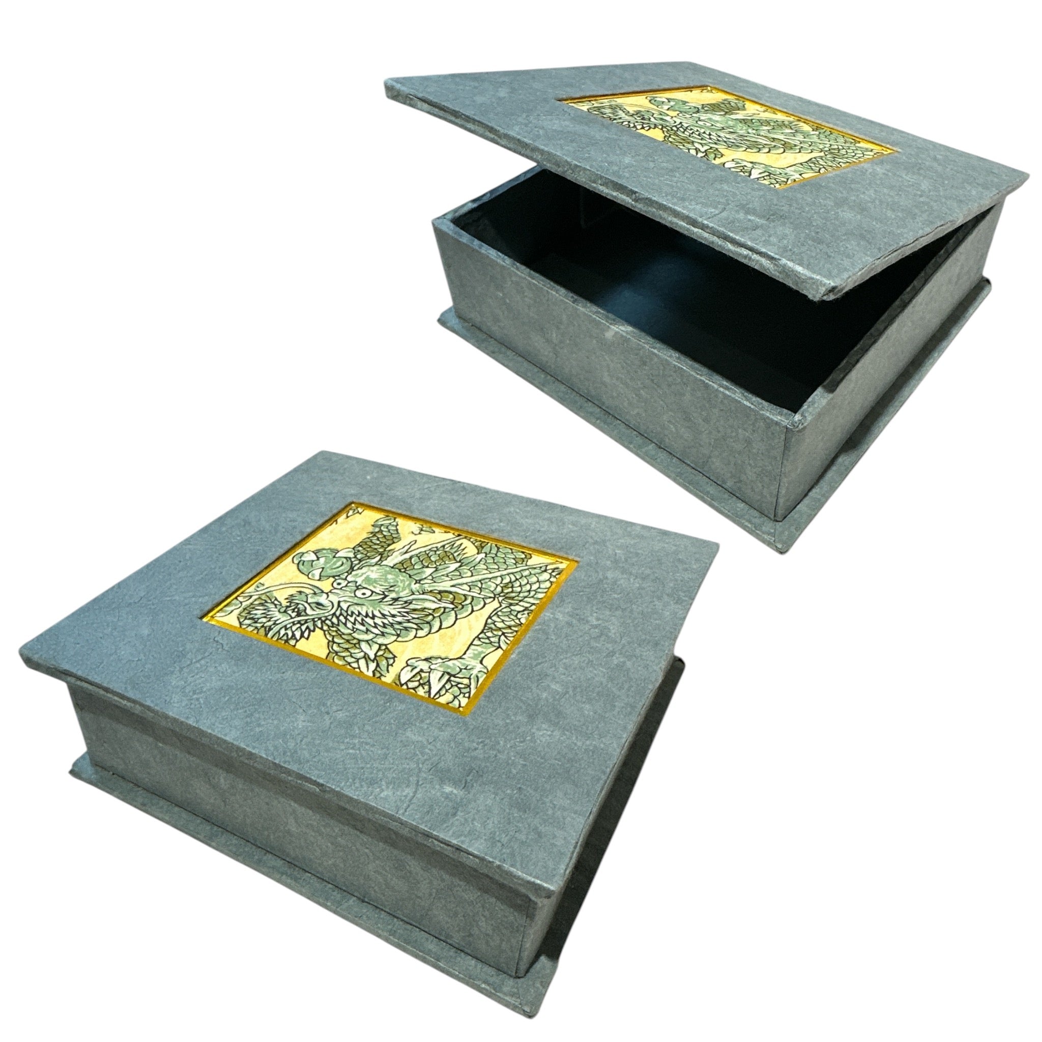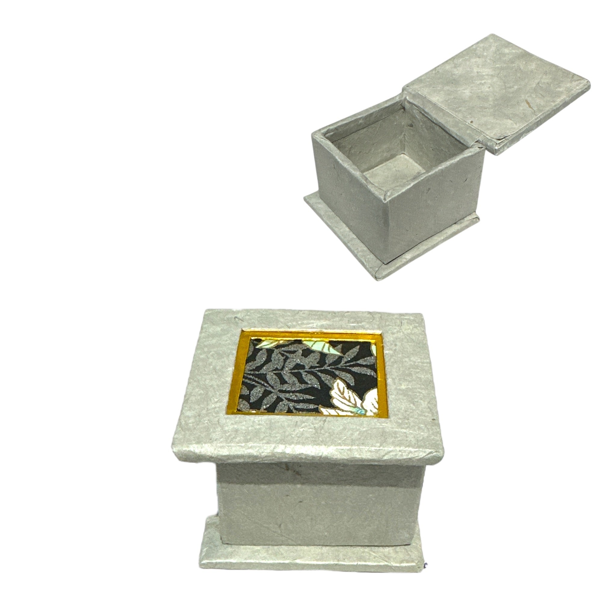 Assortment of boxes made of Nepalese lokta paper with windows of Japanese chiyogami and katazome