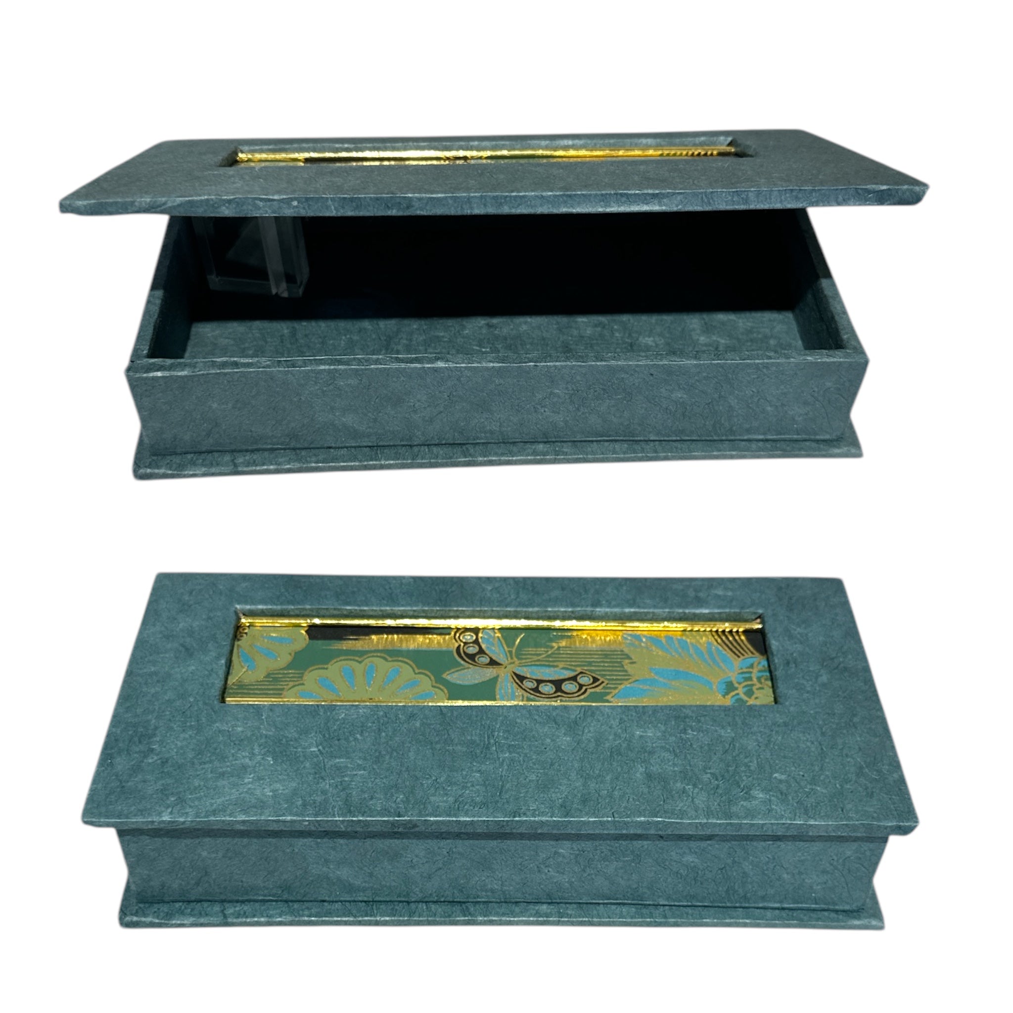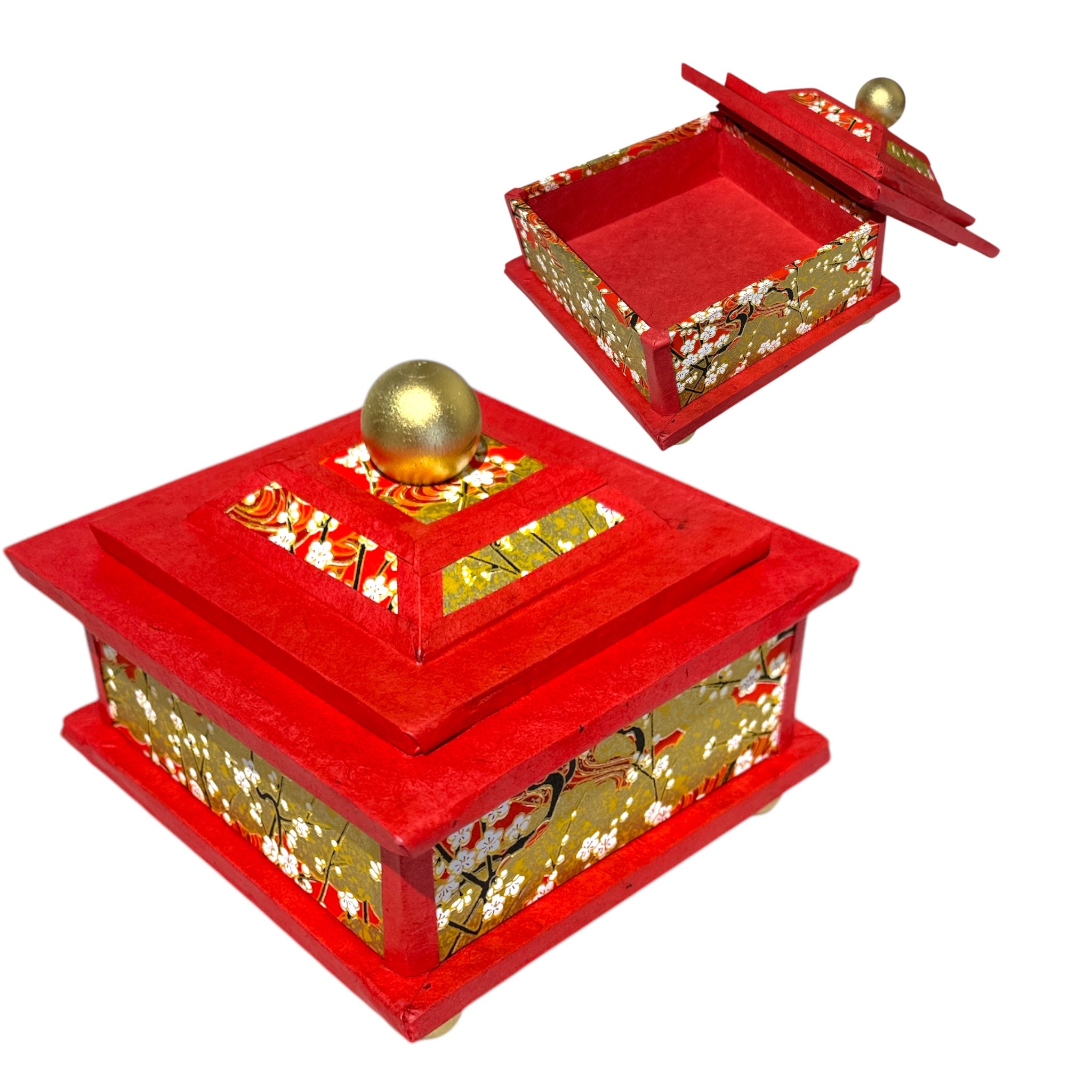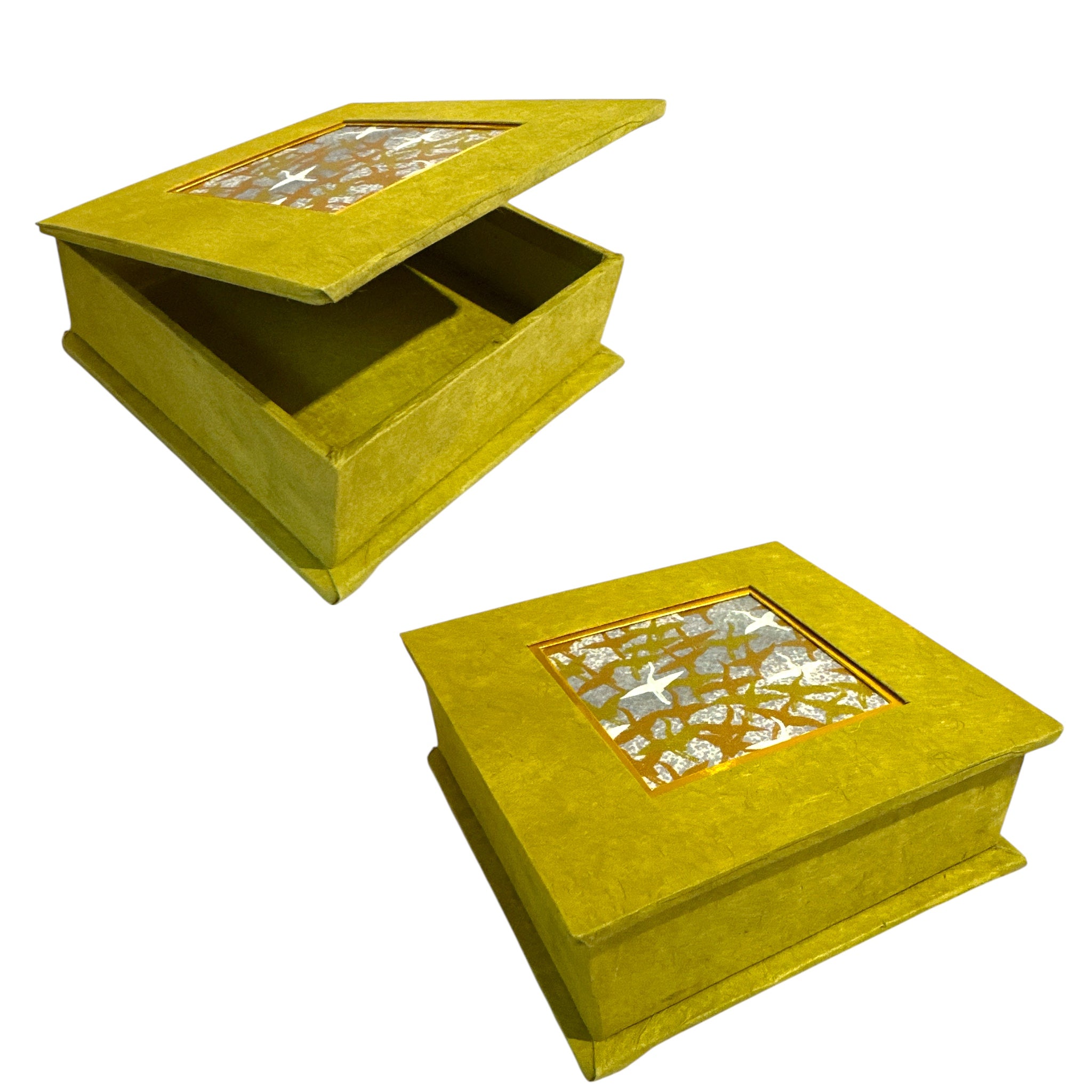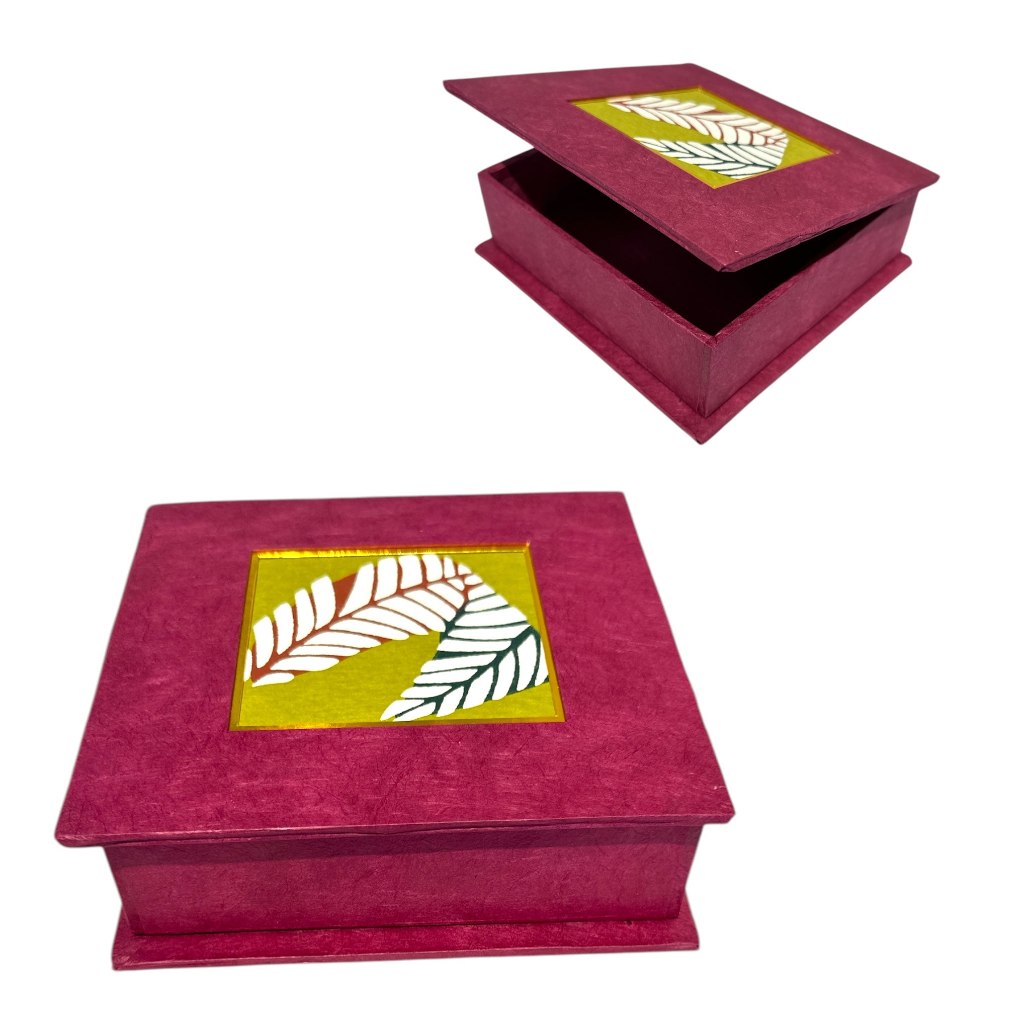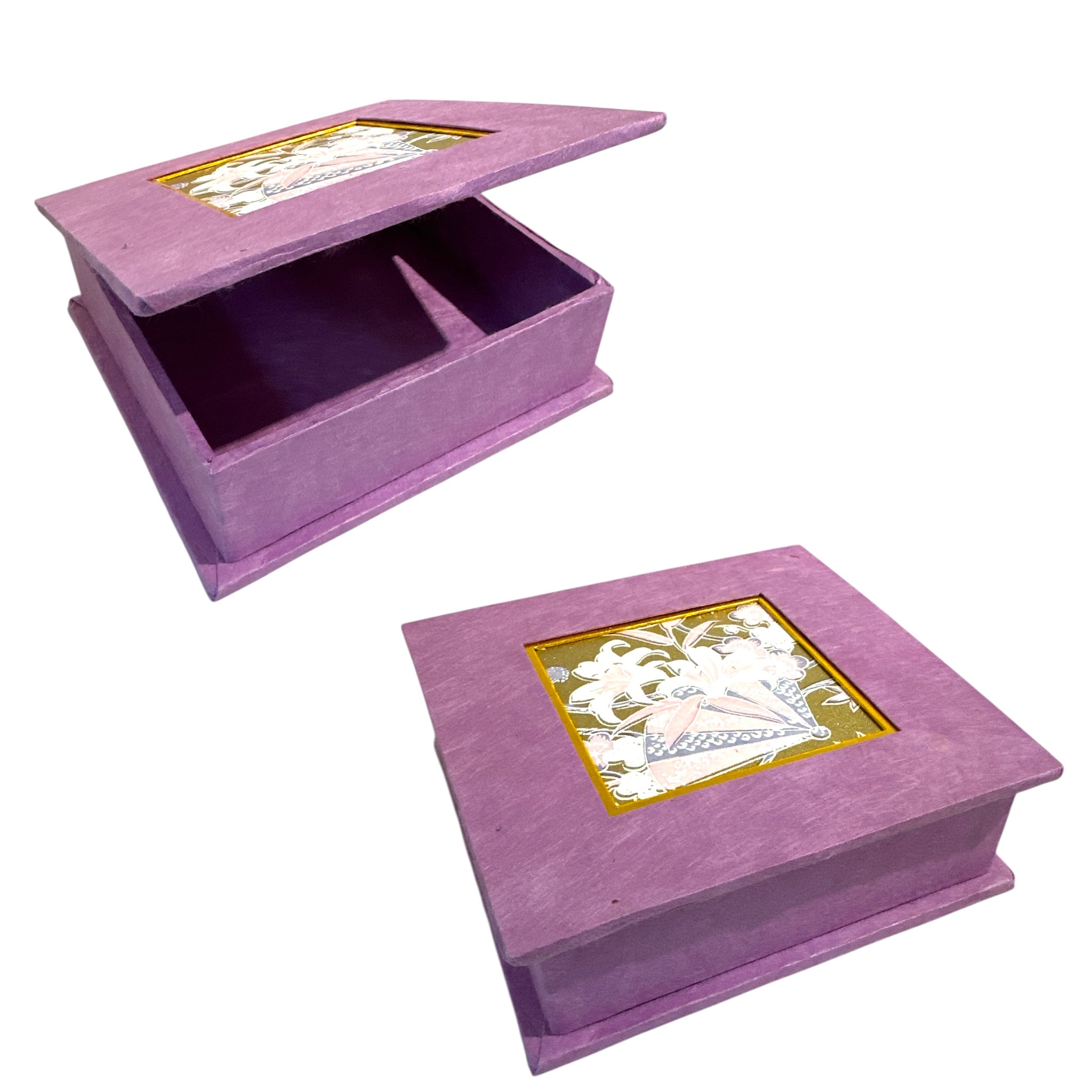 Assortment of boxes made of Nepalese lokta paper with windows of Japanese chiyogami and katazome