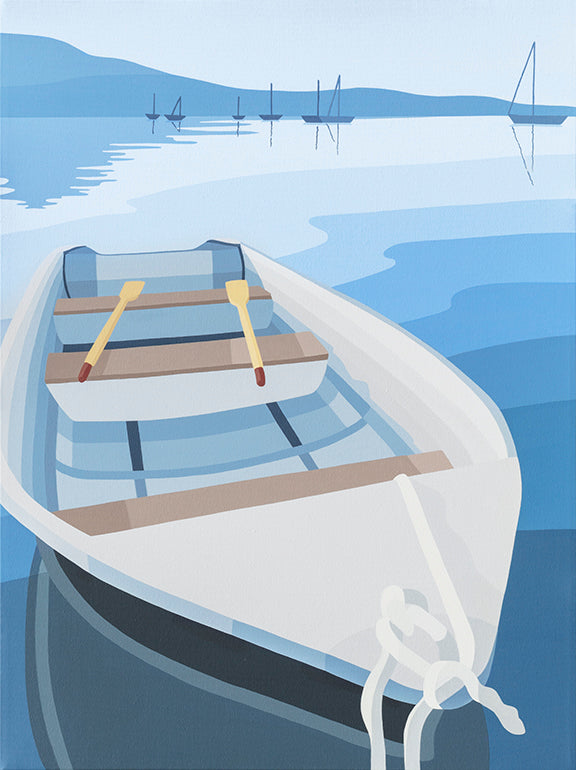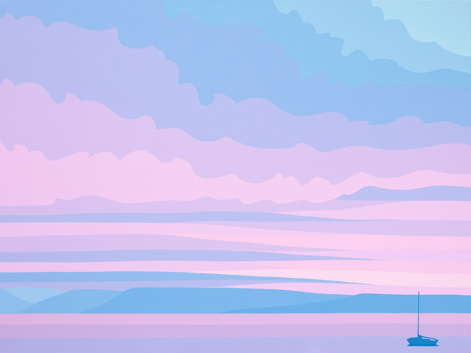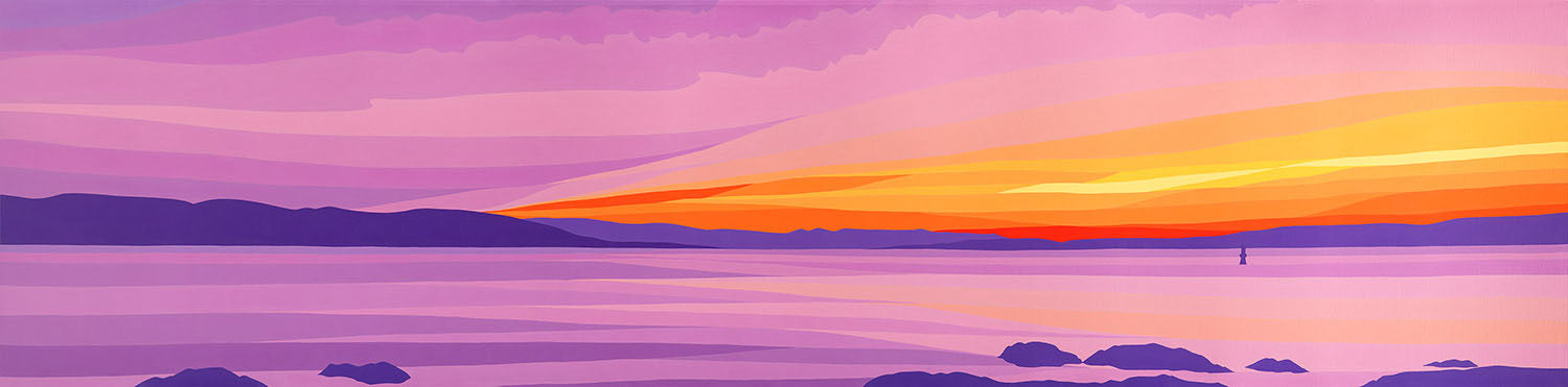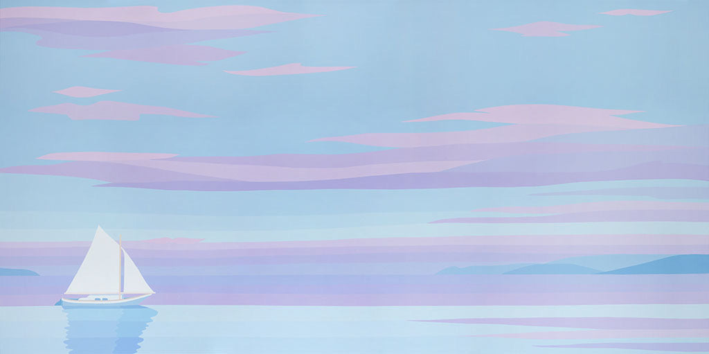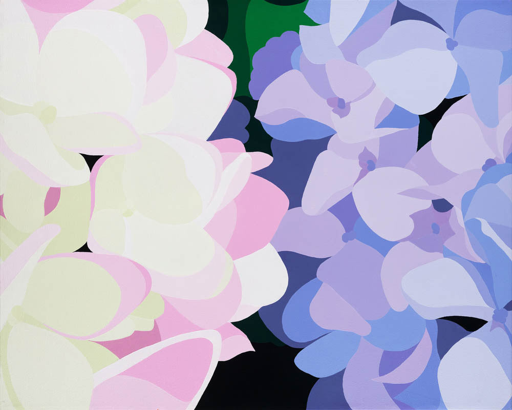 Stylistically influenced by artists such as Guido Molinari, Gustav Klimt, and David Hockney, her love of nature and experience working with flowers can be seen in many of her painting series. Most recently, she explores landscapes and seascapes. Through photography and the subsequent painting, she attempts to capture the serenity and tranquility that occurs in nature.