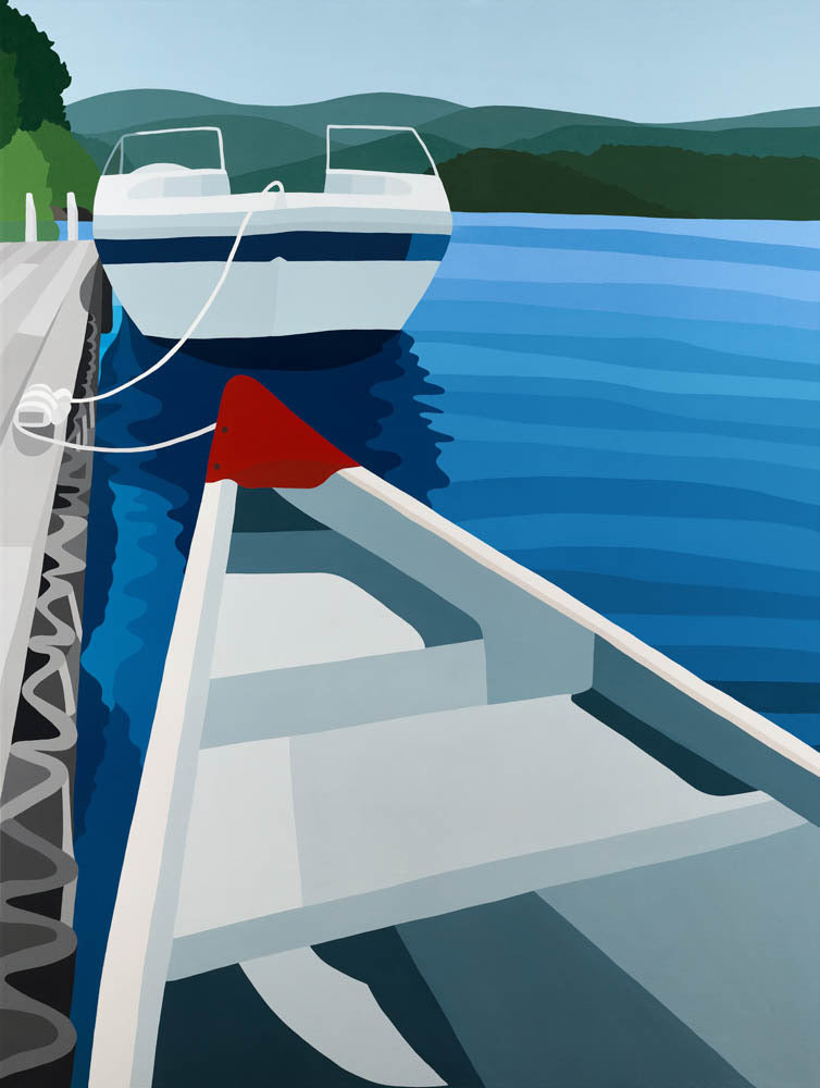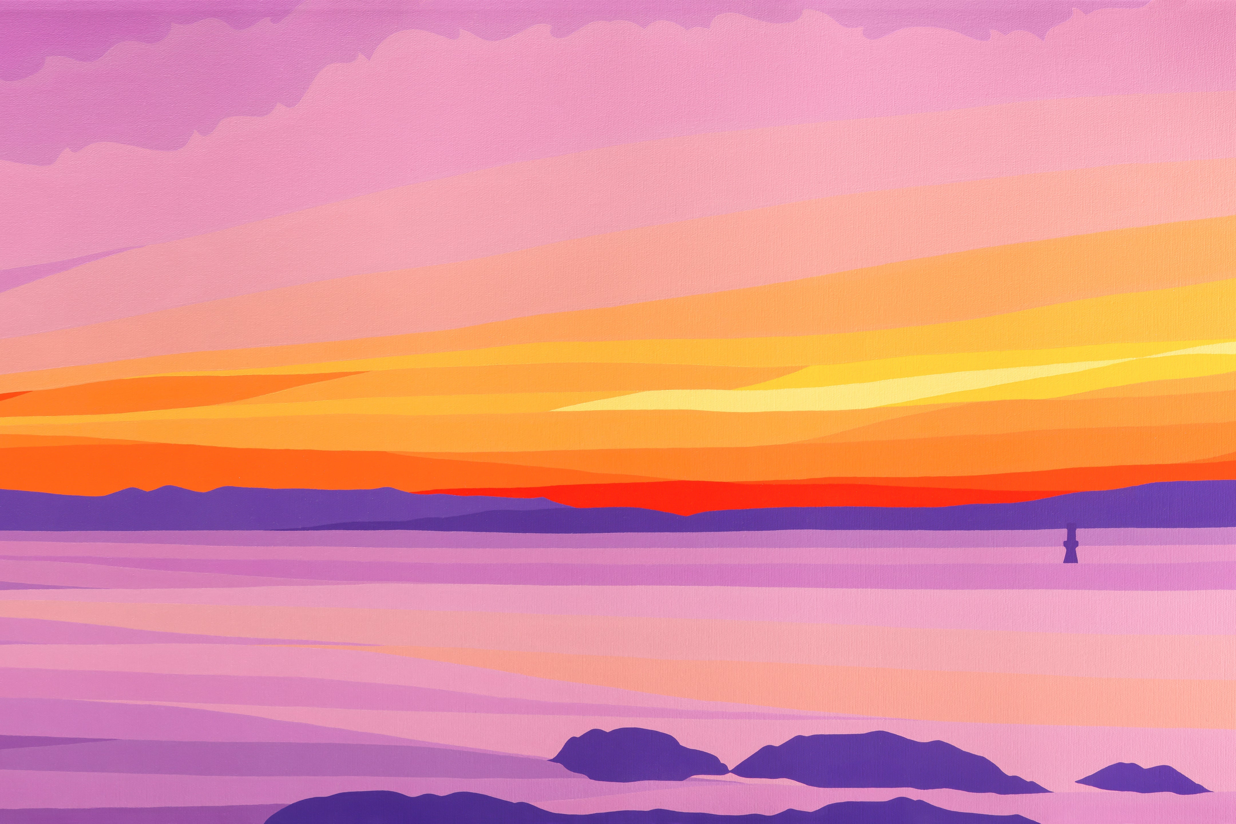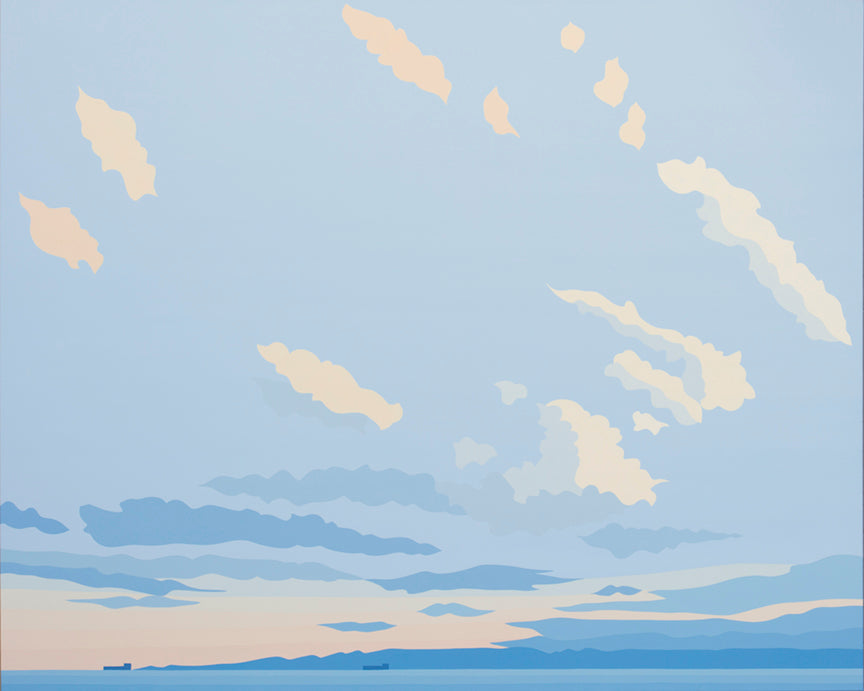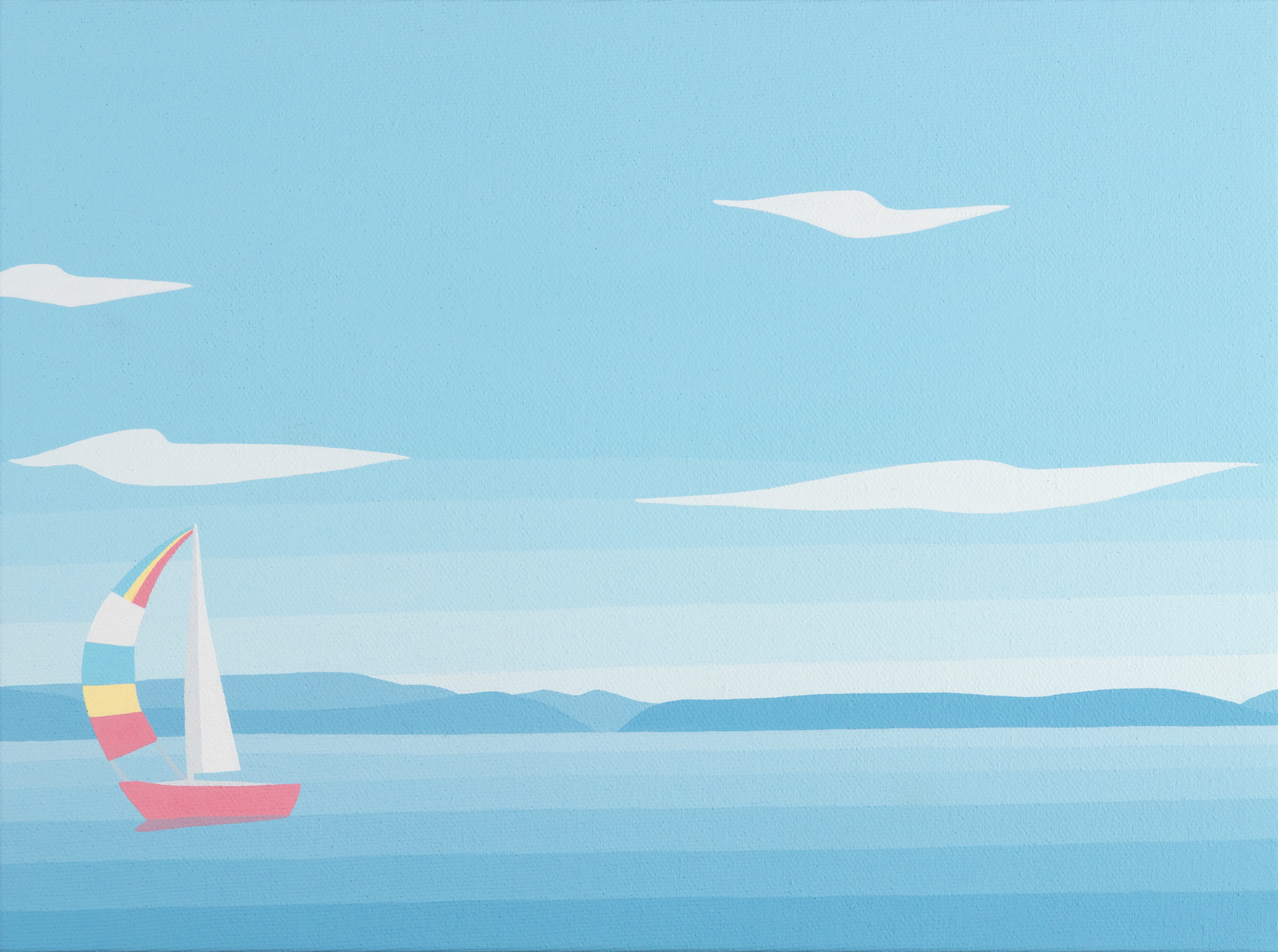 Stylistically influenced by artists such as Guido Molinari, Gustav Klimt, and David Hockney, her love of nature and experience working with flowers can be seen in many of her painting series. Most recently, she explores landscapes and seascapes. Through photography and the subsequent painting, she attempts to capture the serenity and tranquility that occurs in nature.