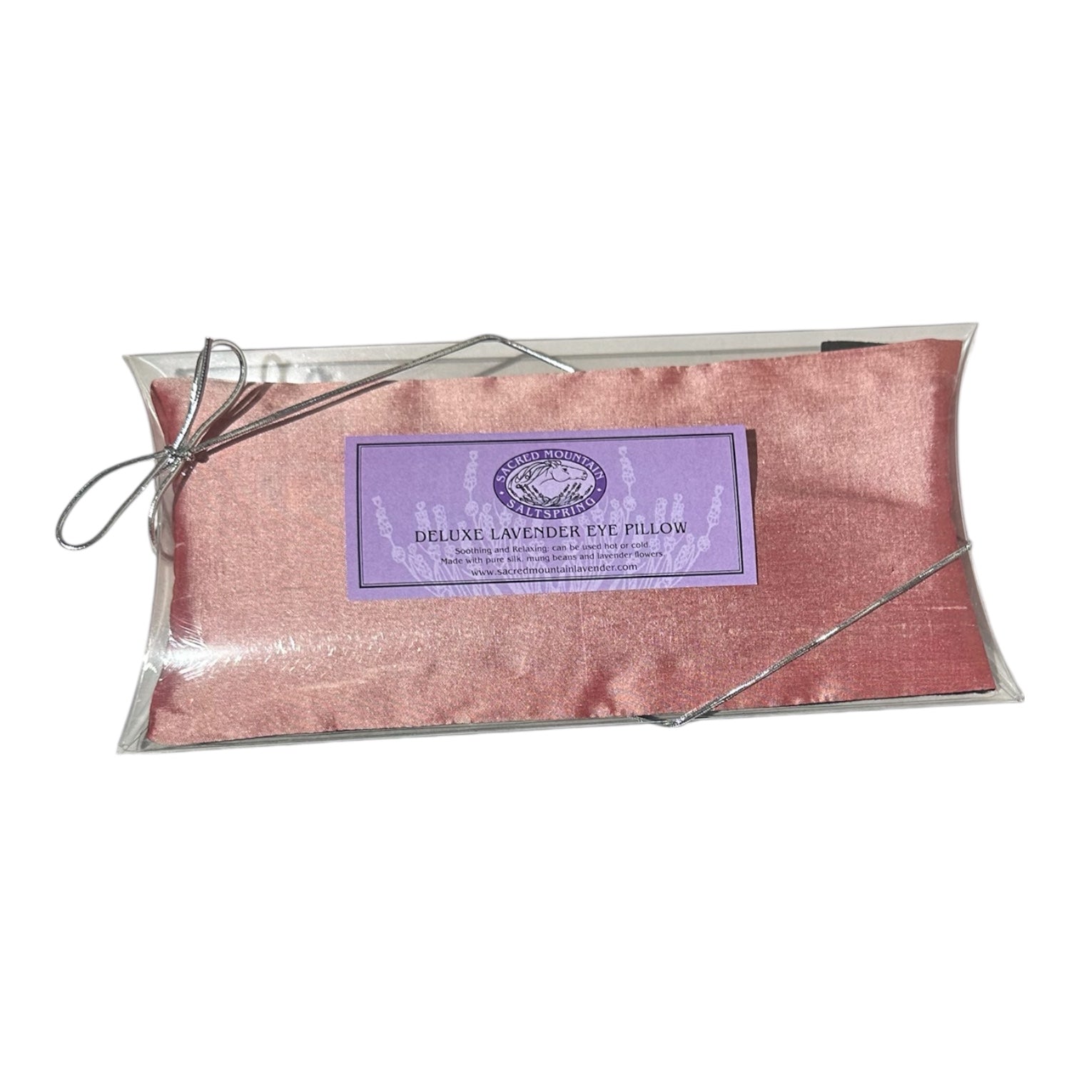 Our Sacred Mountain lavender eye pillow is a very superior pillow. It is made with Mung Beans and Lavender Flowers encased in pure silk. It is soothing and relaxing and can be used hot or cold. Relax with the aroma of lavender. This soothing eye pillow is silk on one side and faux suede on the other.