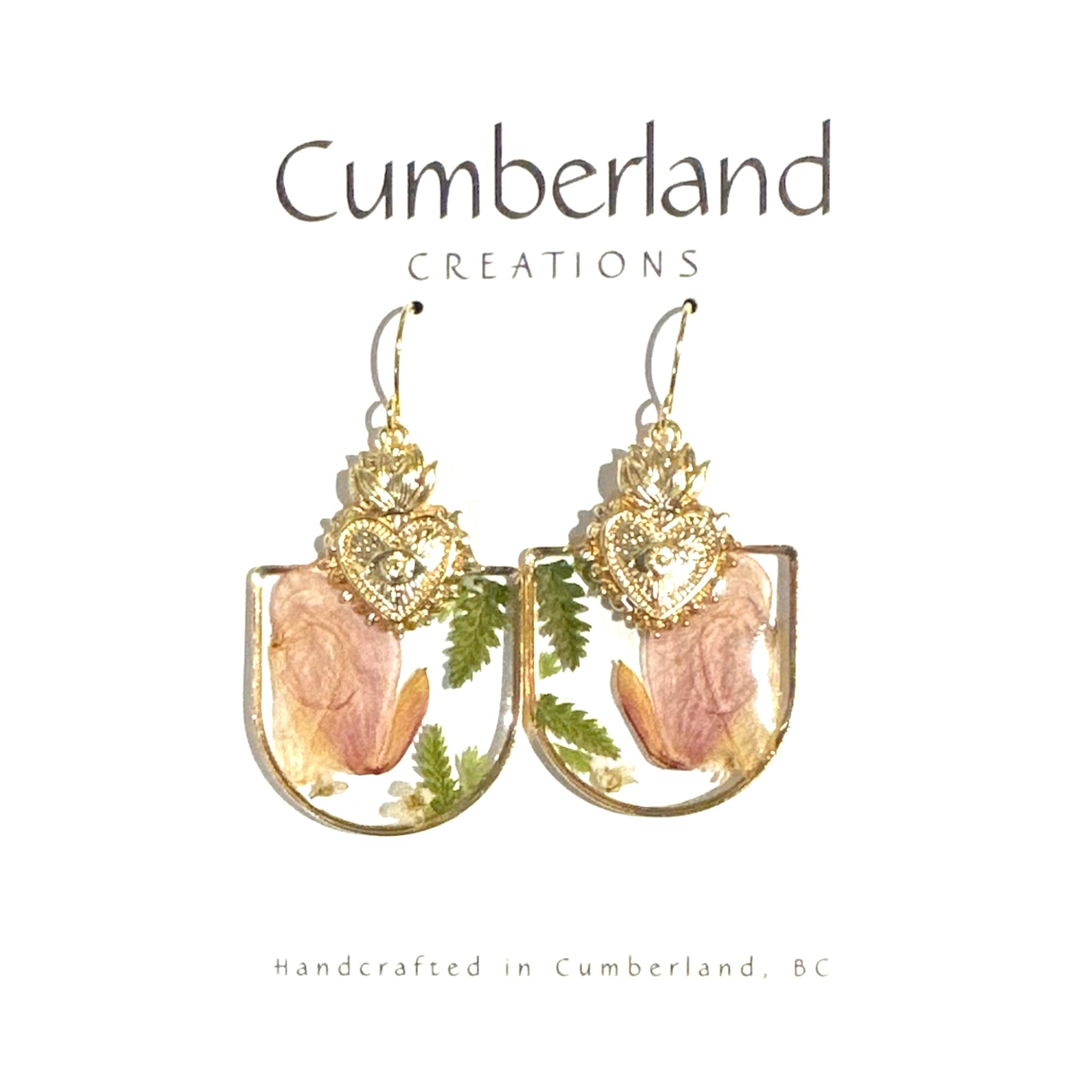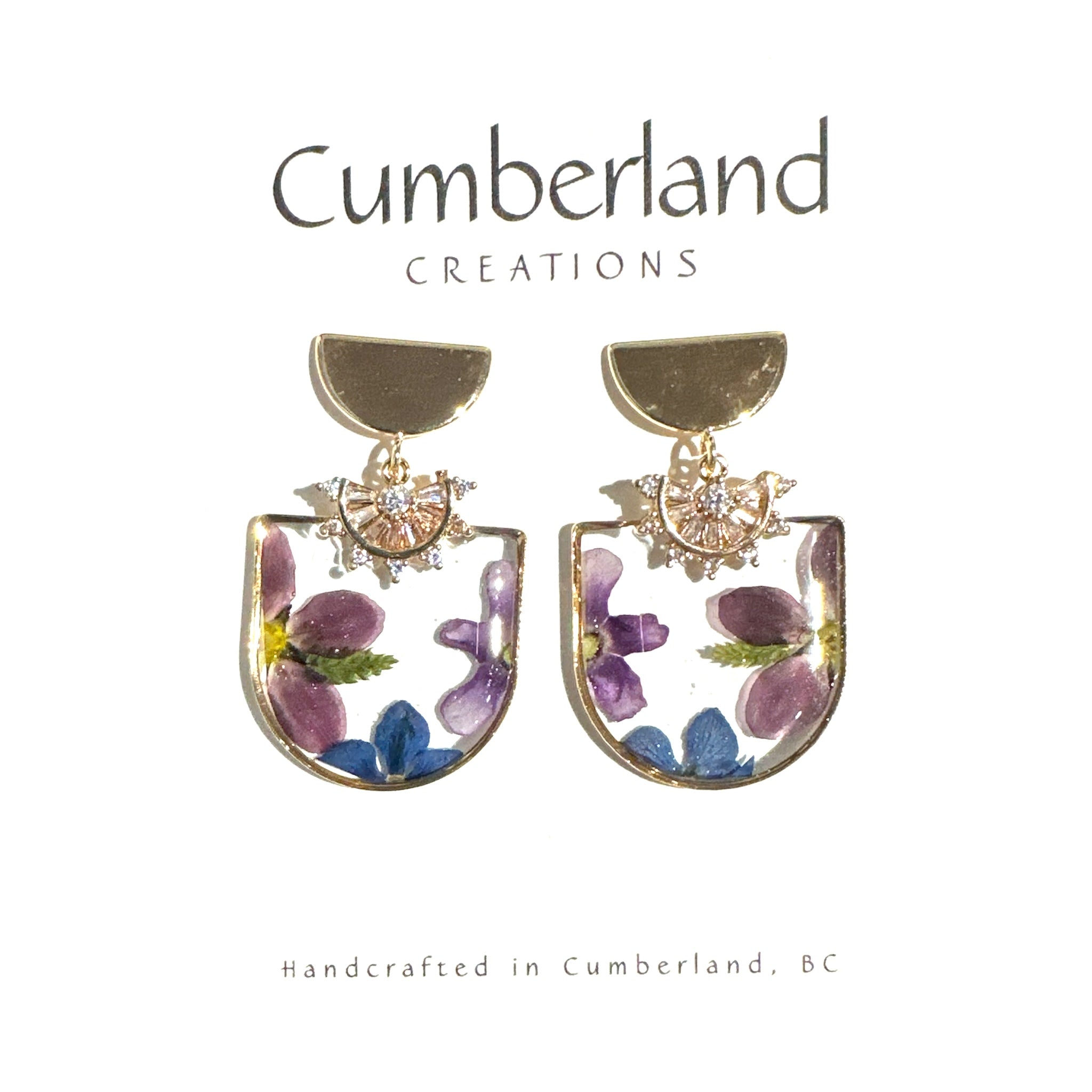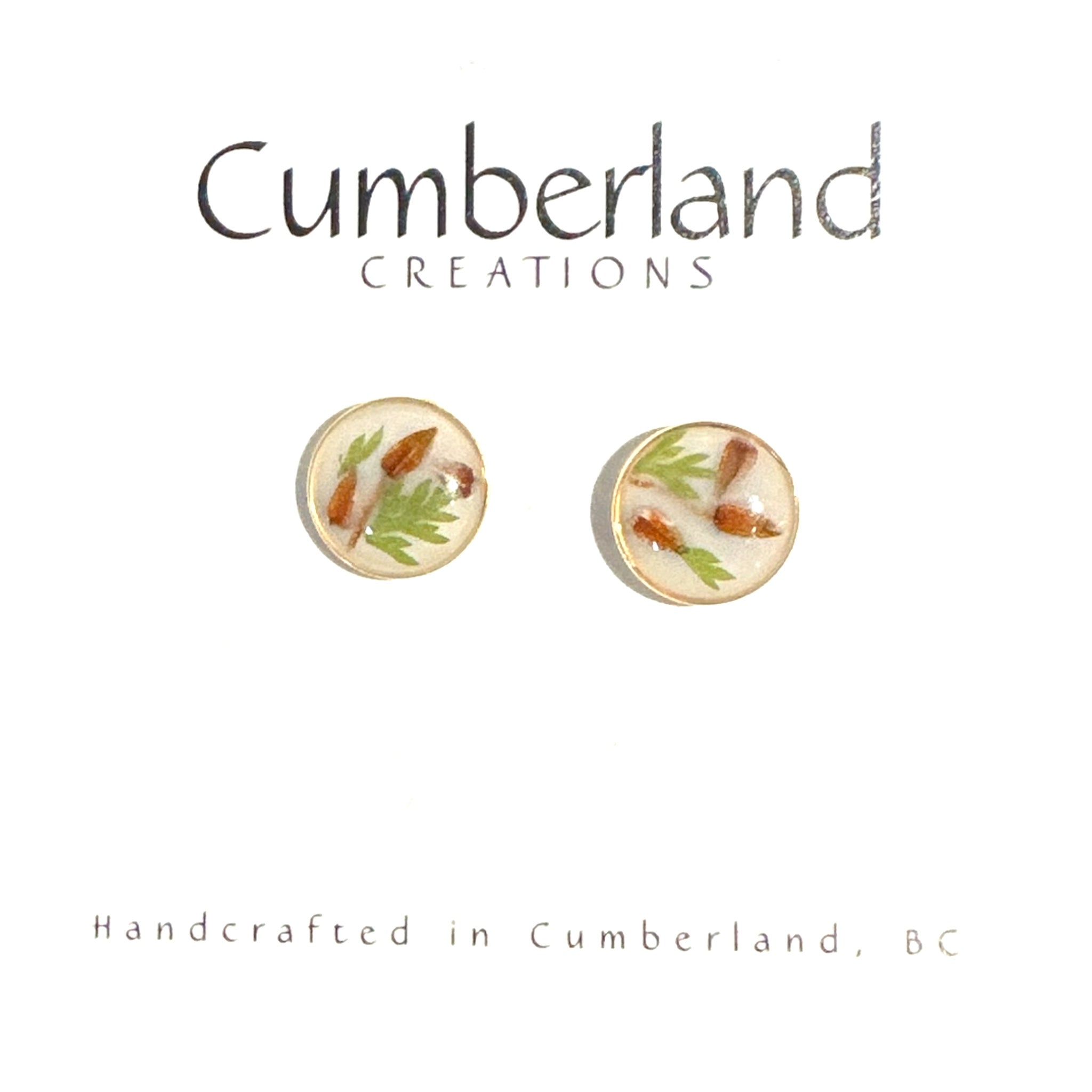 All jewellry made with non-toxic resin, clay, brass, stainless steel and gold plated charms and bezels. Botanical Collection made with real flowers, foiliage and mushrooms.
