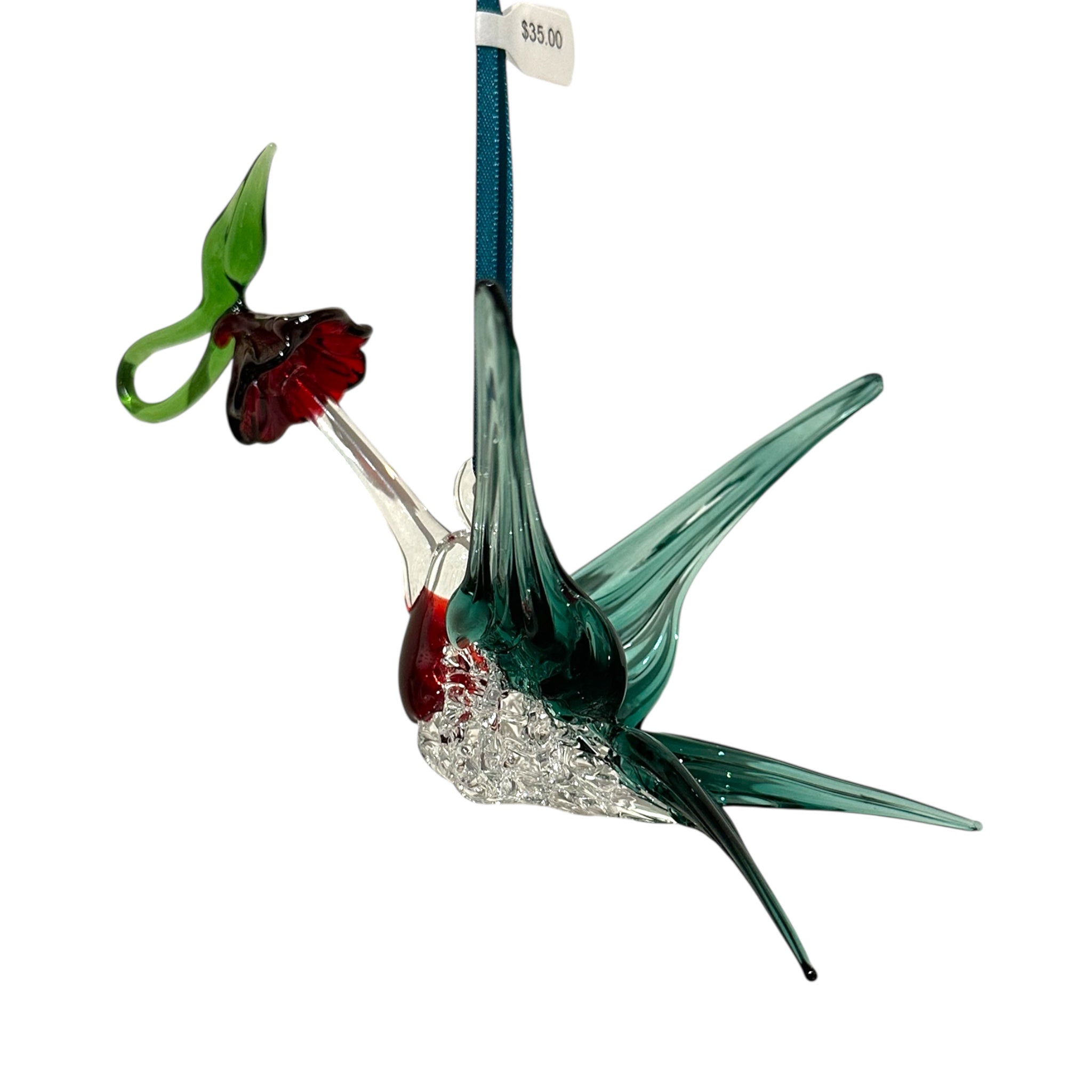 Glass Large Hummingbird with Flower