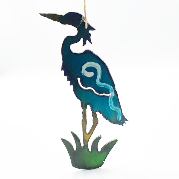 Rusted Steel Heron by Indoor Outdoor Metalwork 30" Decorative rusted Heron with fish, free standing....
