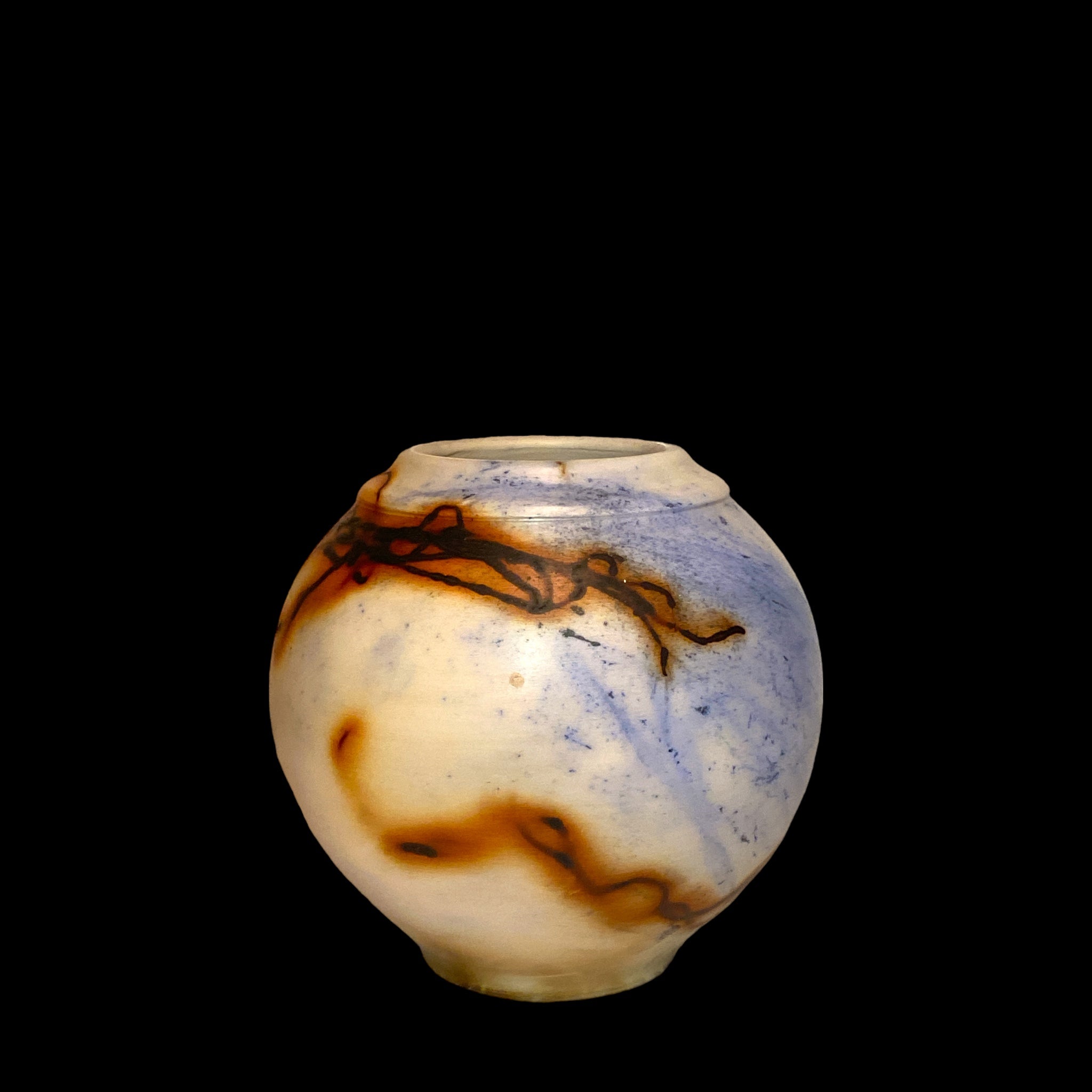 Saggar Firing is the method of creating confined atmospheres within a container or saggar.  The saggar can be made out of anything depending on the type of firing from the traditional refractory clay to newspaper.  Originally saggars were used to protect the finish from the debris flying around the firing chamber from the wood or coal fuel source.  Roughly 200 years ago, potters decided to reverse this and use the saggars to hold material near the pieces to dramatically change the finish.
