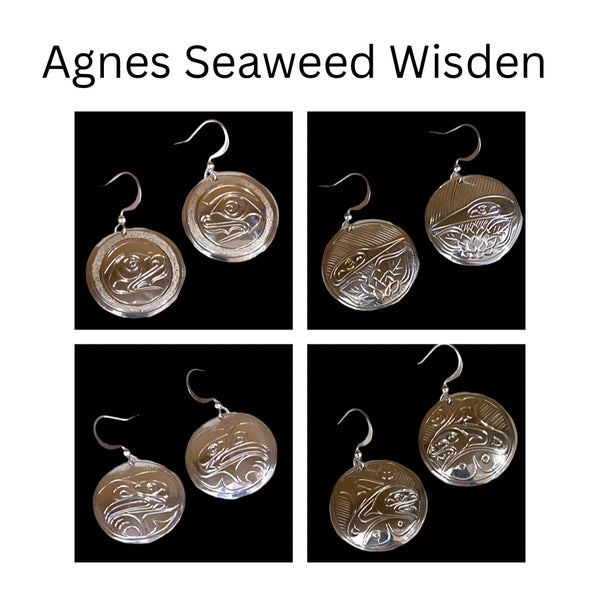 Porthole Earrings with Westcoast Design The silver discs on these hanging earrings has been oxidized...