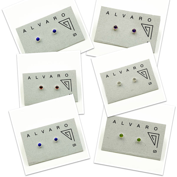 Cabochon Gemstone and Sterling Silver Stud Earrings A beautiful pair of Sterling Silver earrings with...