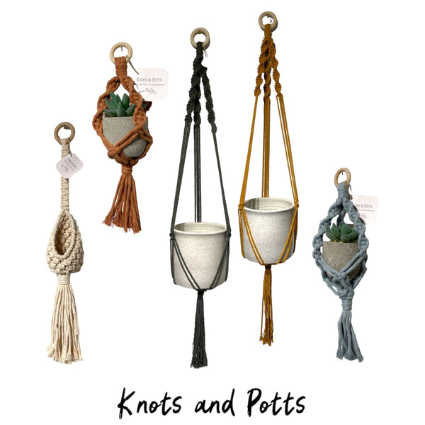 Knots & Potts began in 2019 as a new year's goal to learn to macrame a plant hanger. Alisha fell in love with the therapeutic repetition macraming provided, along with the opportunity to connect with the community both online and at local markets. The endless options fibre art encourages, provides daily inspiration for Alisha to create.