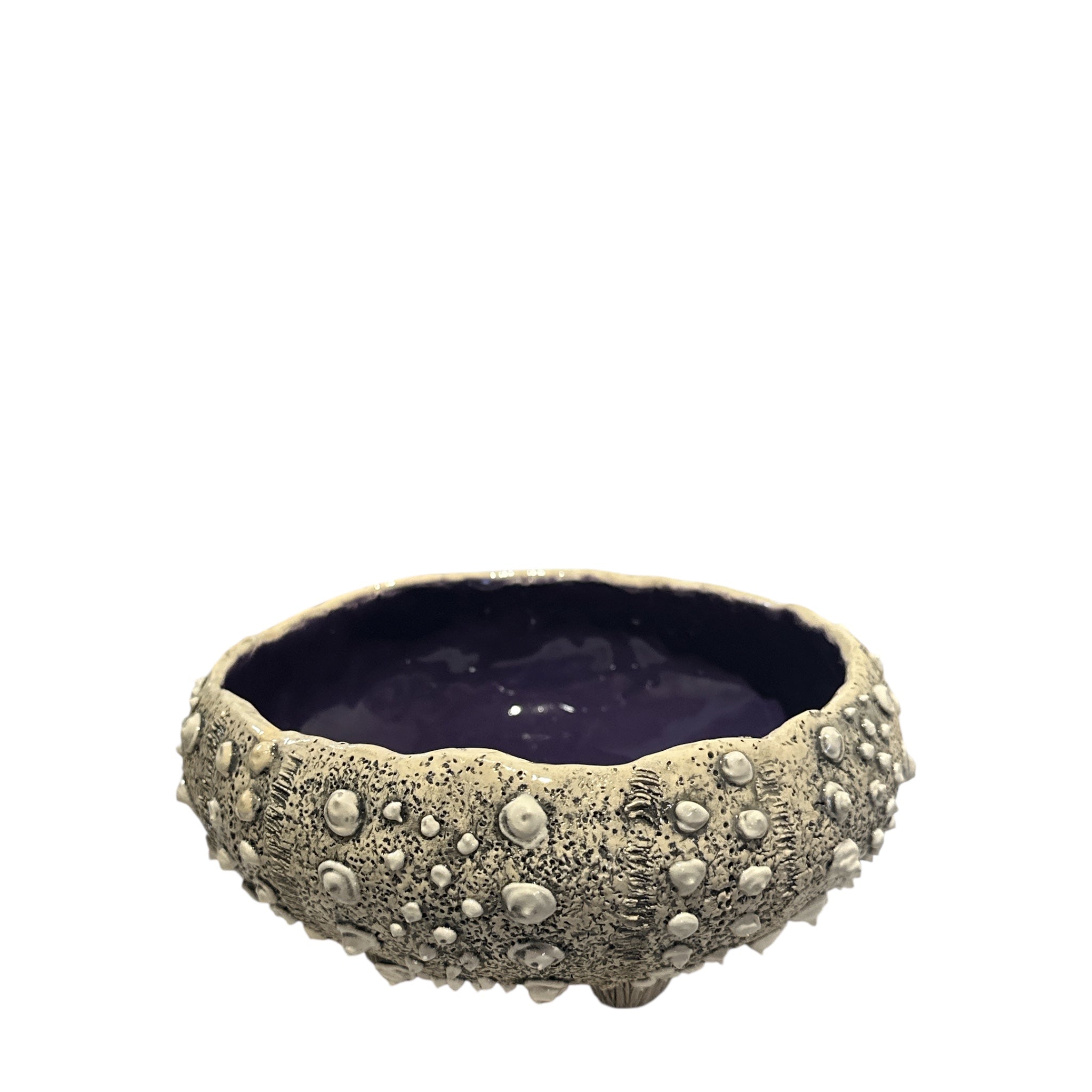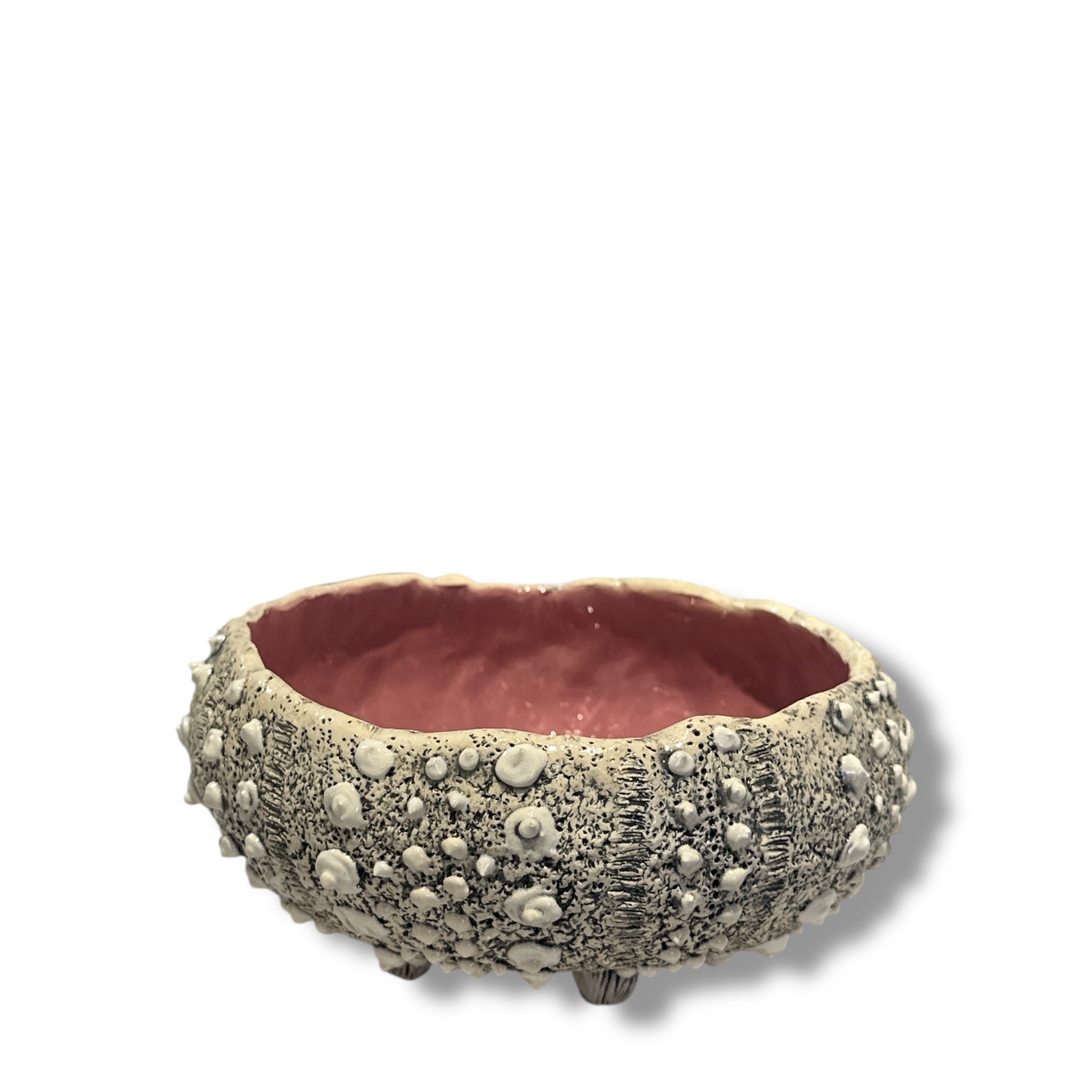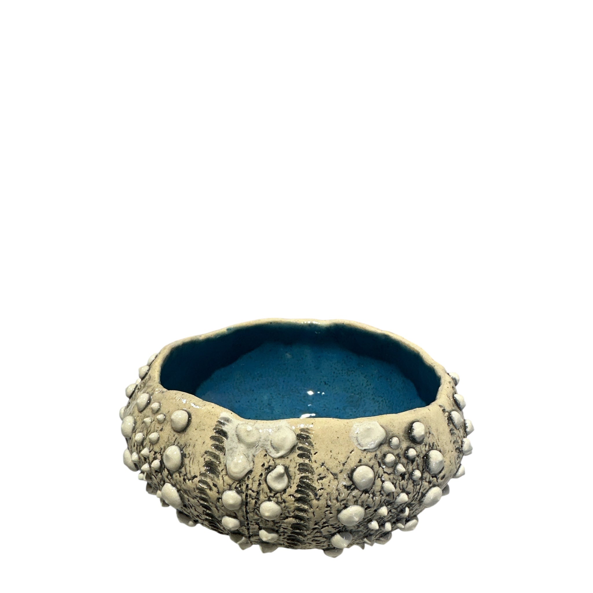 Note- these pieces are tactile, the spine dots are raised from the bowl, similar to a natural sea urchin after the spines are removed. The barnacles may be uneven and caution is recommended when placing on a soft surface. The bowls are dishwasher safe and food safe glazes.each item is one of a kind, colour, size, and overall look may vary slightly.