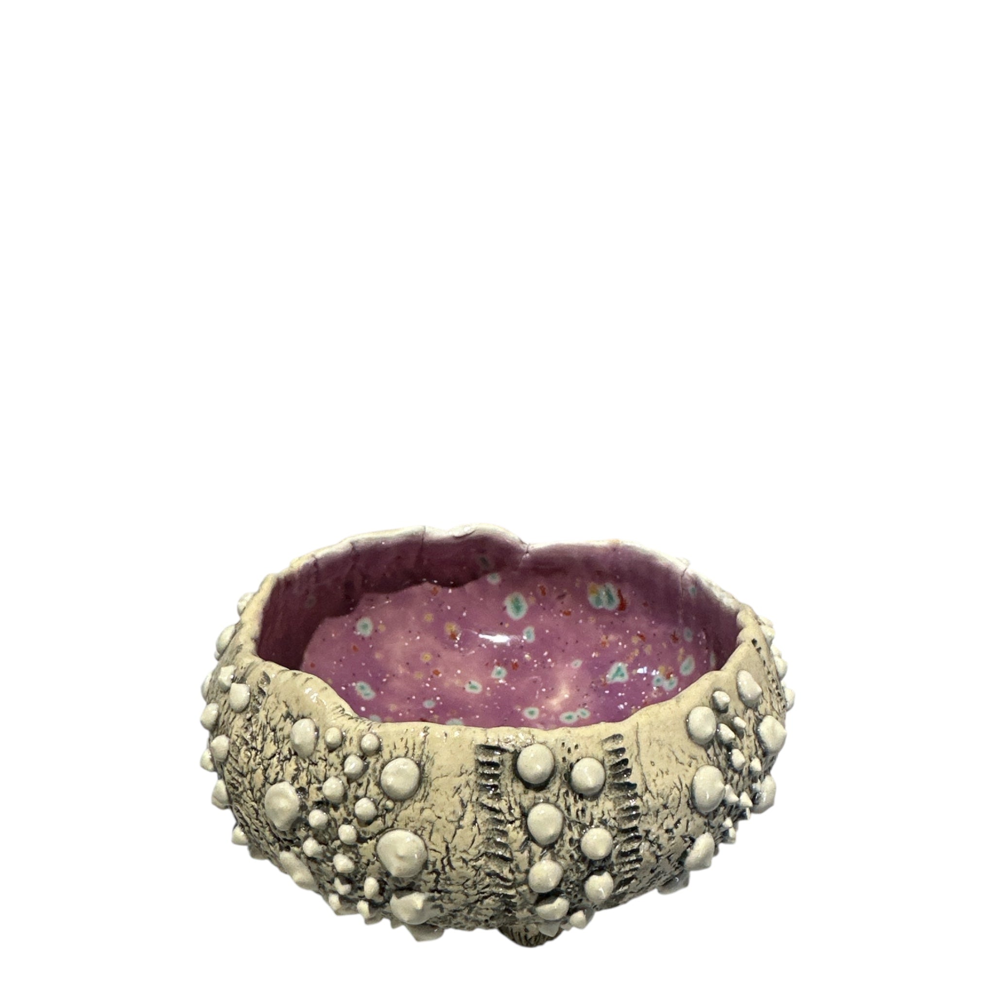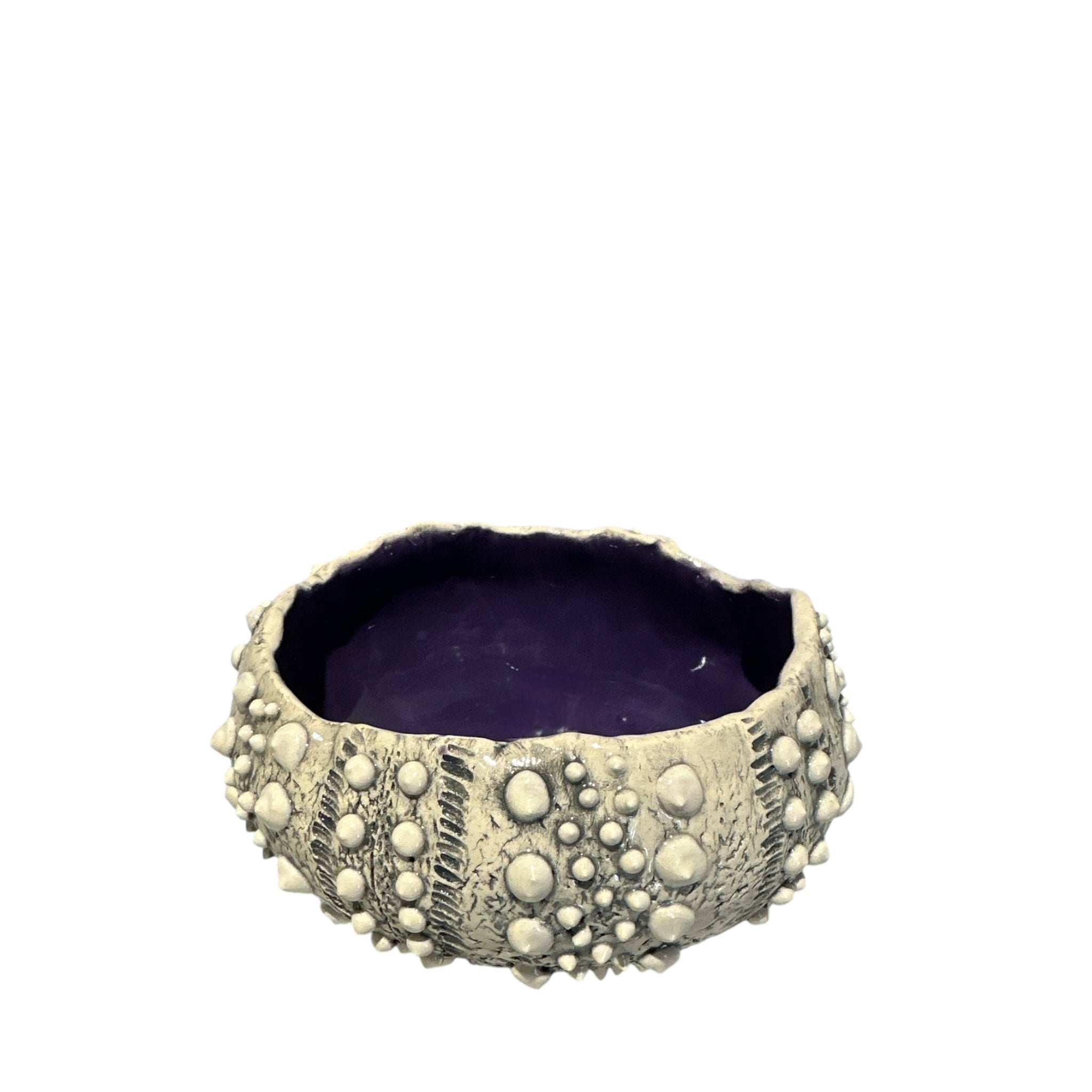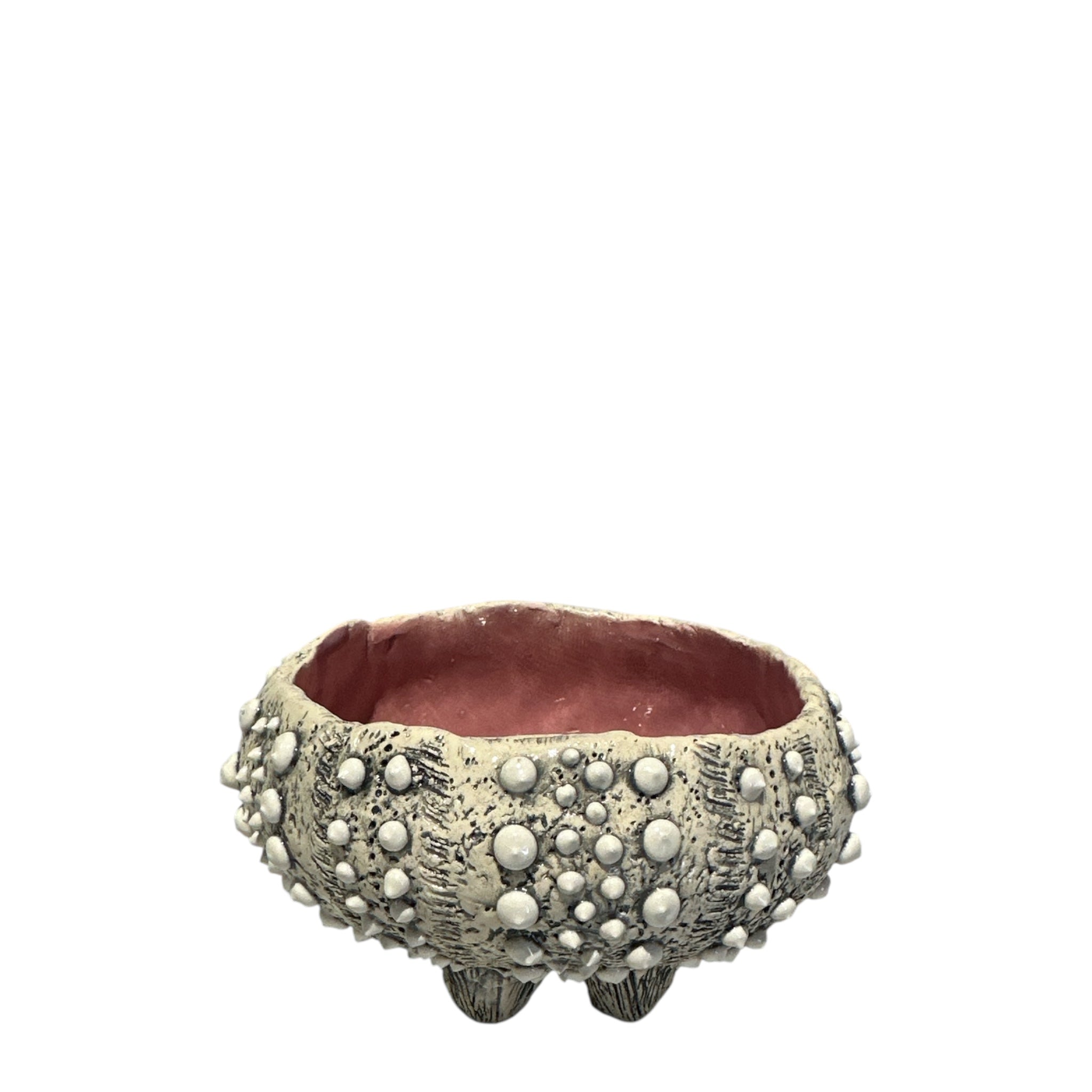 Note- these pieces are tactile, the spine dots are raised from the bowl, similar to a natural sea urchin after the spines are removed. The barnacles may be uneven and caution is recommended when placing on a soft surface. The bowls are dishwasher safe and food safe glazes.each item is one of a kind, colour, size, and overall look may vary slightly.