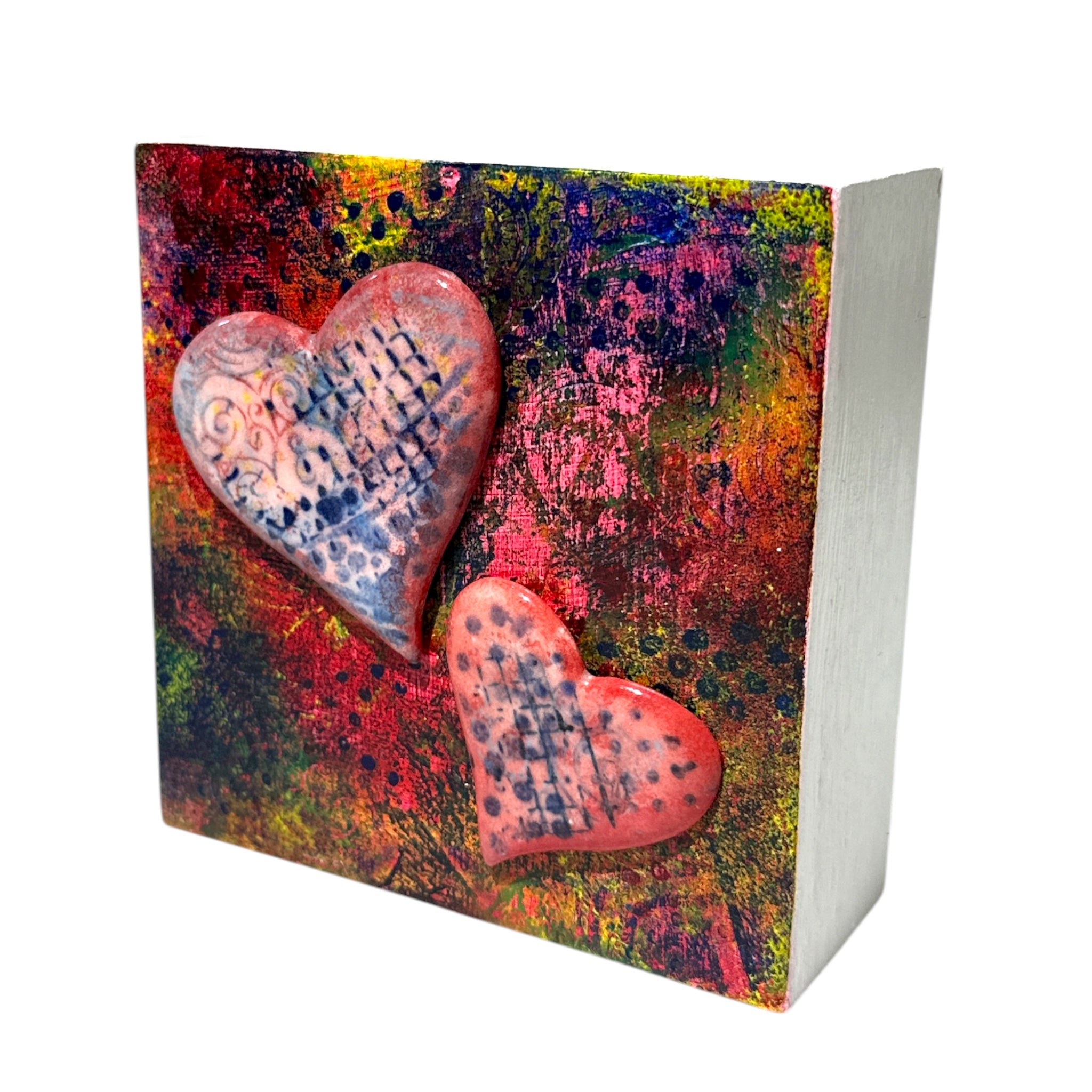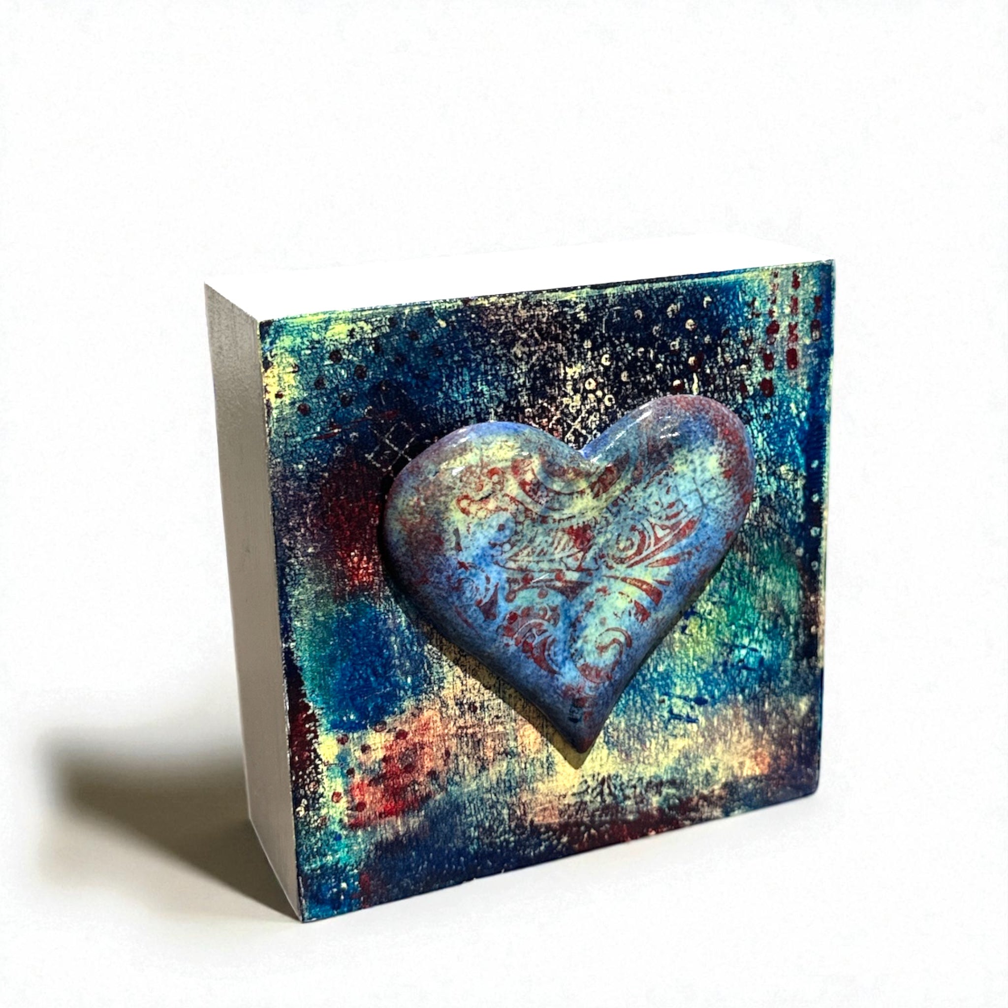 My paintings are acrylic but I sometimes create mixed media paintings by incorporating hand printed papers, fabric and ceramic art. The pieces of pottery and other media I use in my paintings are created in my small studio in Victoria.  I source the highest quality materials and purchase them locally as much as possible. I firmly subscribe to the adage of quality over quantity.