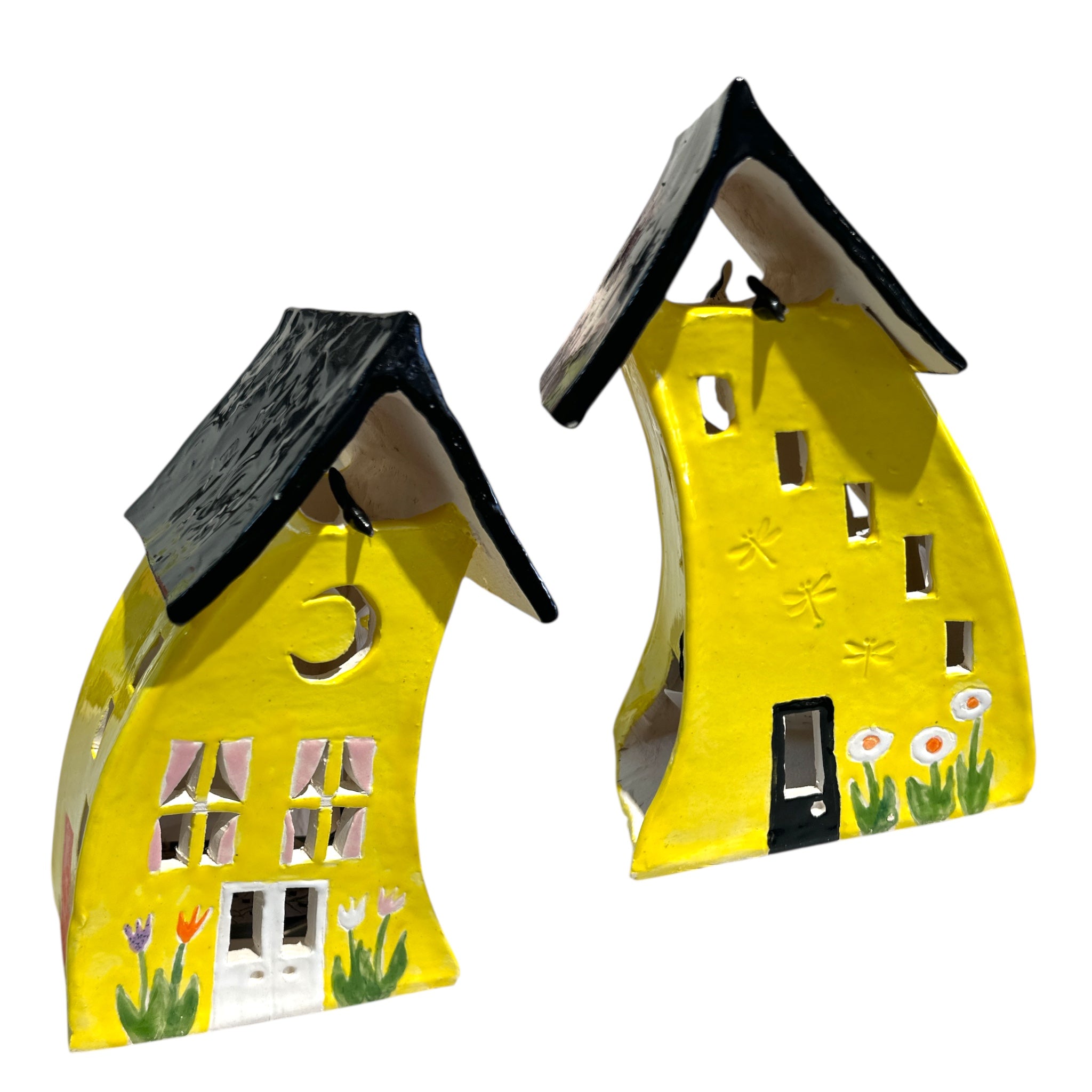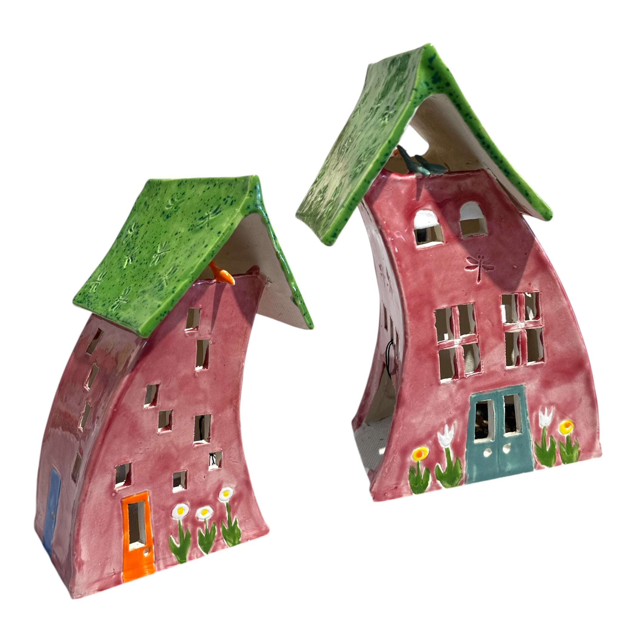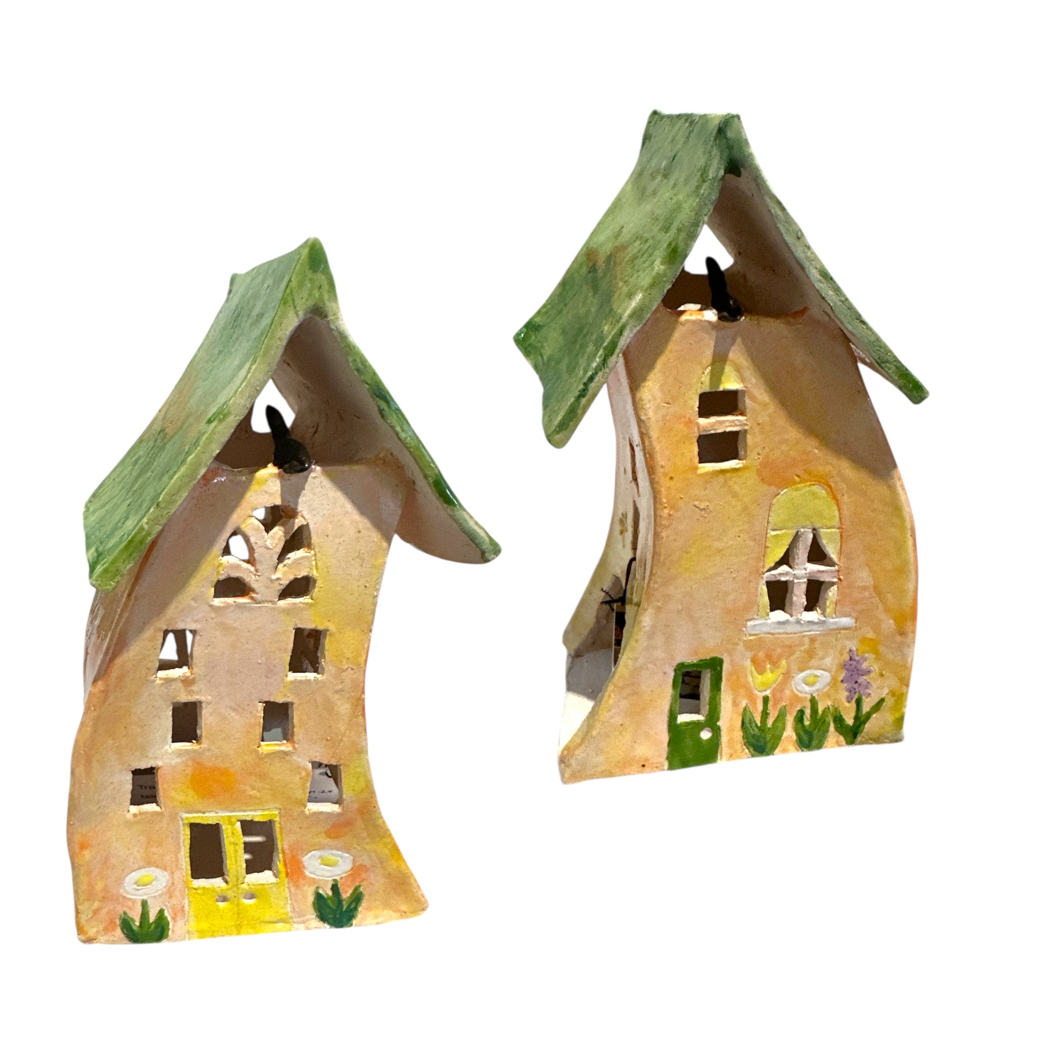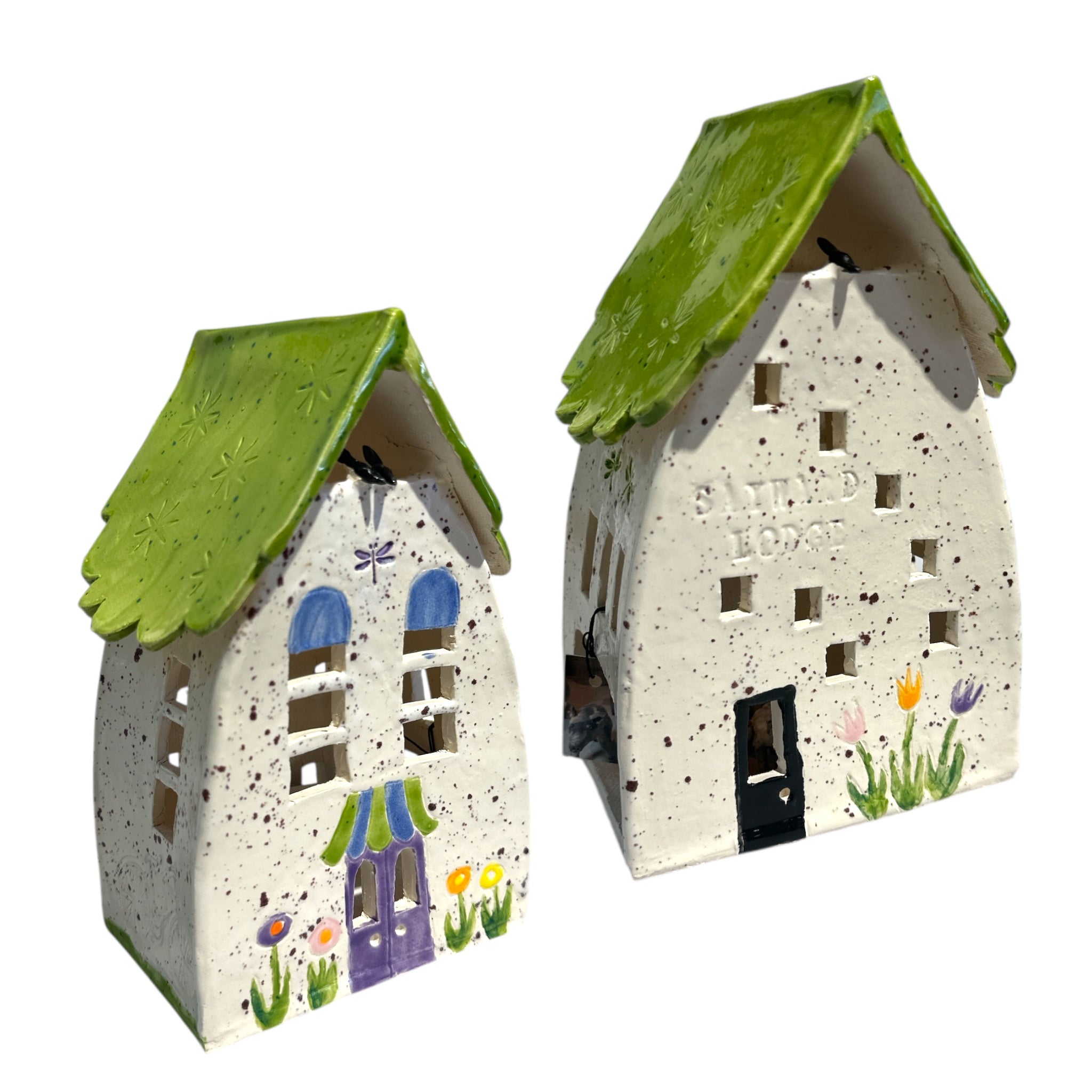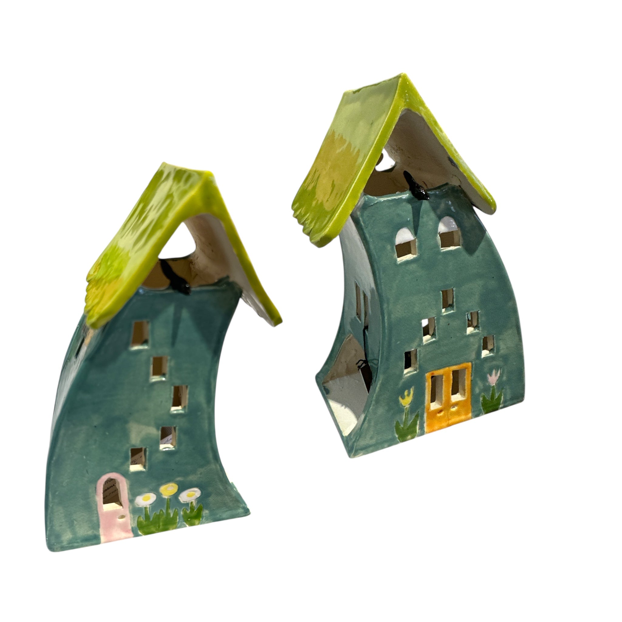 Each house is an original one of a kind hand made house which also has a little opening to put a tealight for a light up.