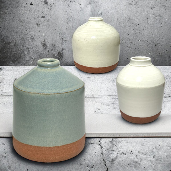 Bud Vases by Sandra Lee Pottery Original White glazed designed butter dishes by Sandra Lee....