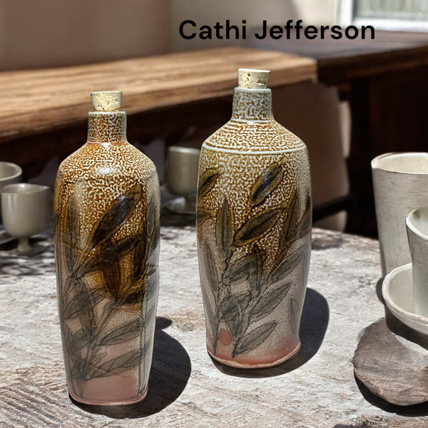Salt Fired Bottle with Cork Collection by Cathi Jefferson Salt Fireing was a process first...