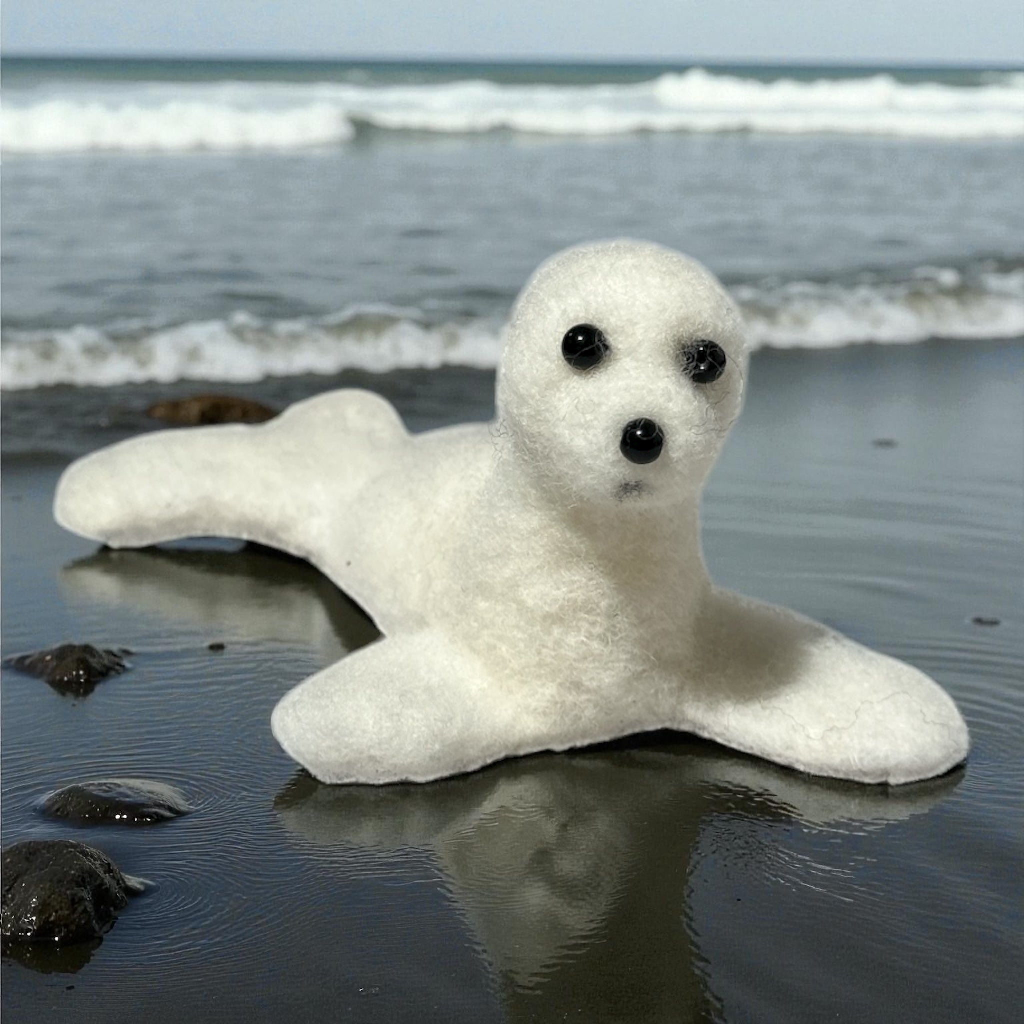 Her creations include animals, woodland creatures, birds, seals, raccoons, mushrooms. Many are mounted on driftwood giving them an almost lifelike look. Others are almost always referenced as adorable.