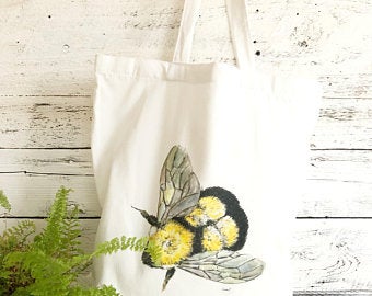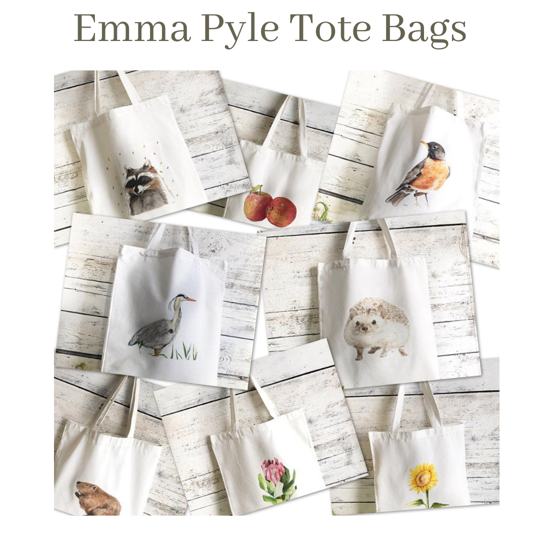 These tote bags are printed with an original illustration by 19 year old Emma Pyle using water-based pigments. They are 100%  cotton and machine washable.