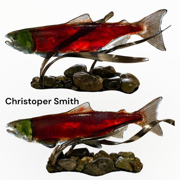 Kiln Cast Glass Salmon Sculpture by Chris Smith Chris creates the Glass Salmon, not to...