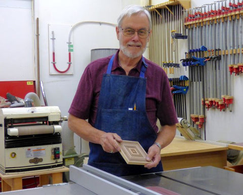 Phil Brookman has spent the last forty years working with wood as a hobby, but has focused on box making only for the past 15 years. A physiotherapist by profession, he found that retirement gave him more time to develop skills suited to box making and making inlay banding, though still finds time to work with custom furniture pieces when needed. Phil finds the grains and colours of Western Maple, walnut, oak, apple, plum and butternut fascinating and challenging to blend into inlays and boxes.