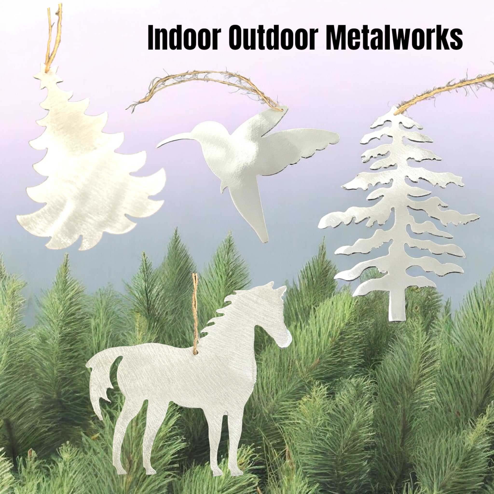 Aluminum - holiday tree, 3 3/4 x 4  3/4 inches, Starfish, 4 1/2 inches, Butterfly 4 inches, Sitka tree, 4 1/2 inches, Hummingbird 4 inches