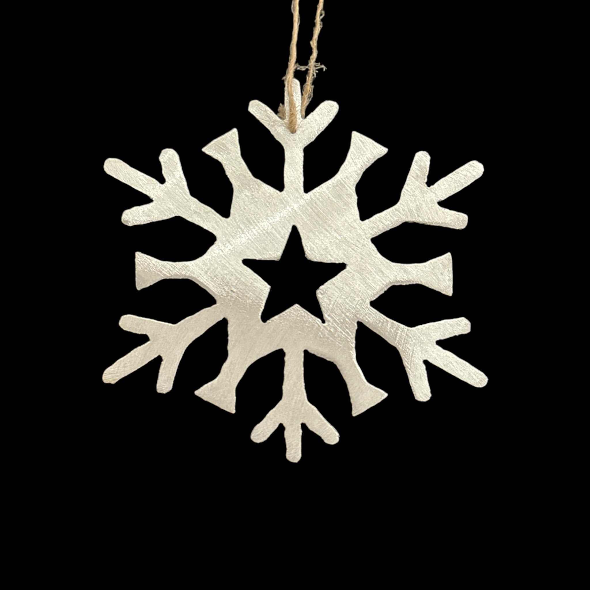 Decorative aluminum ornaments on twine for hanging. Makes for a beautiful piece that can displayed indoor or outdoor.
