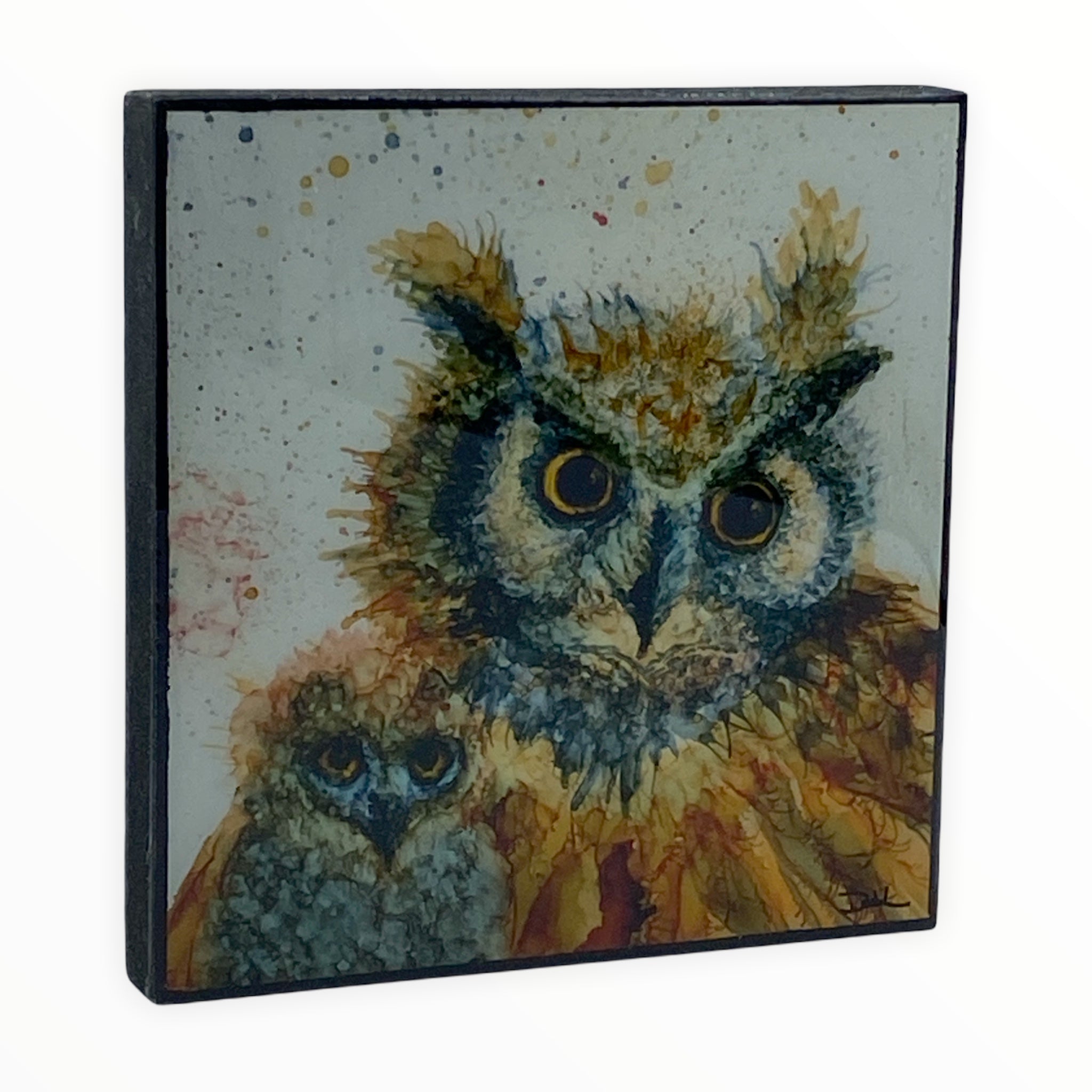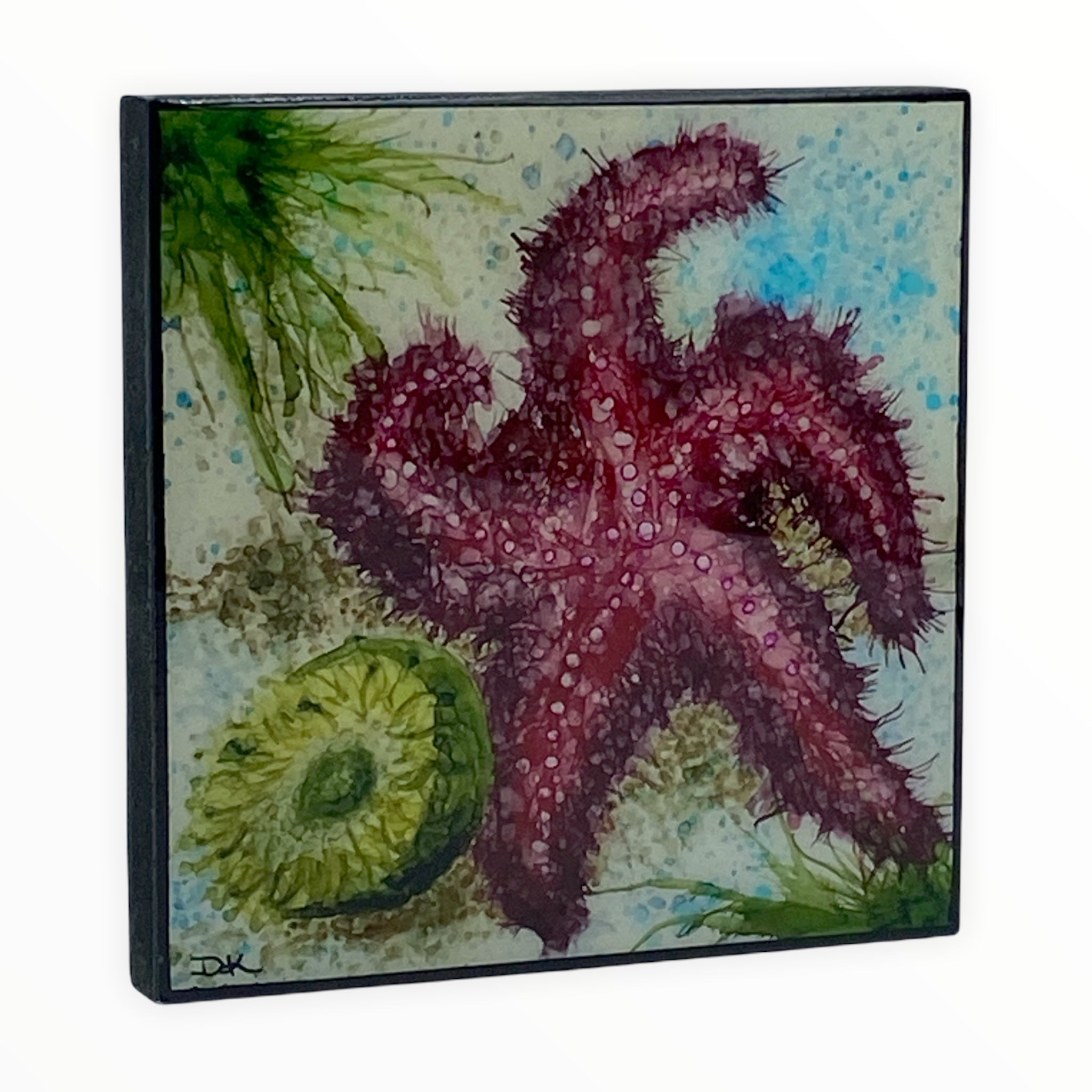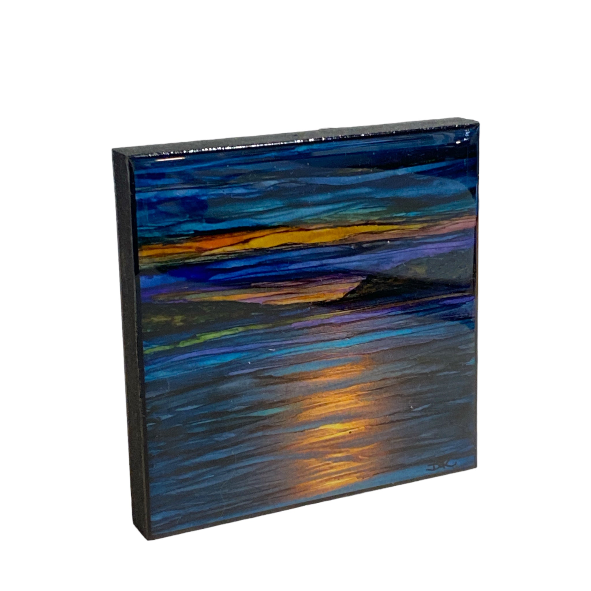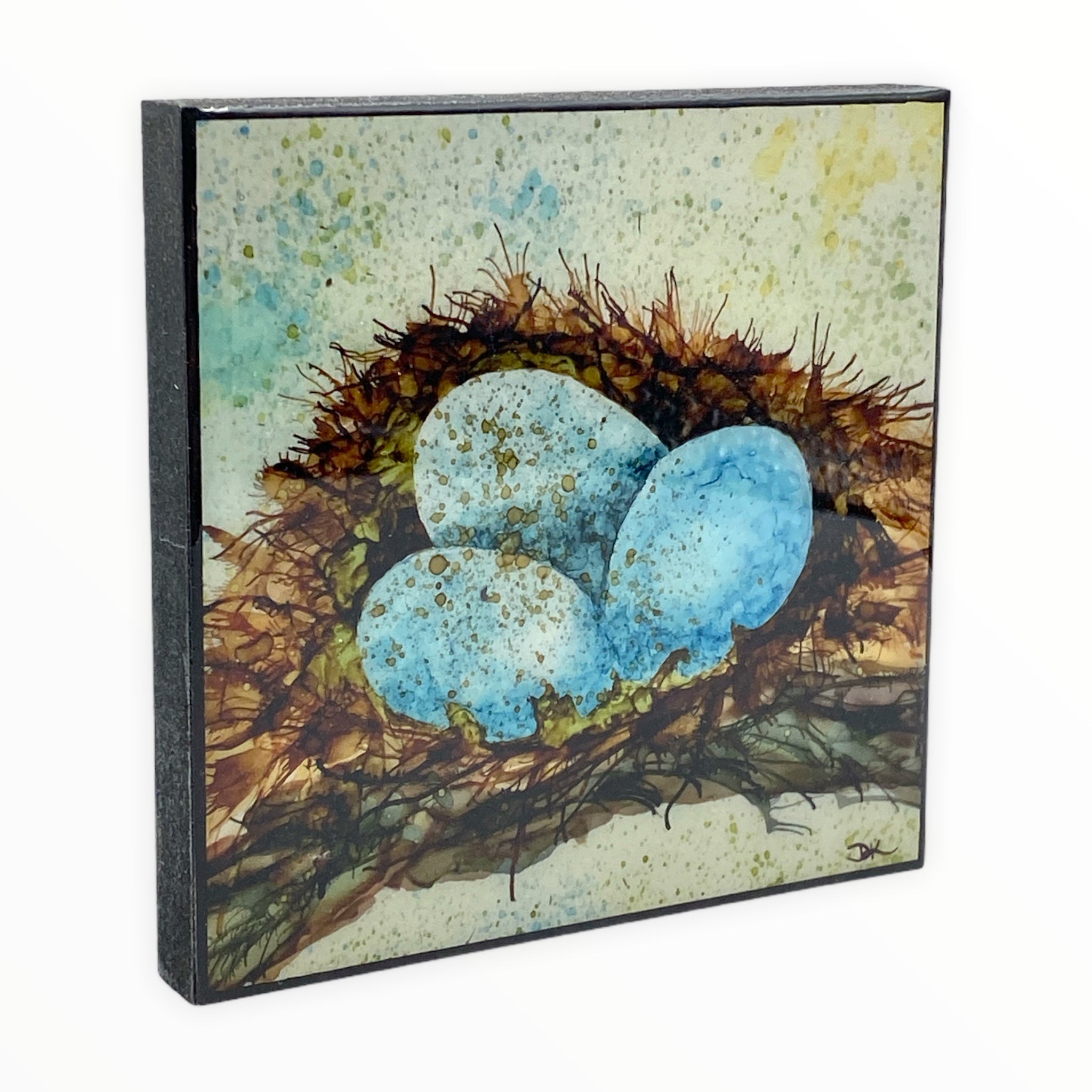 Reproductions of Donna's unique and beautiful work on wood blocks. Ready for hanging.