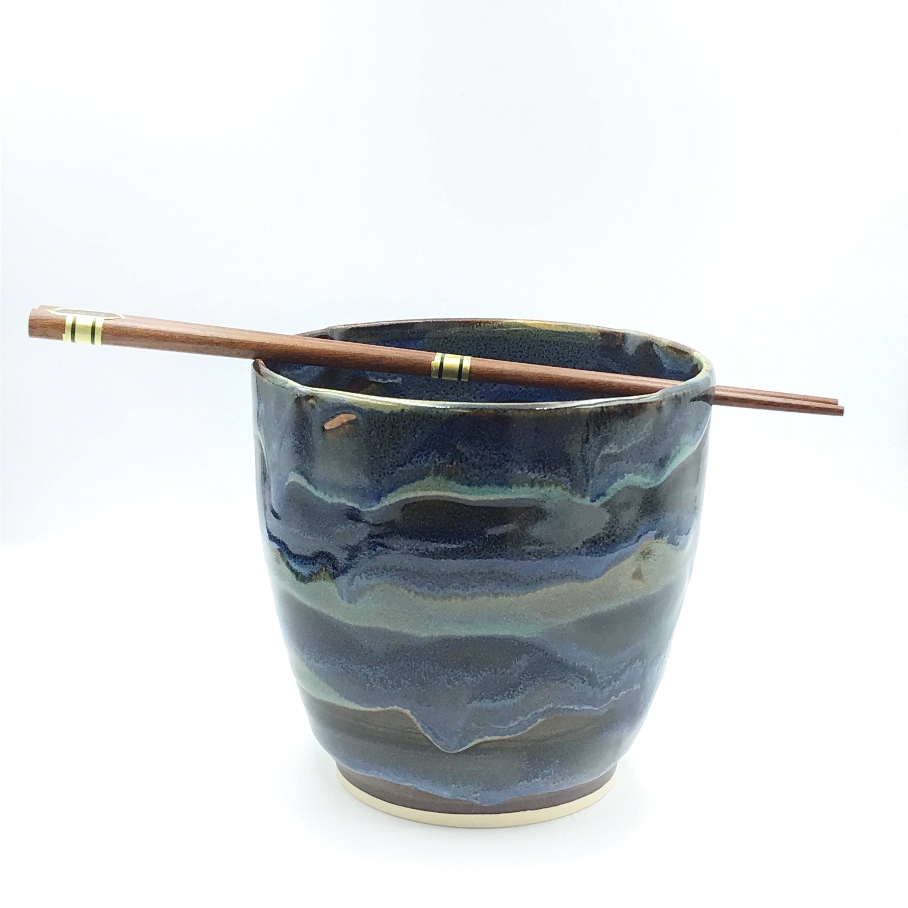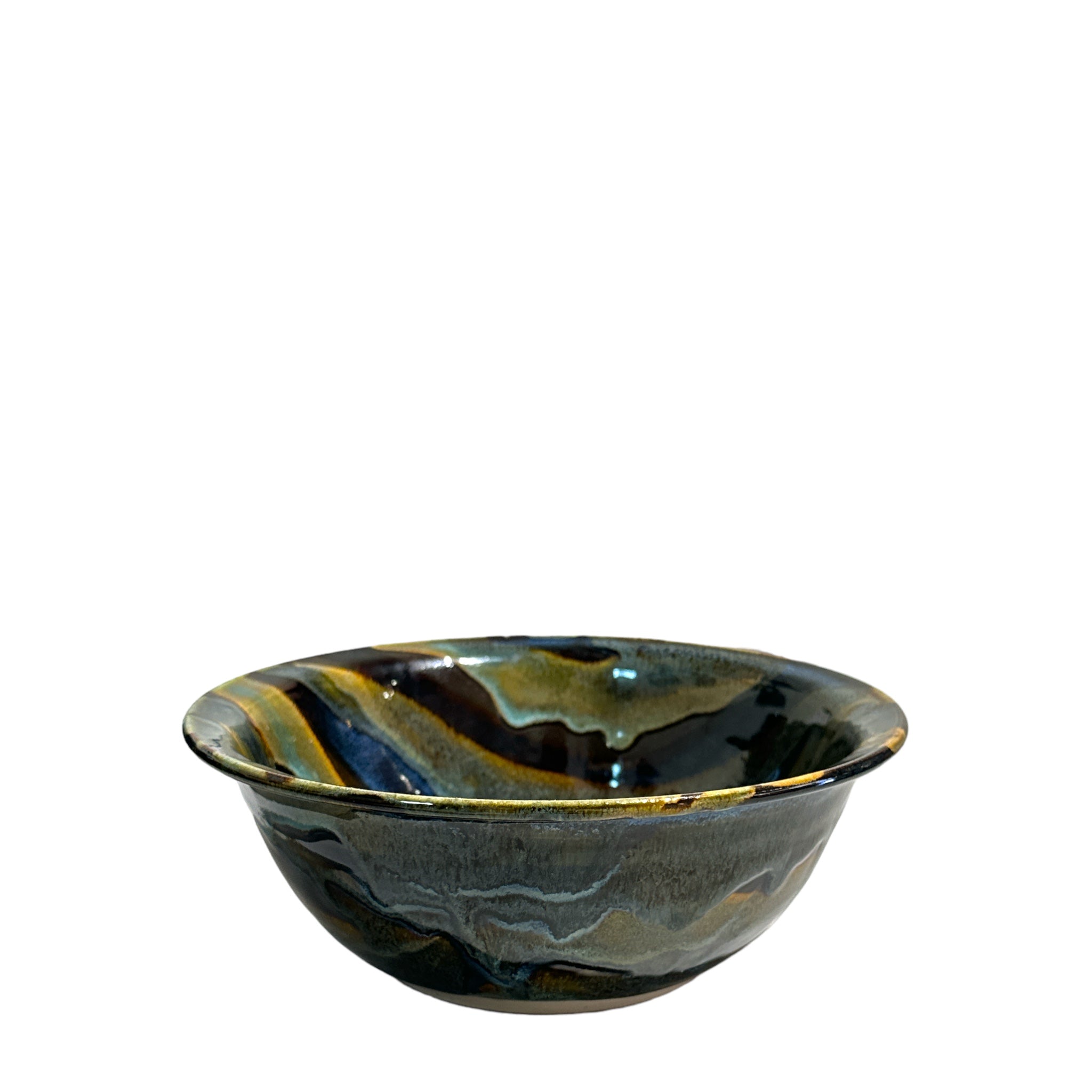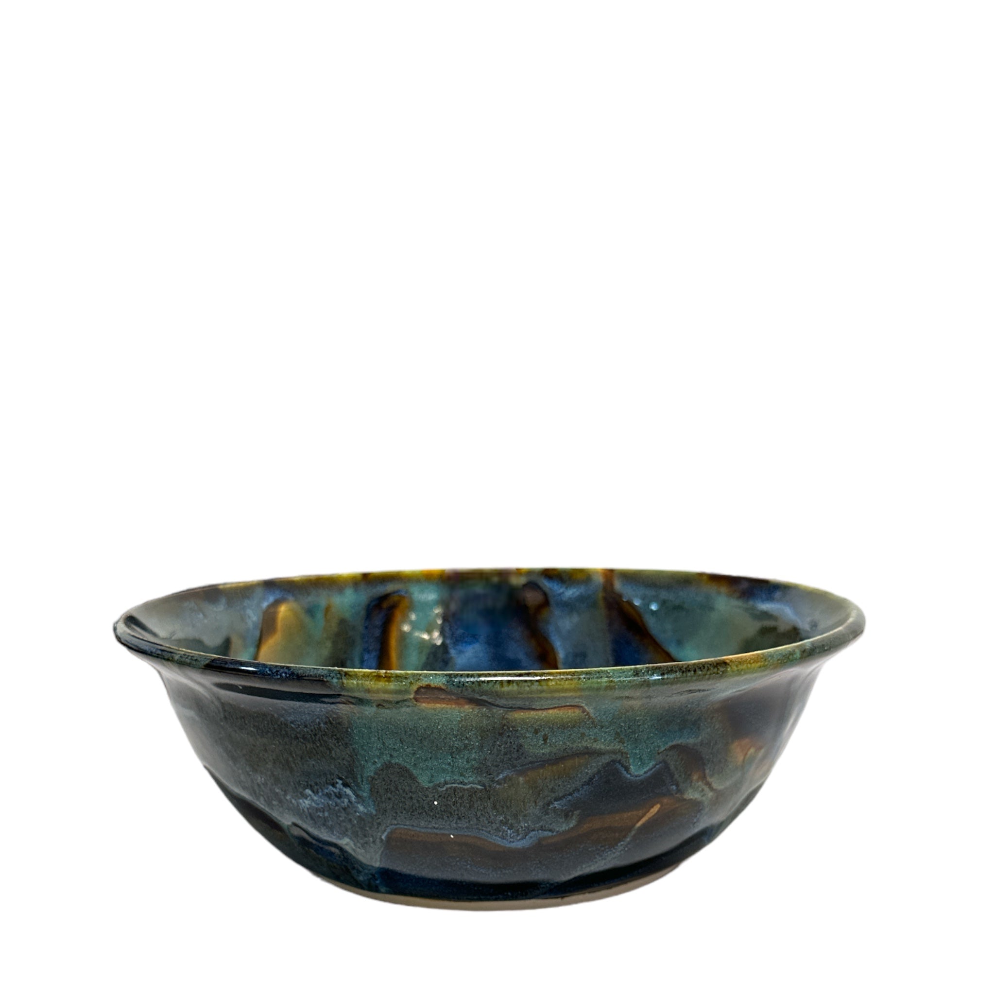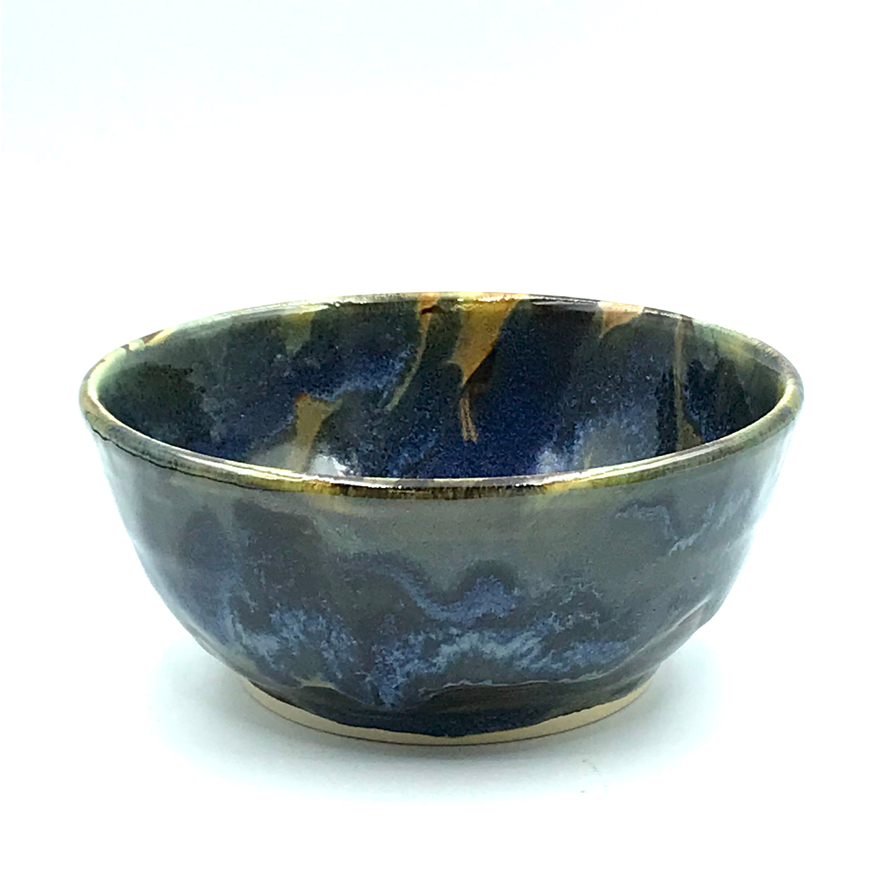 The Tofino glaze and design by Matthew Freed. A gorgeous swirl of deep blues complimented with seafoam and pale gold highlights.