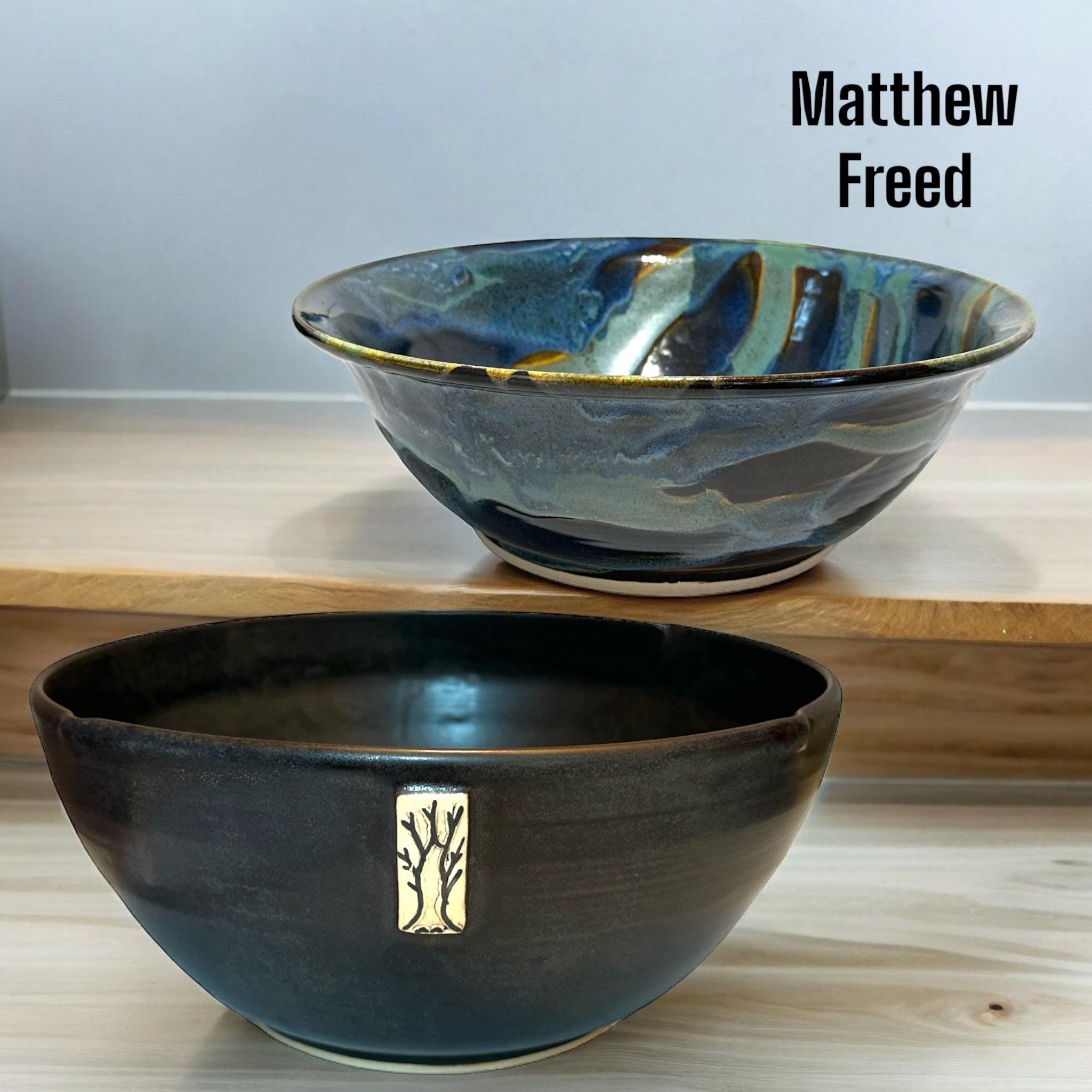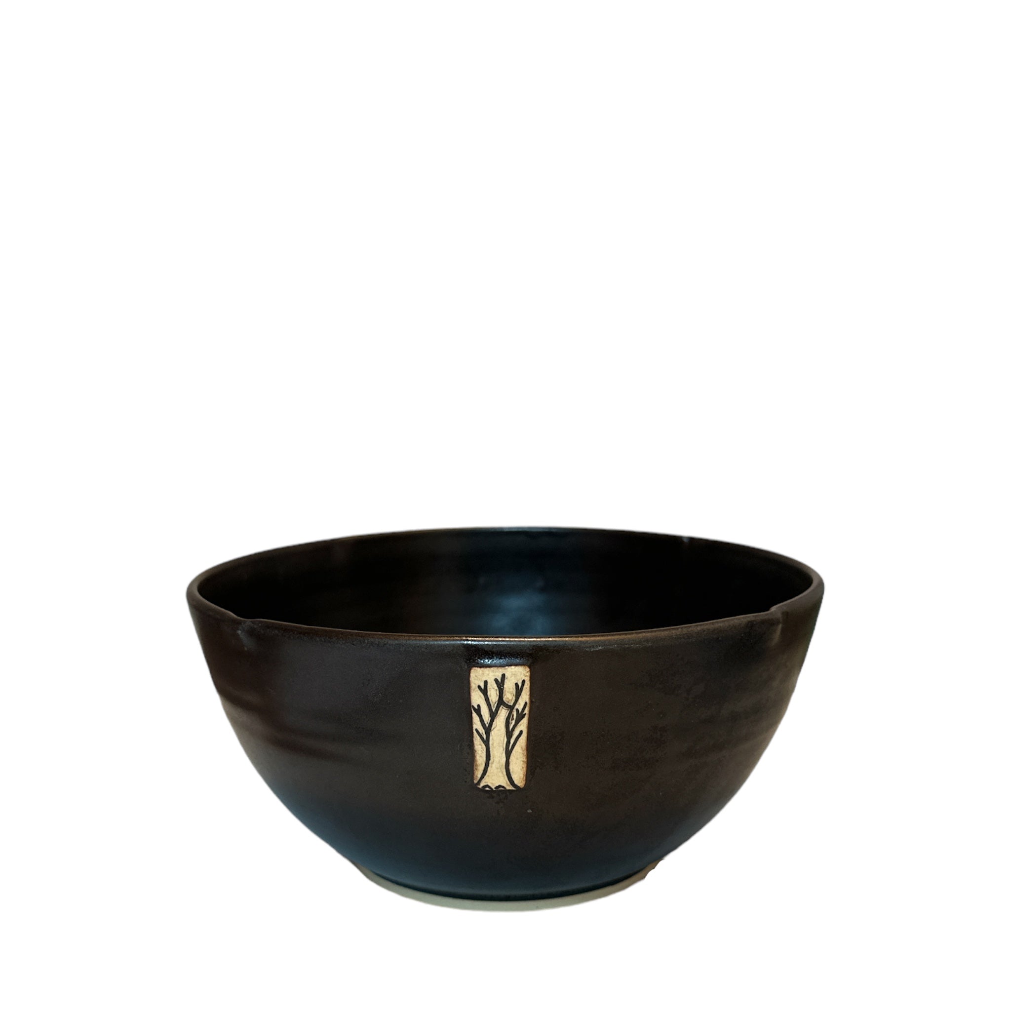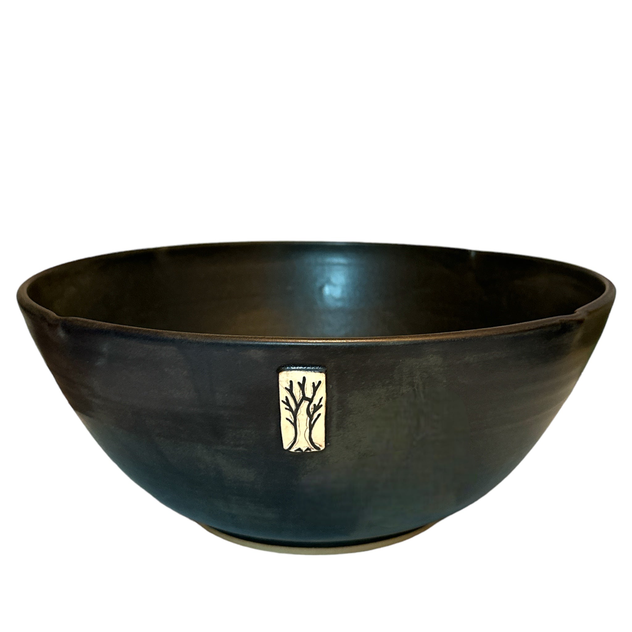 The "Tree of Life" design by Matthew Freed. A gorgeous semi matte charcoal tone (a combination of two glazes) finishes these modern pieces.