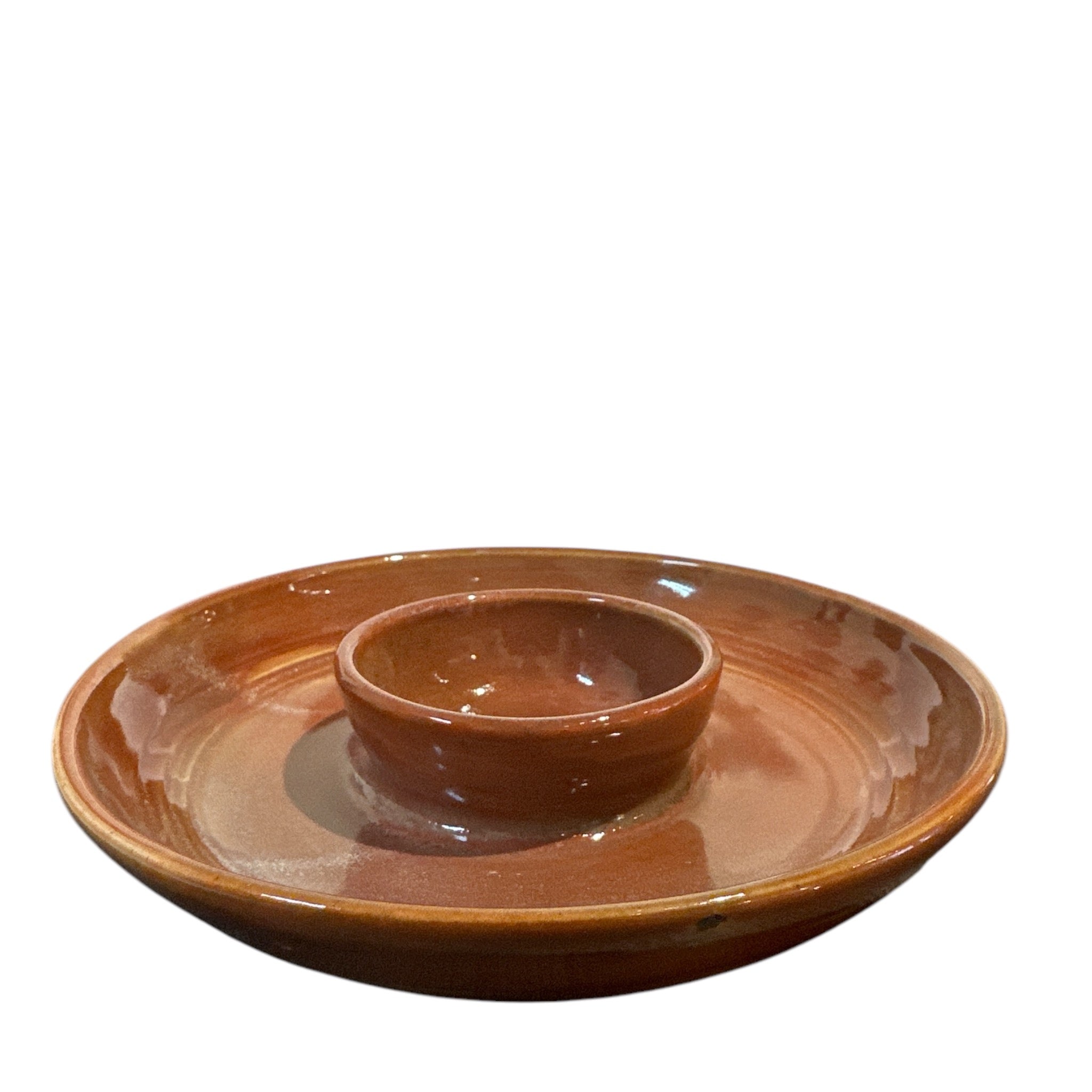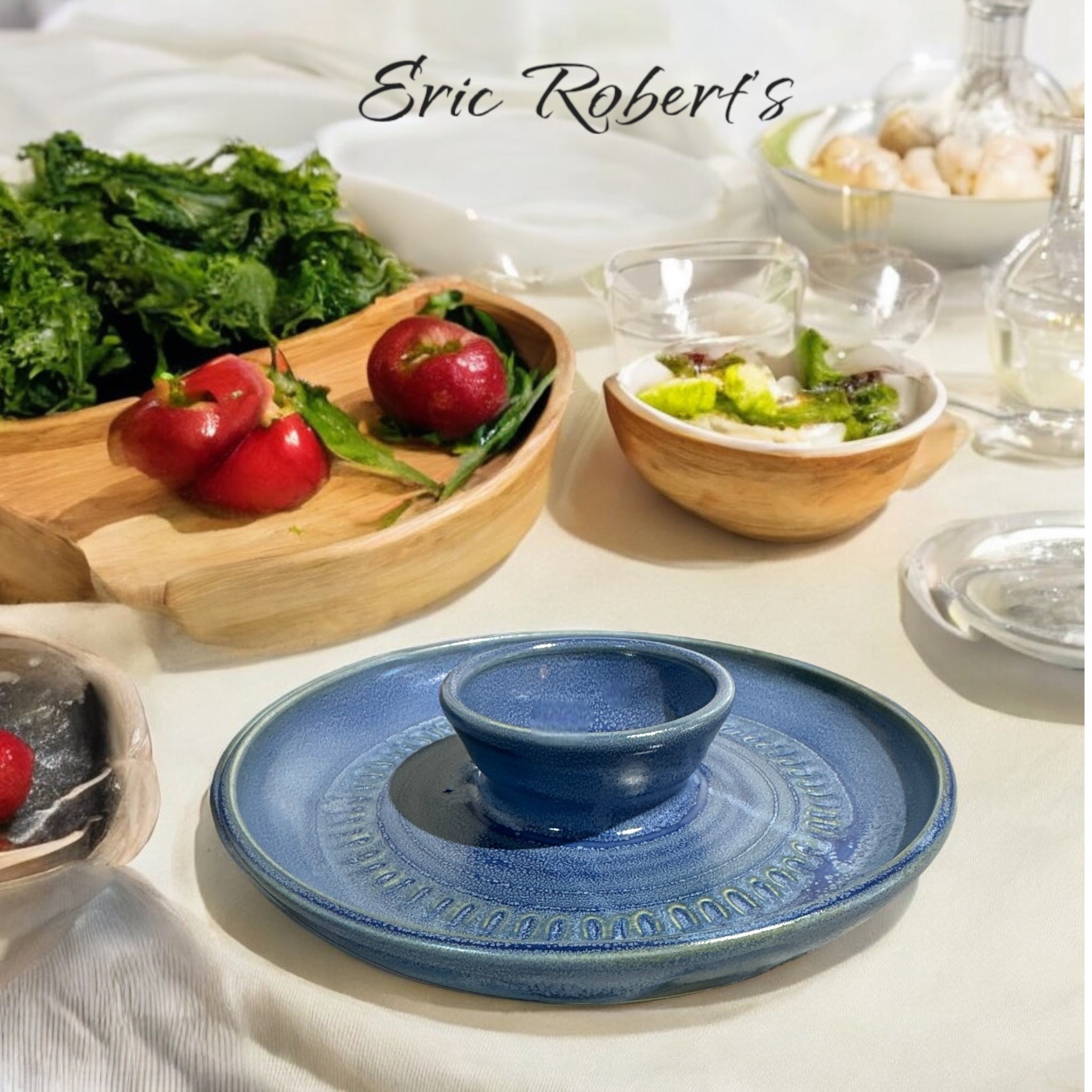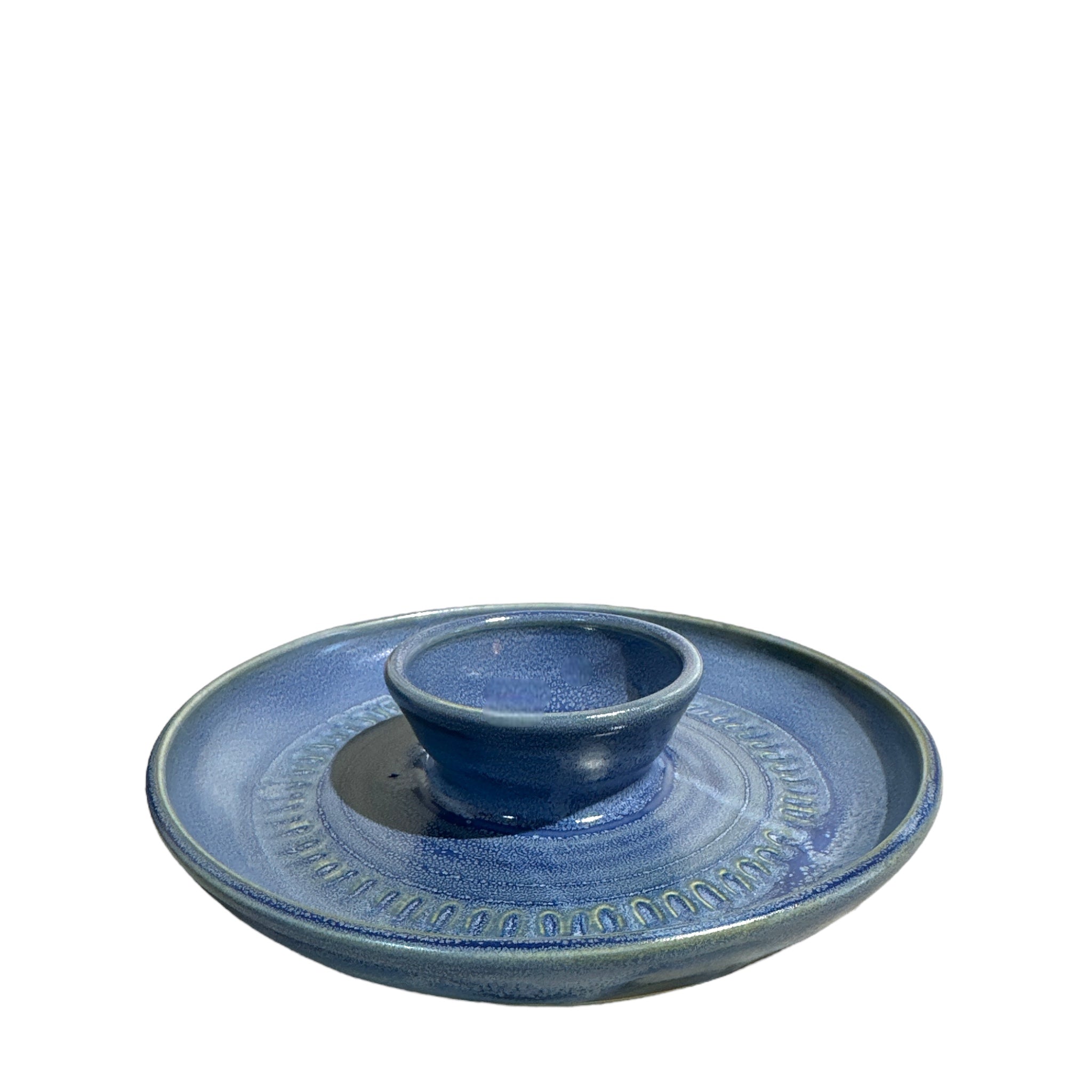 This useful platter and bowl has a lovely Powell River blue glaze and is dishwasher, microwave and oven proof. Perfect for a dip platter. The bowl is removable so that the platter and bowl may be used separately.