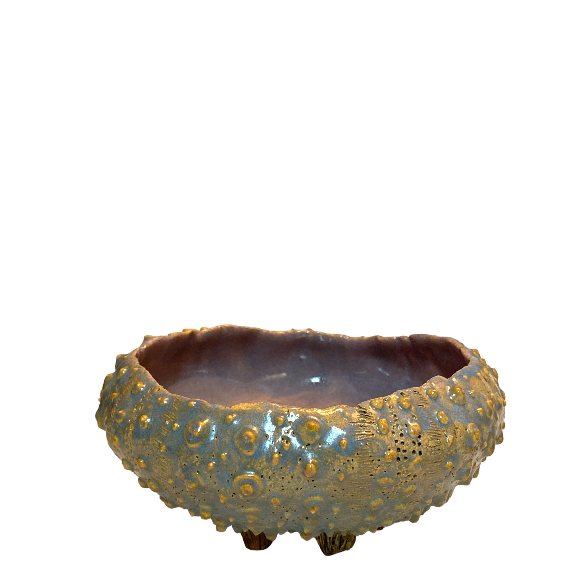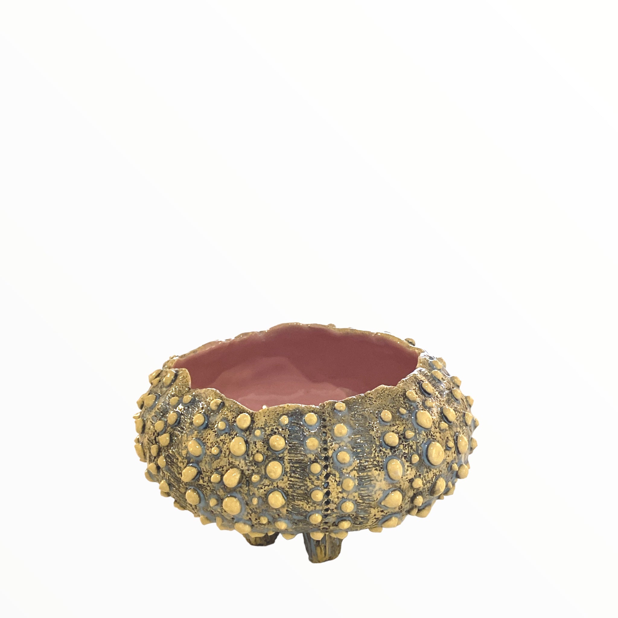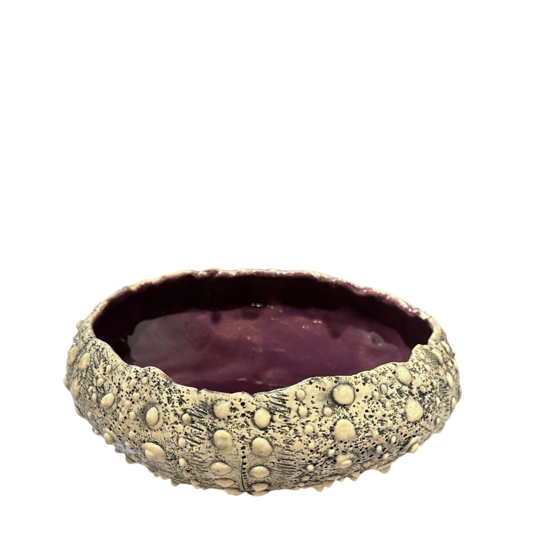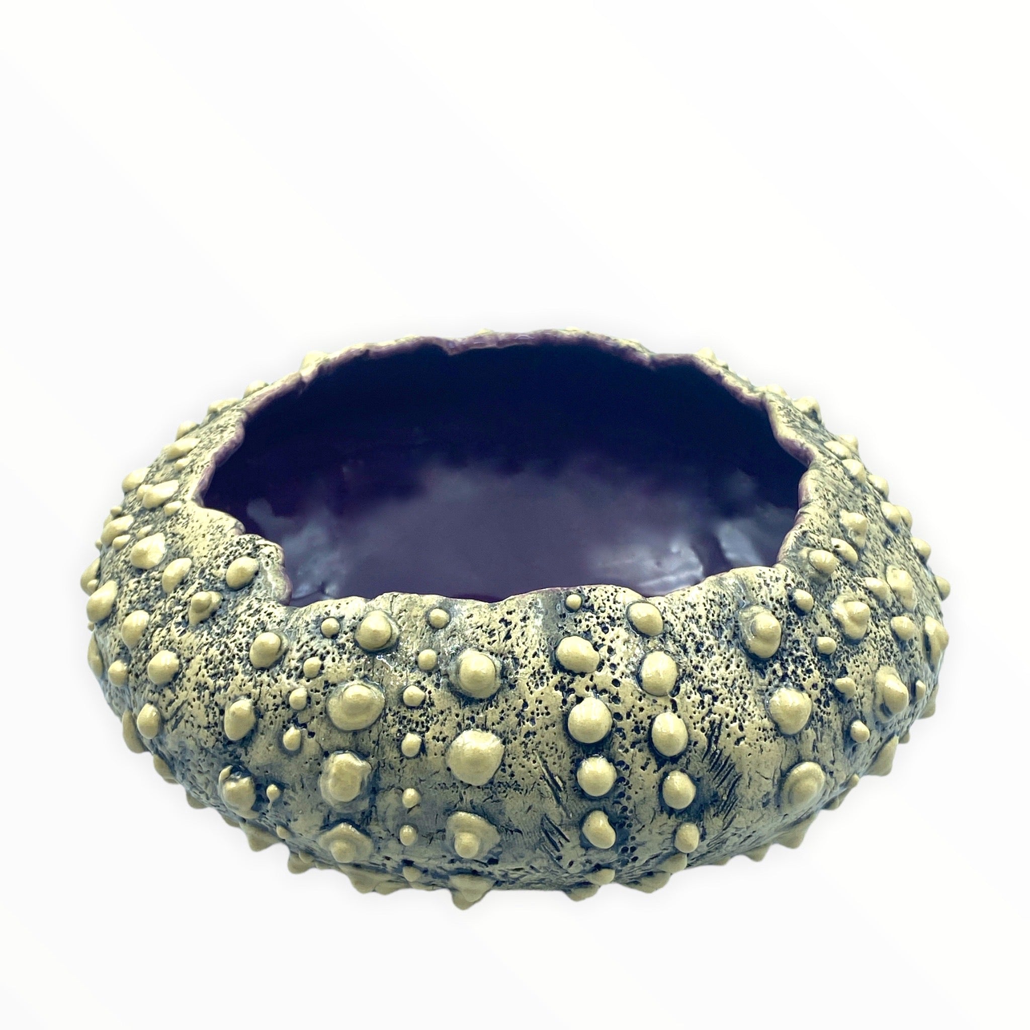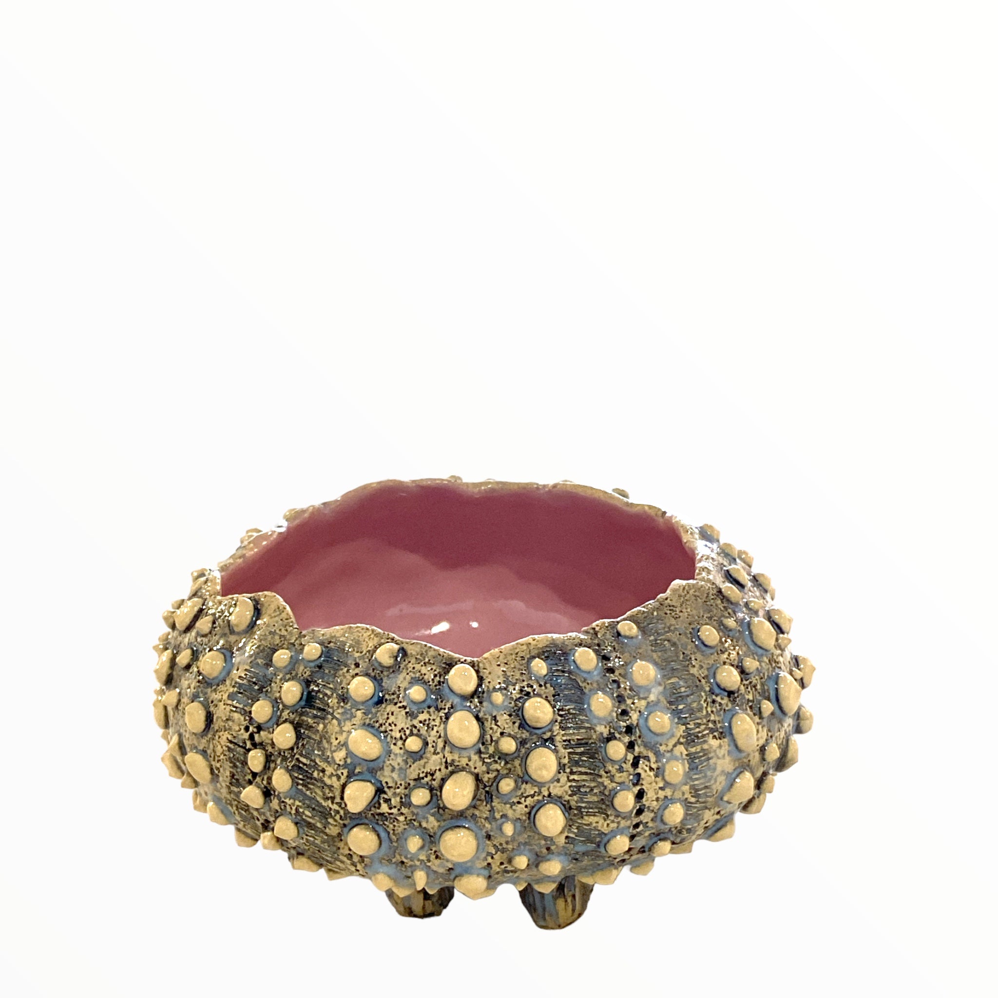 Note- these pieces are tactile, the spine dots are raised from the bowl, similar to a natural sea urchin after the spines are removed. The barnacles may be uneven and caution is recommended when placing on a soft surface. The bowls are dishwasher safe and food safe glazes.each item is one of a kind, colour, size, and overall look may vary slightly.