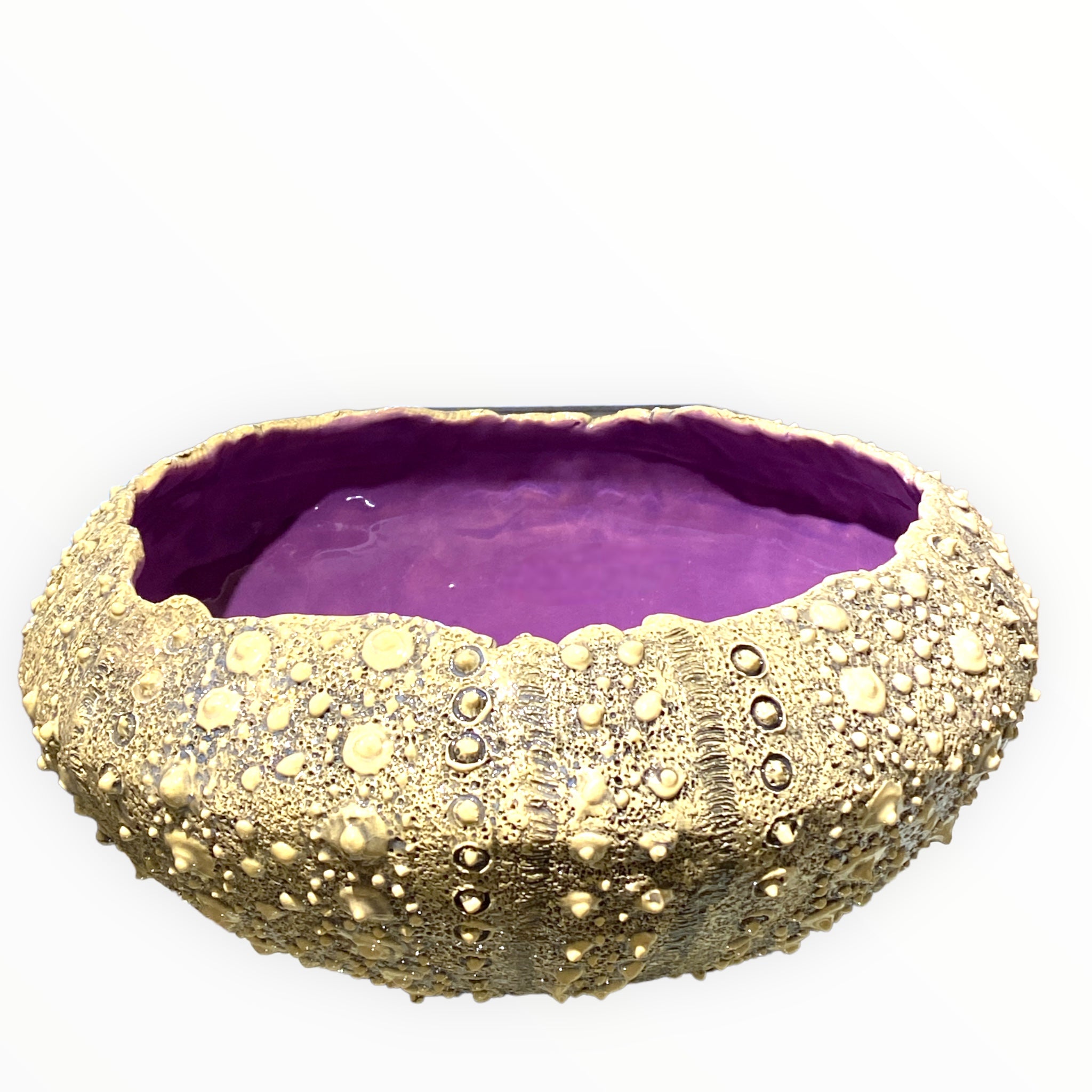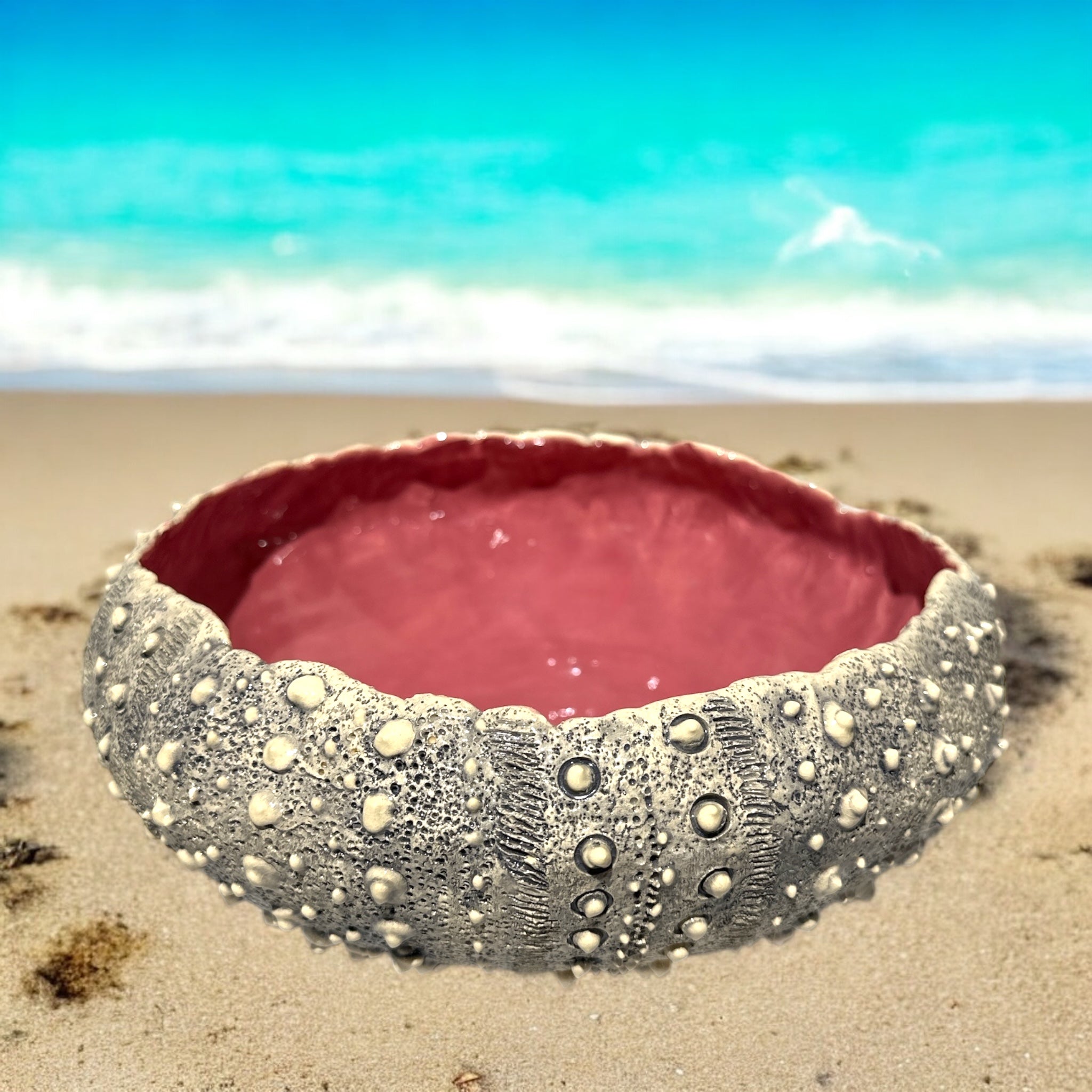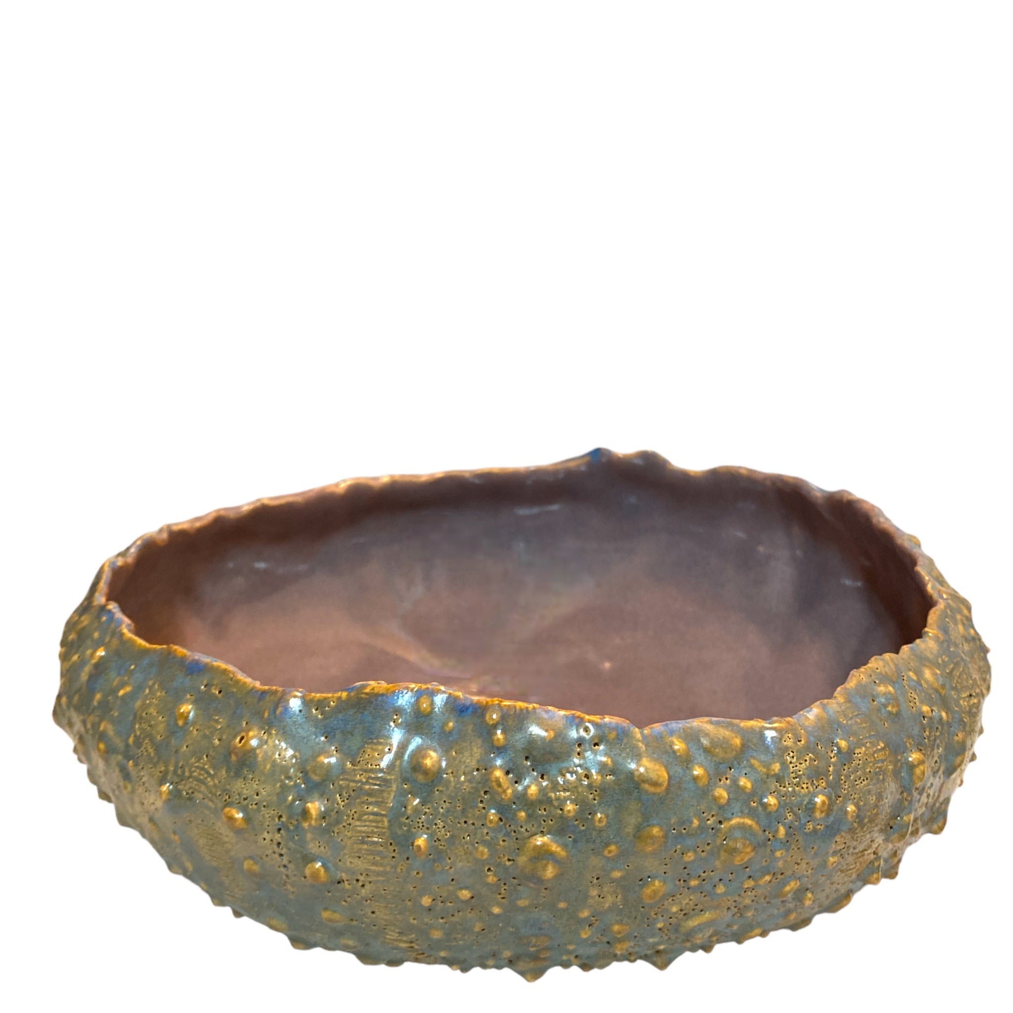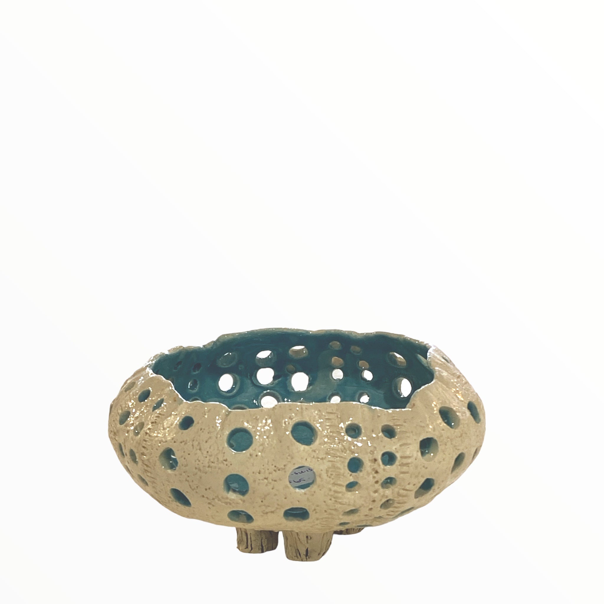 Note- these pieces are tactile, the spine dots are raised from the bowl, similar to a natural sea urchin after the spines are removed. The barnacles may be uneven and caution is recommended when placing on a soft surface. The bowls are dishwasher safe and food safe glazes.each item is one of a kind, colour, size, and overall look may vary slightly.