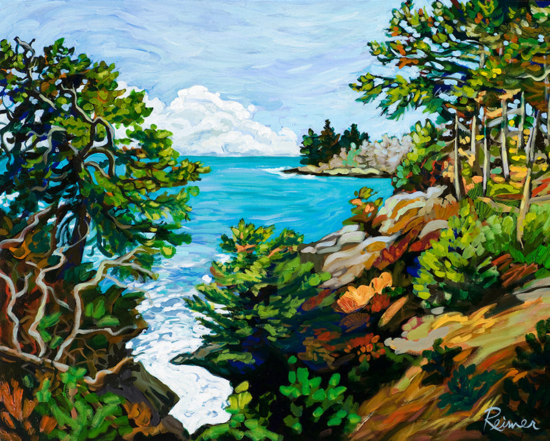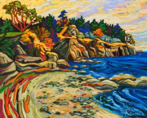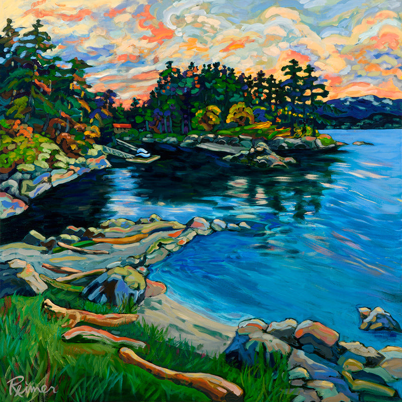 Vibrant colour, movement and the play of light are essential elements in Christine Reimer's distinctive original paintings. Her evocative interpretations of landscape and other subject matter are held in corporate and private collections across Canada, the United States and Europe. To see more paintings visit her website at www.christinereimer.ca