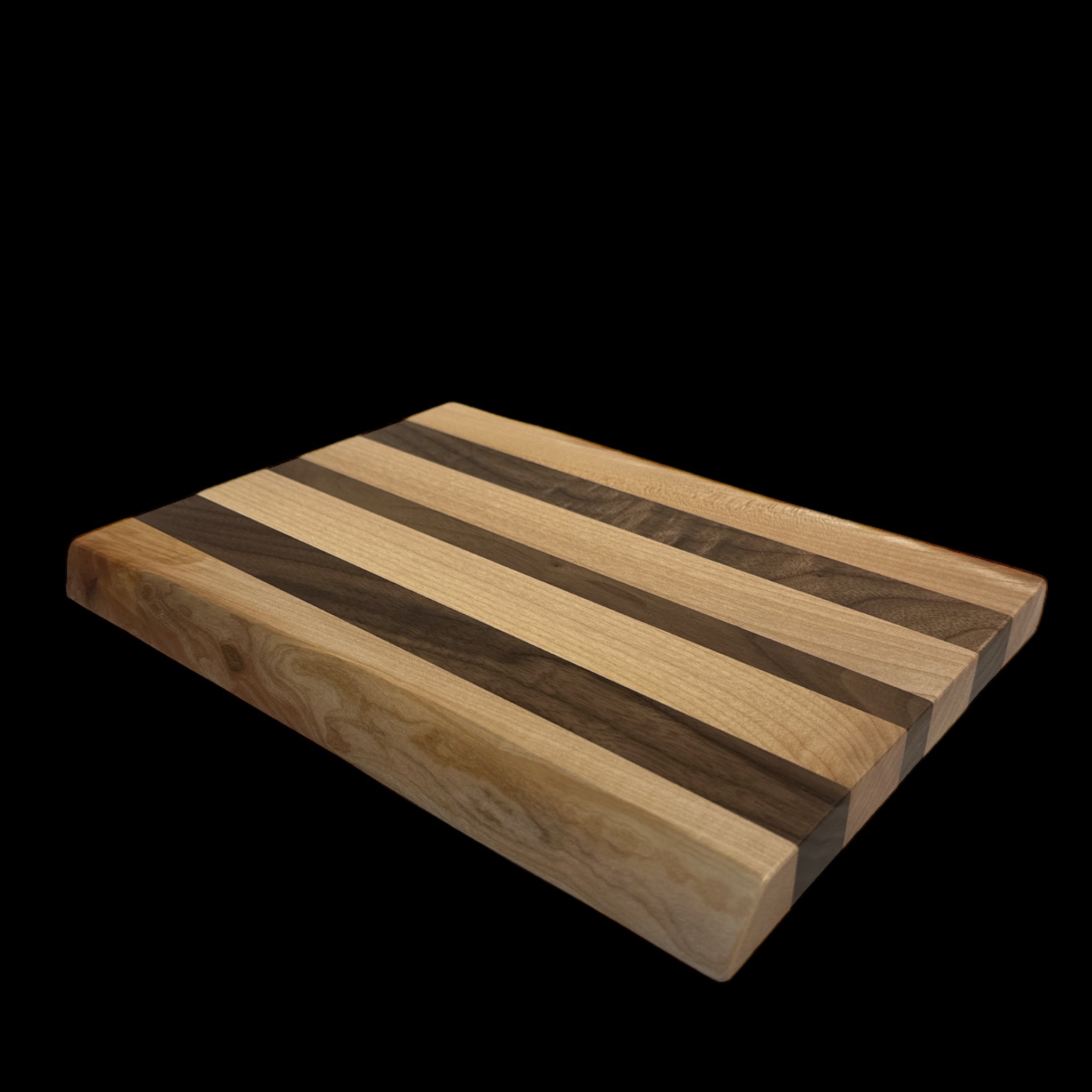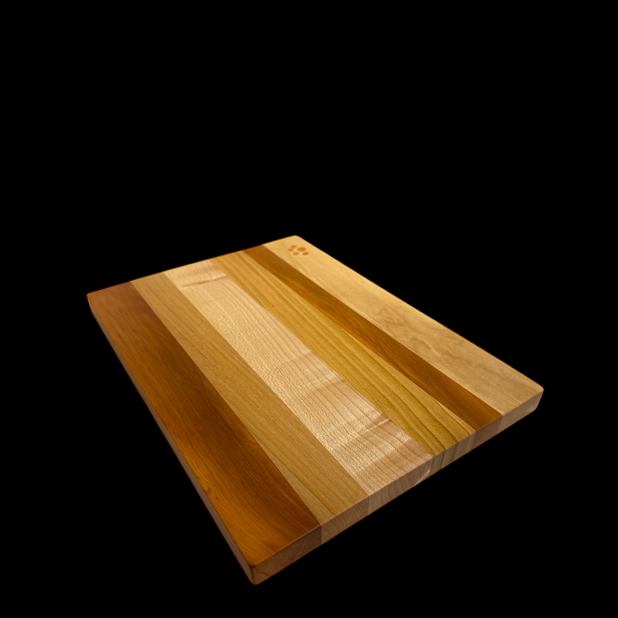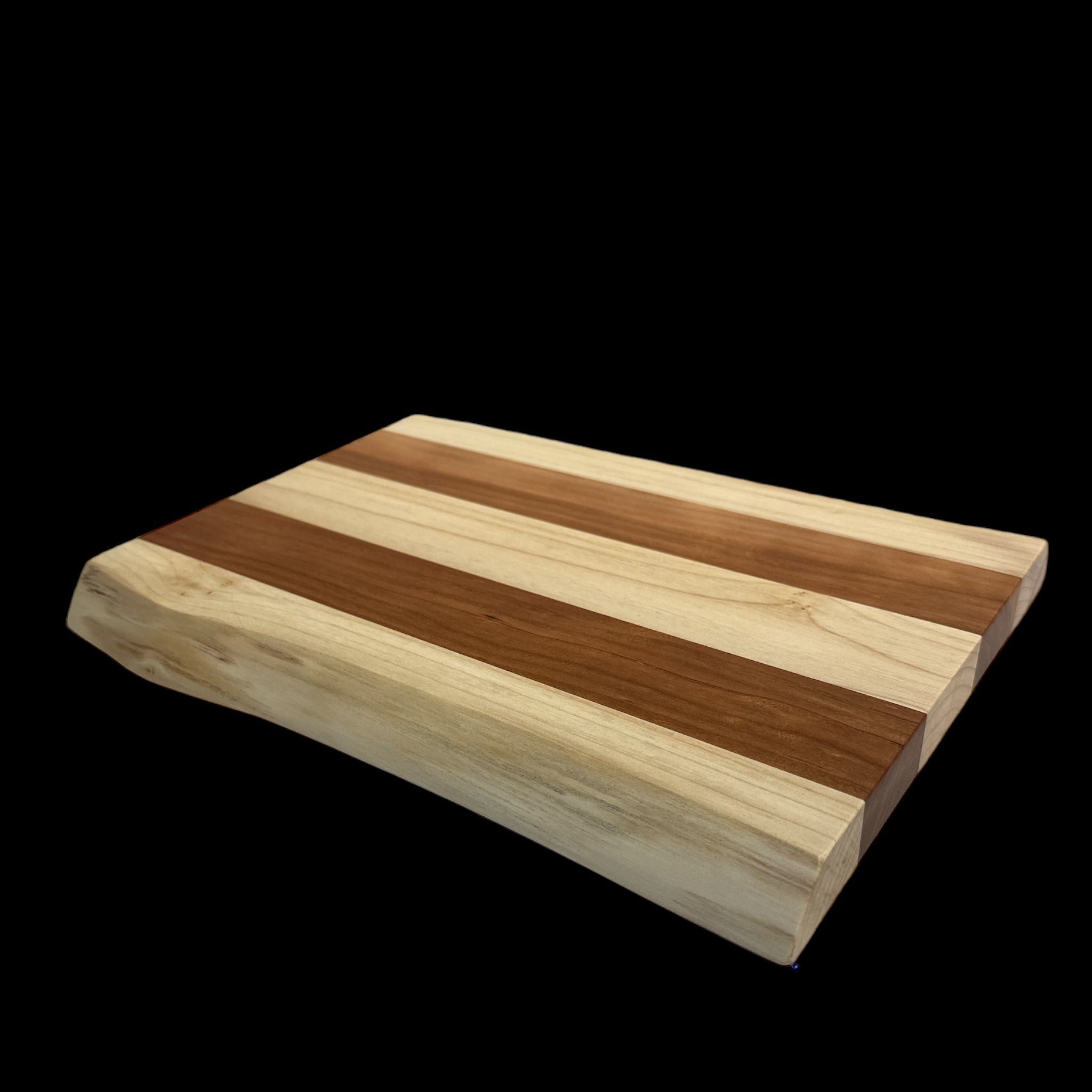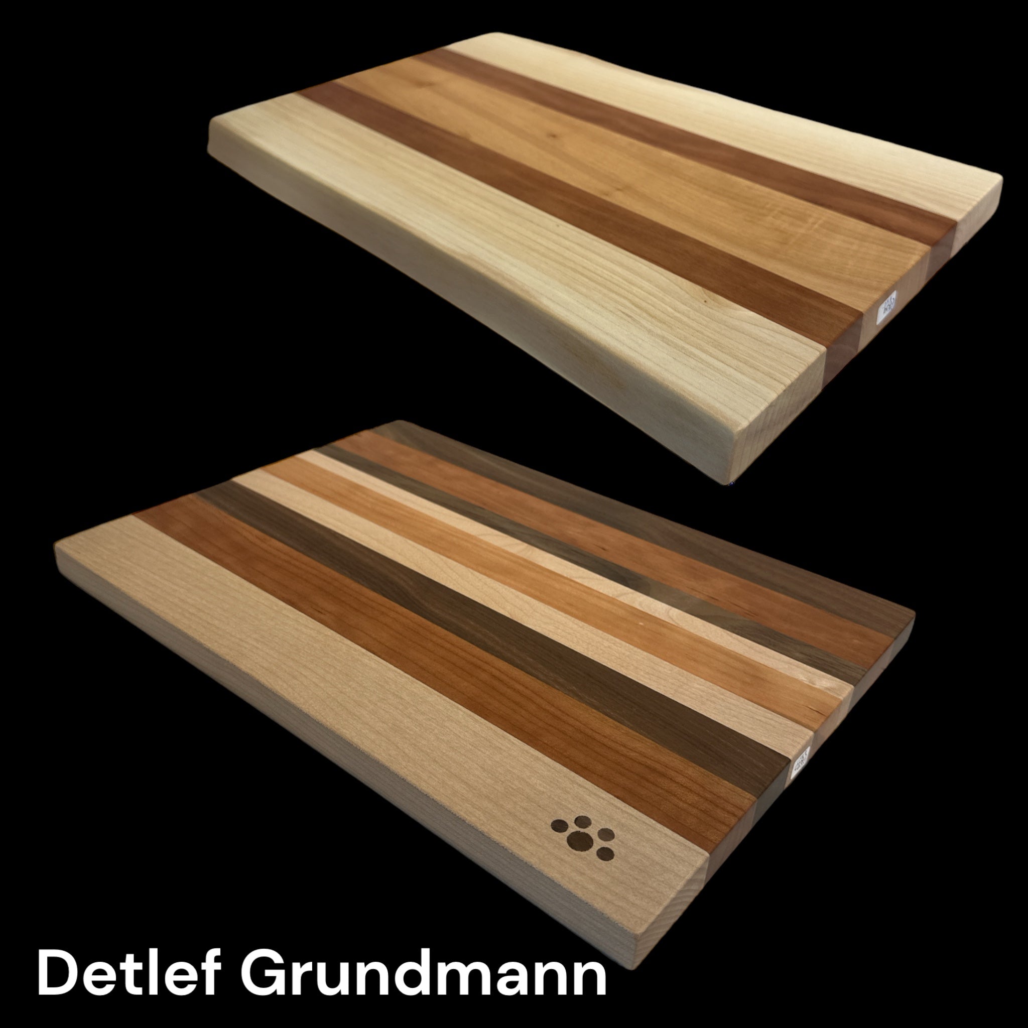 A Beautiful hand crafted cutting board. Made on Vancouver Island by Detlef Grundmann from locally grown woods. The configuration of the woods will vary from board to board.