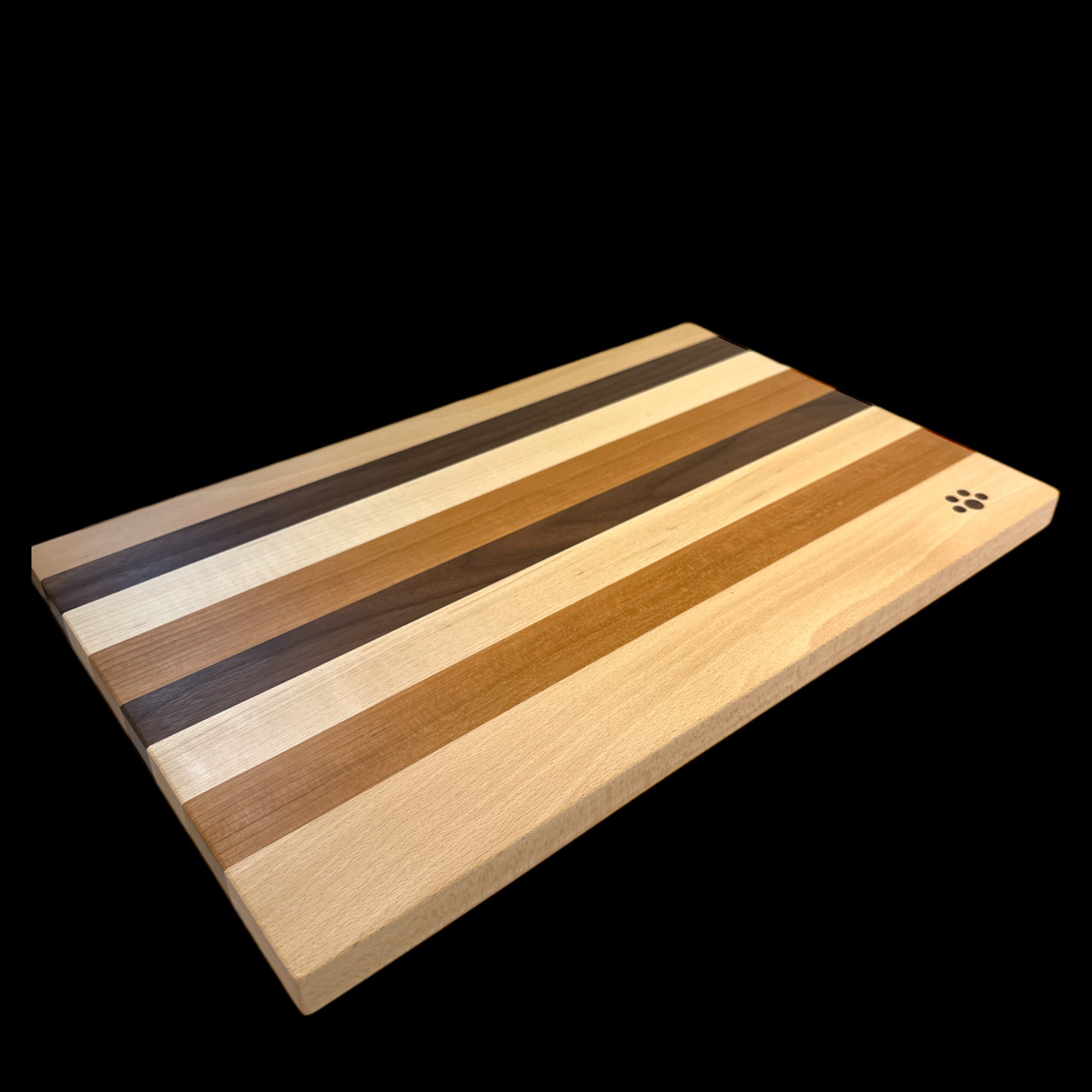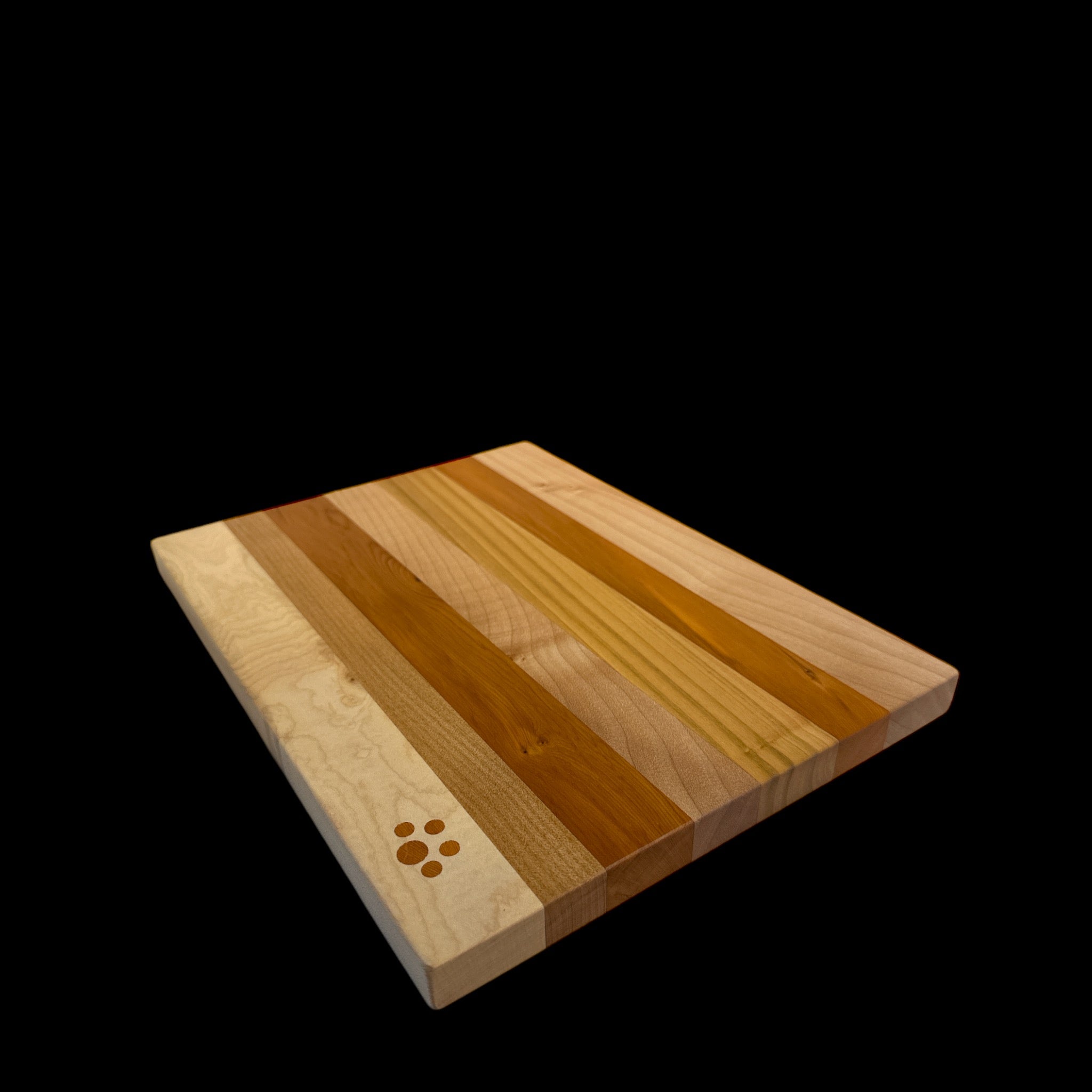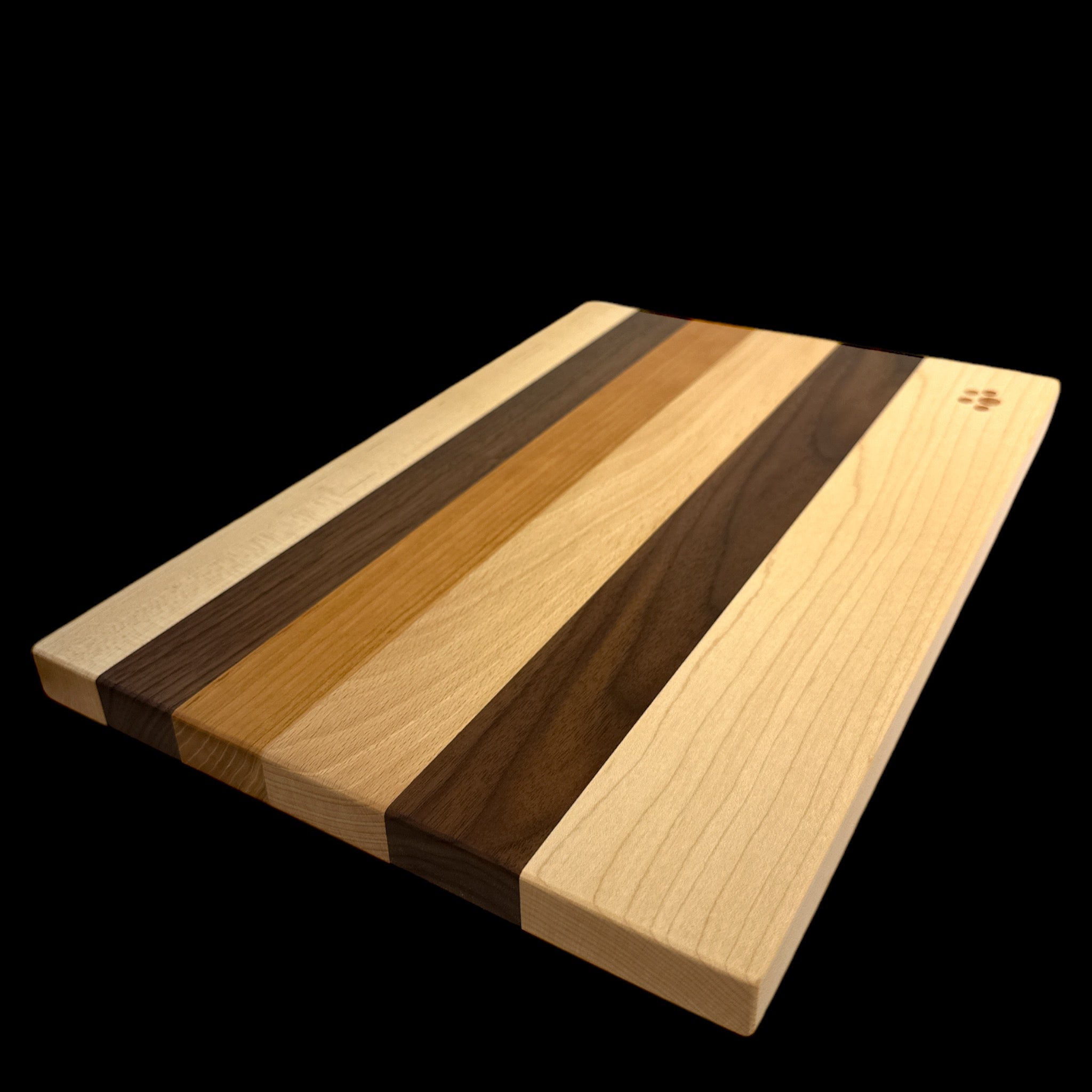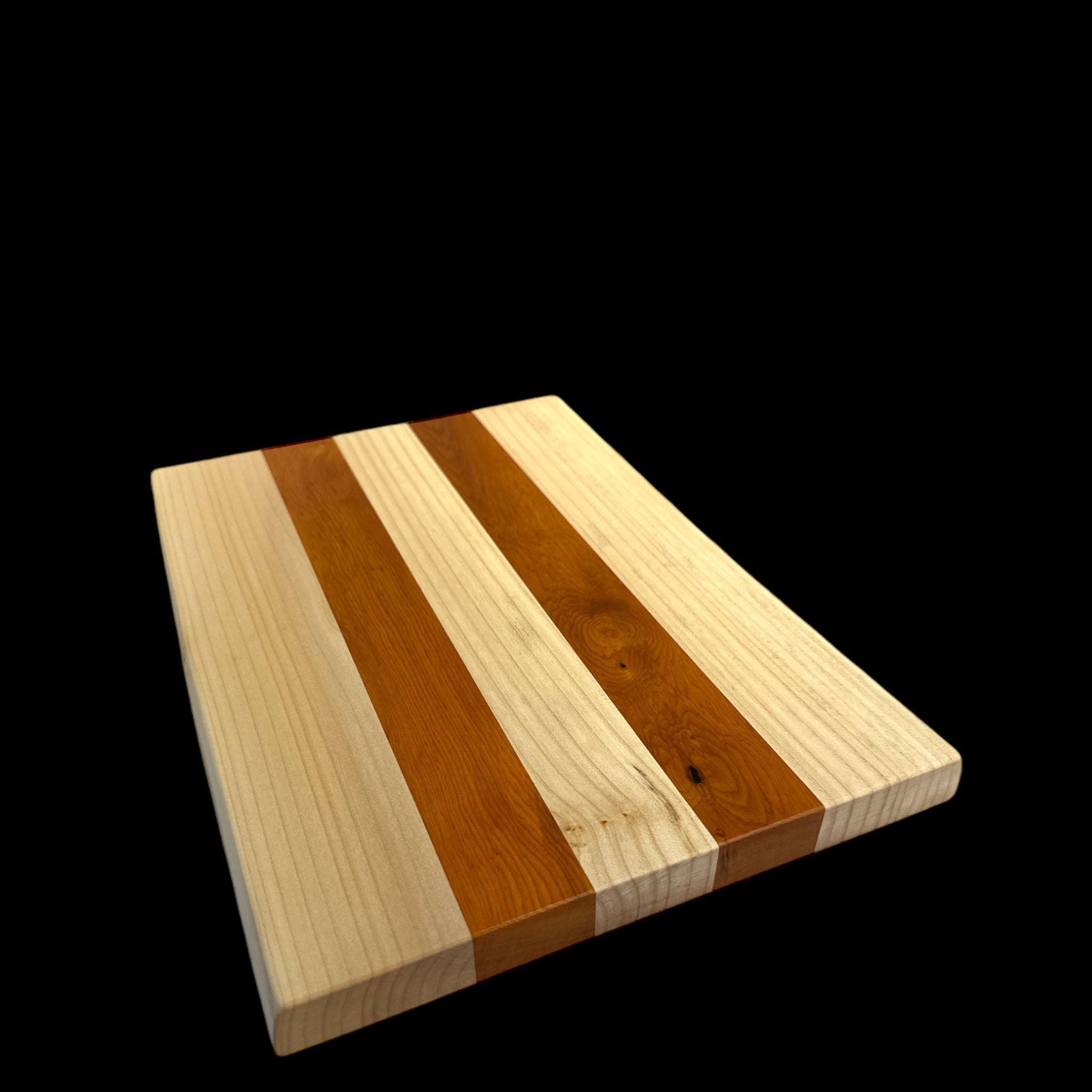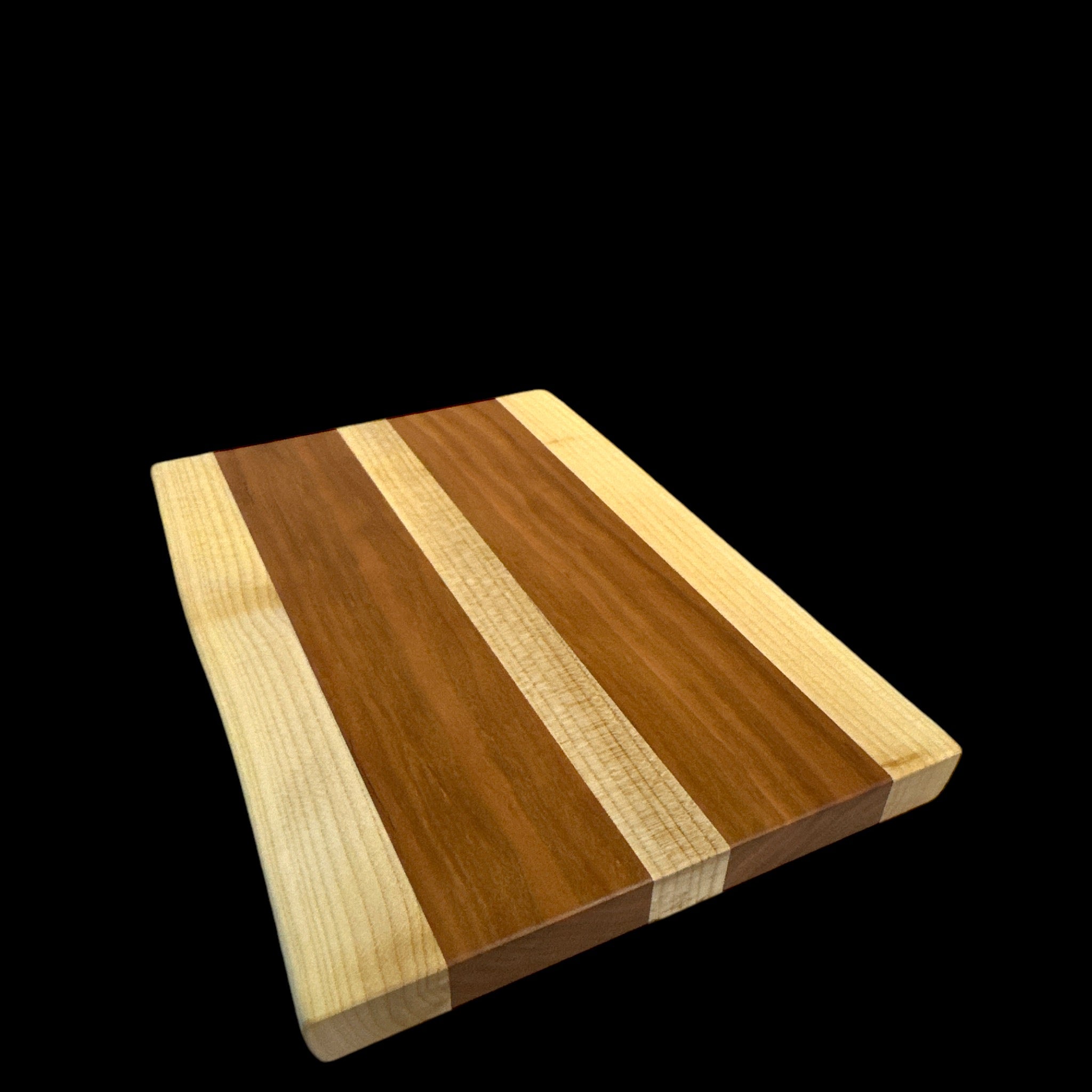 A Beautiful hand crafted cutting board. Made on Vancouver Island by Detlef Grundmann from locally grown woods. The configuration of the woods will vary from board to board.