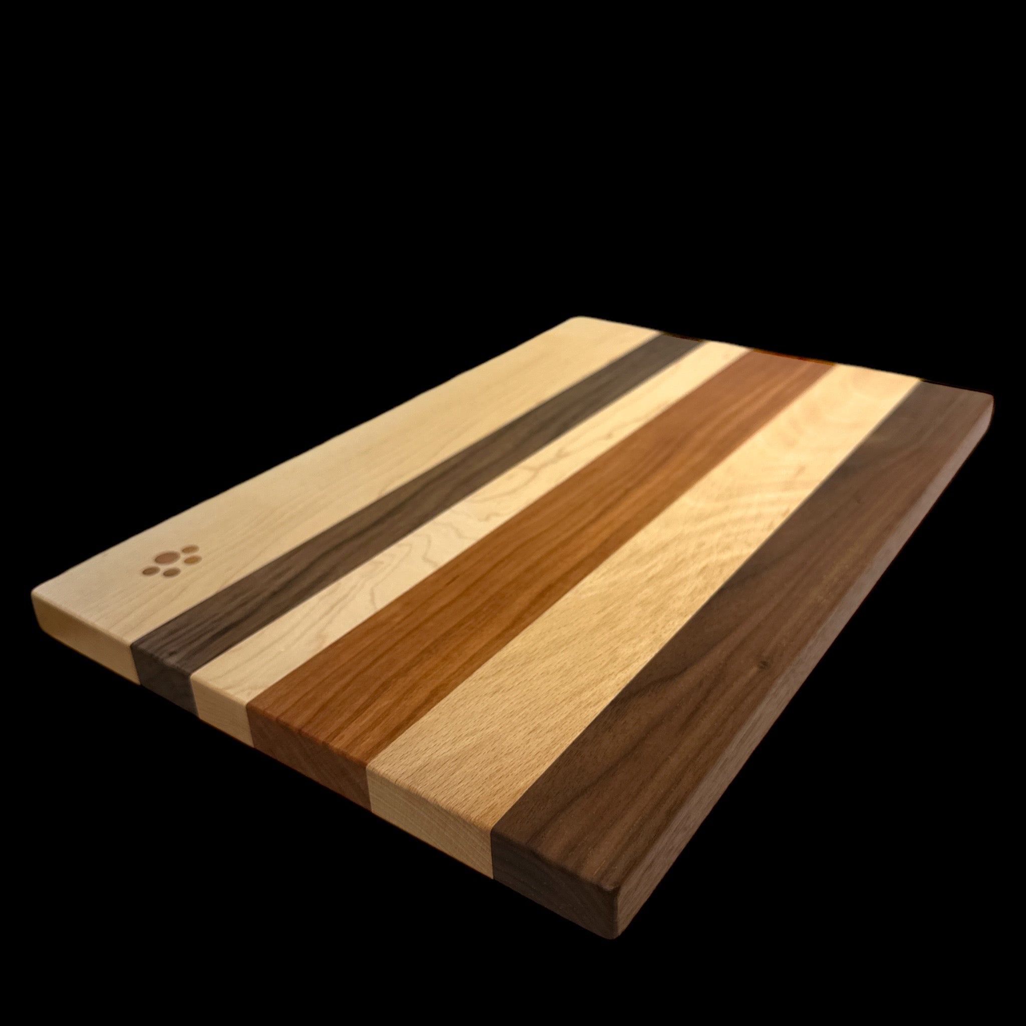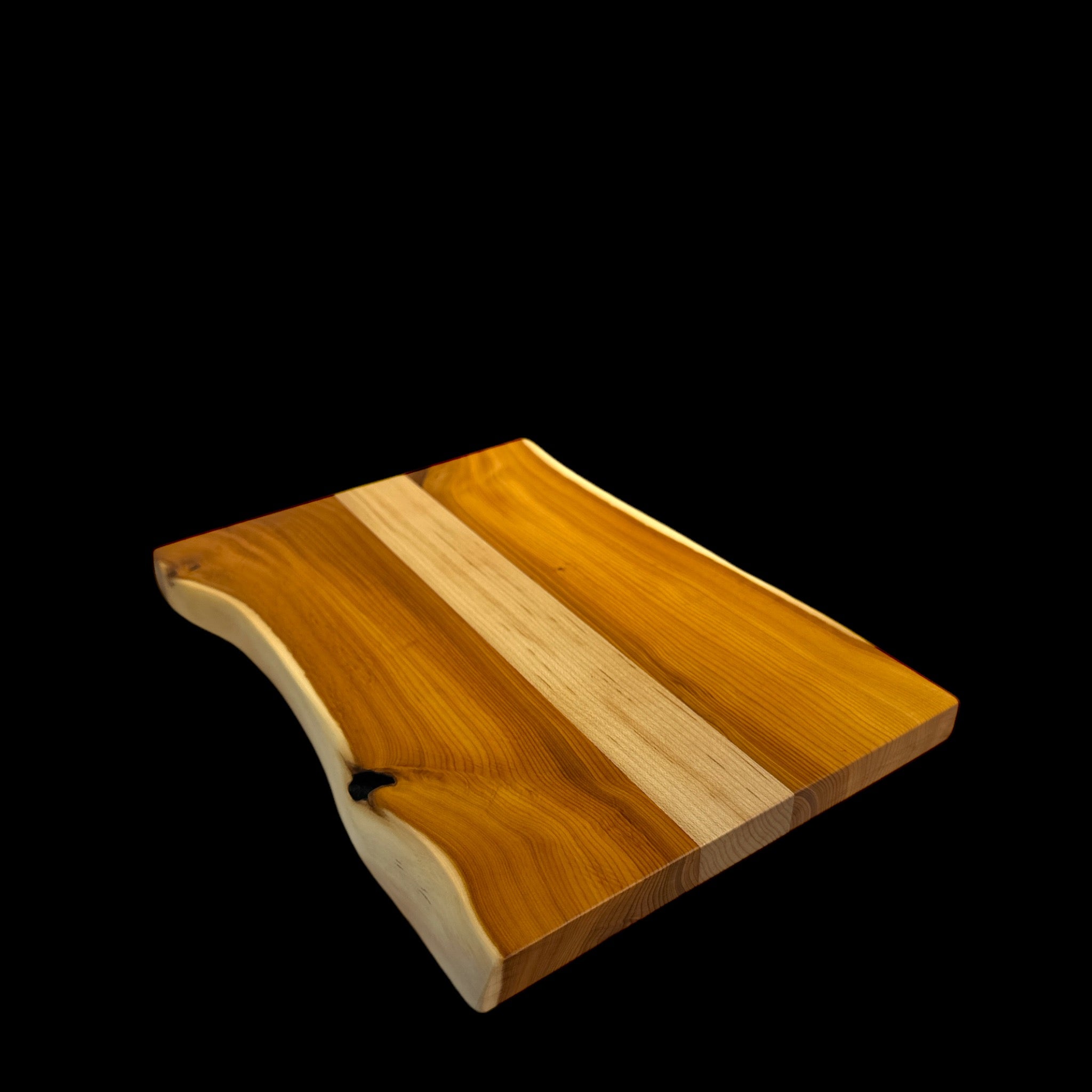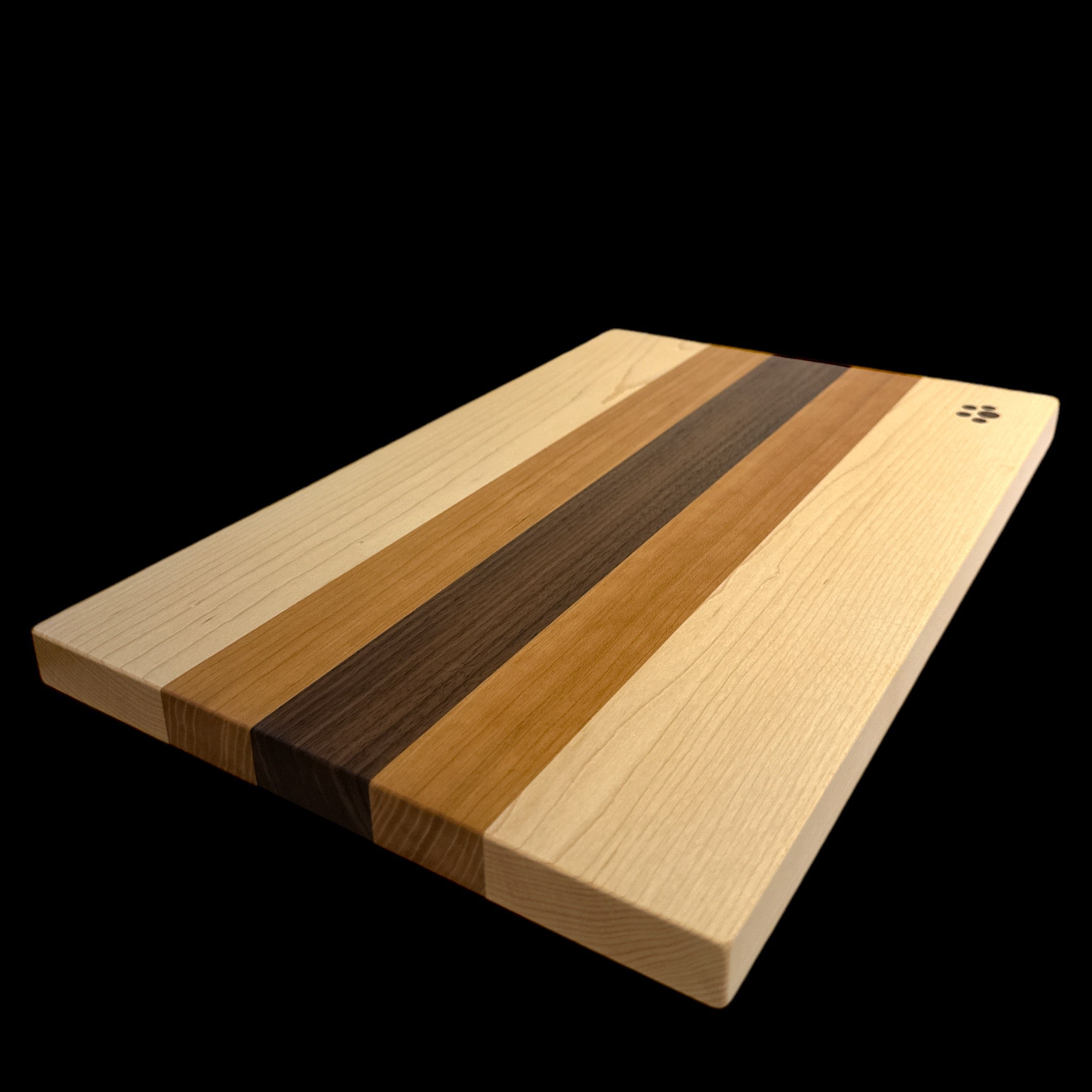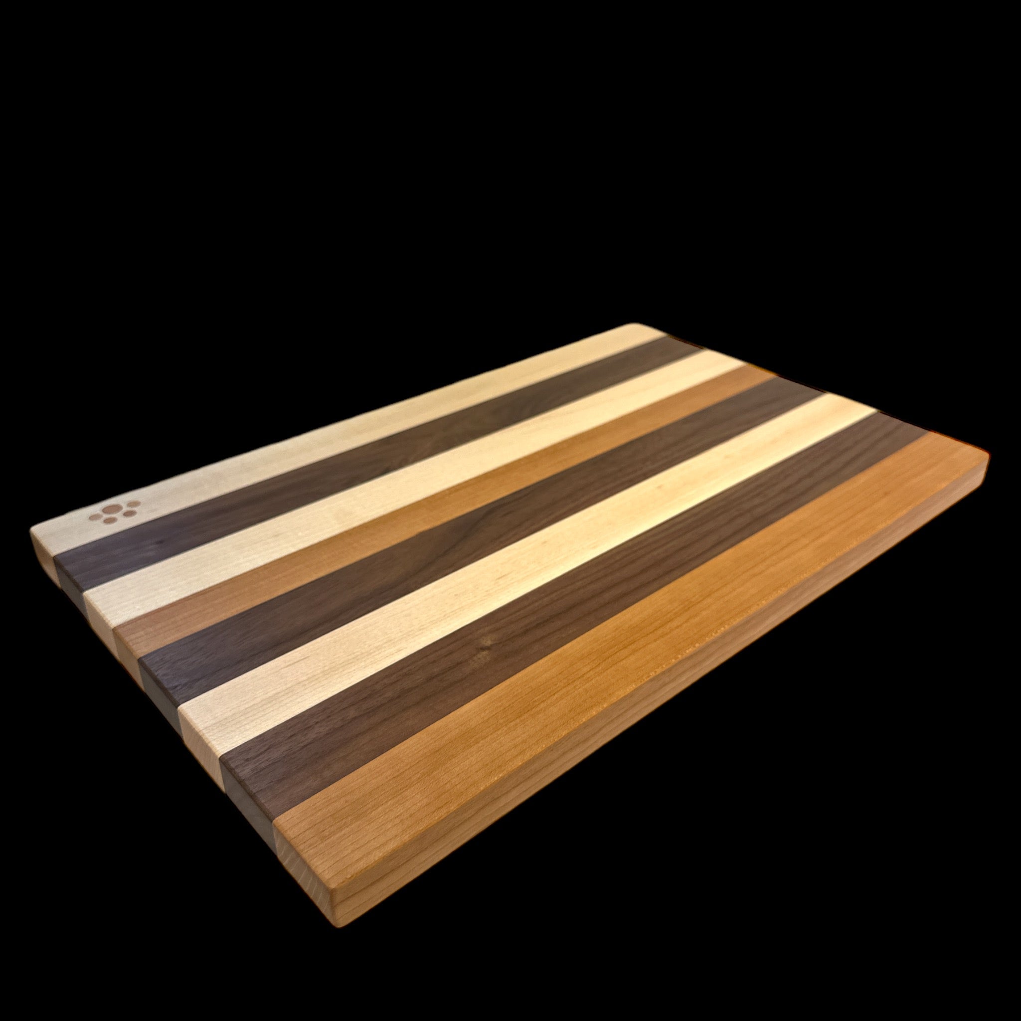 A Beautiful hand crafted cutting board. Made on Vancouver Island by Detlef Grundmann from locally grown woods. The configuration of the woods will vary from board to board.