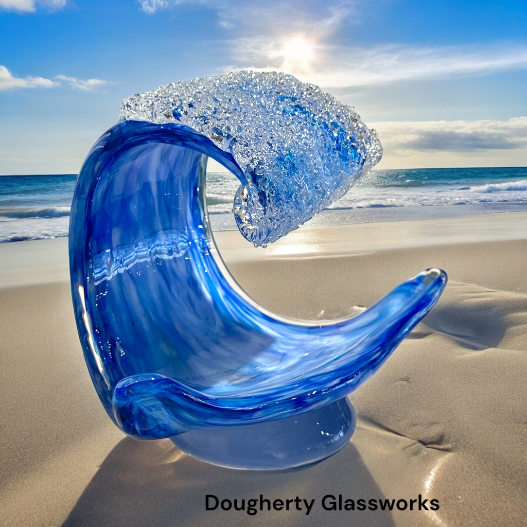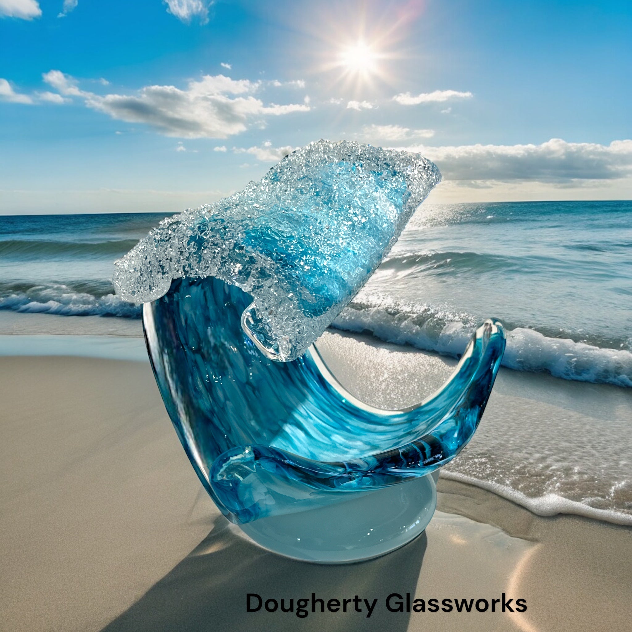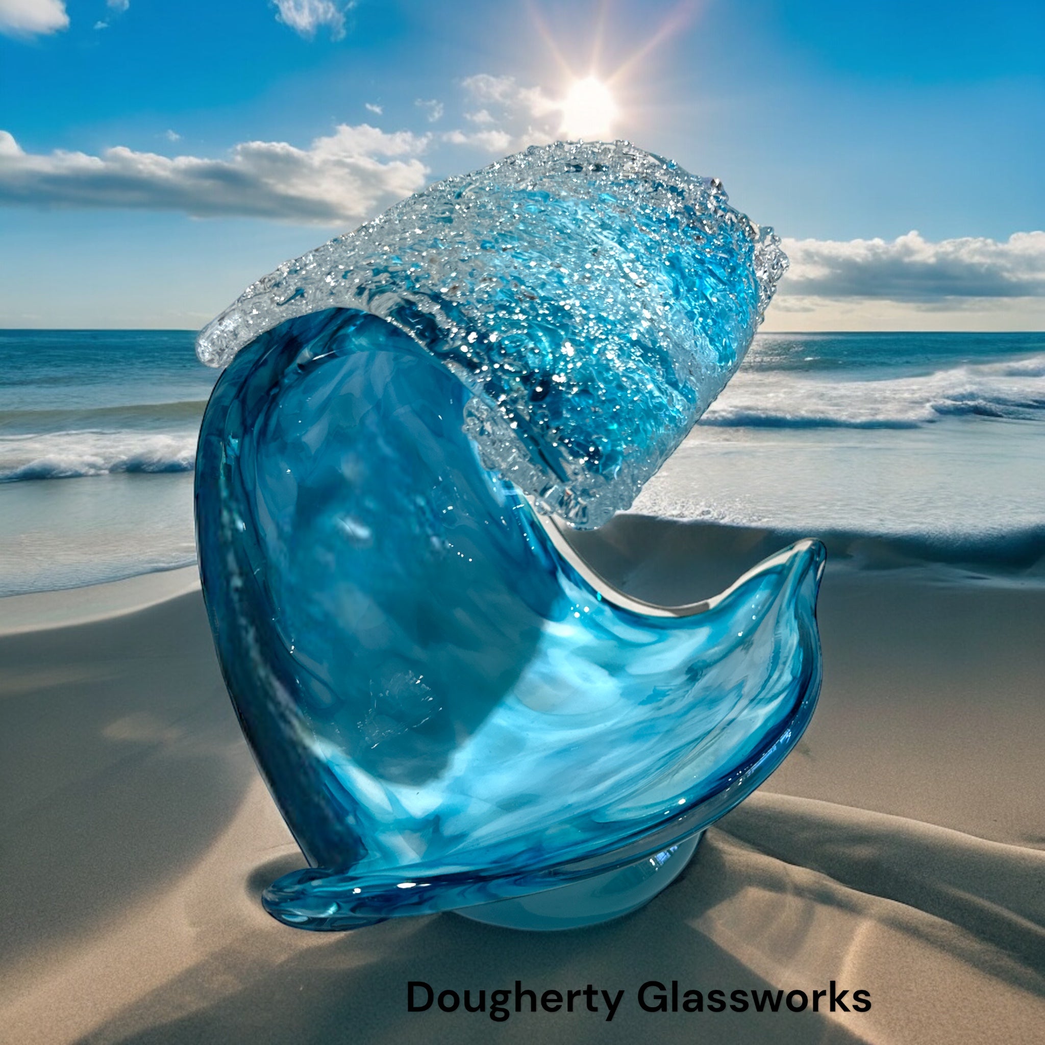 Incredibly beautiful,one of a kind, handcrafted, Wave glass sculptures.