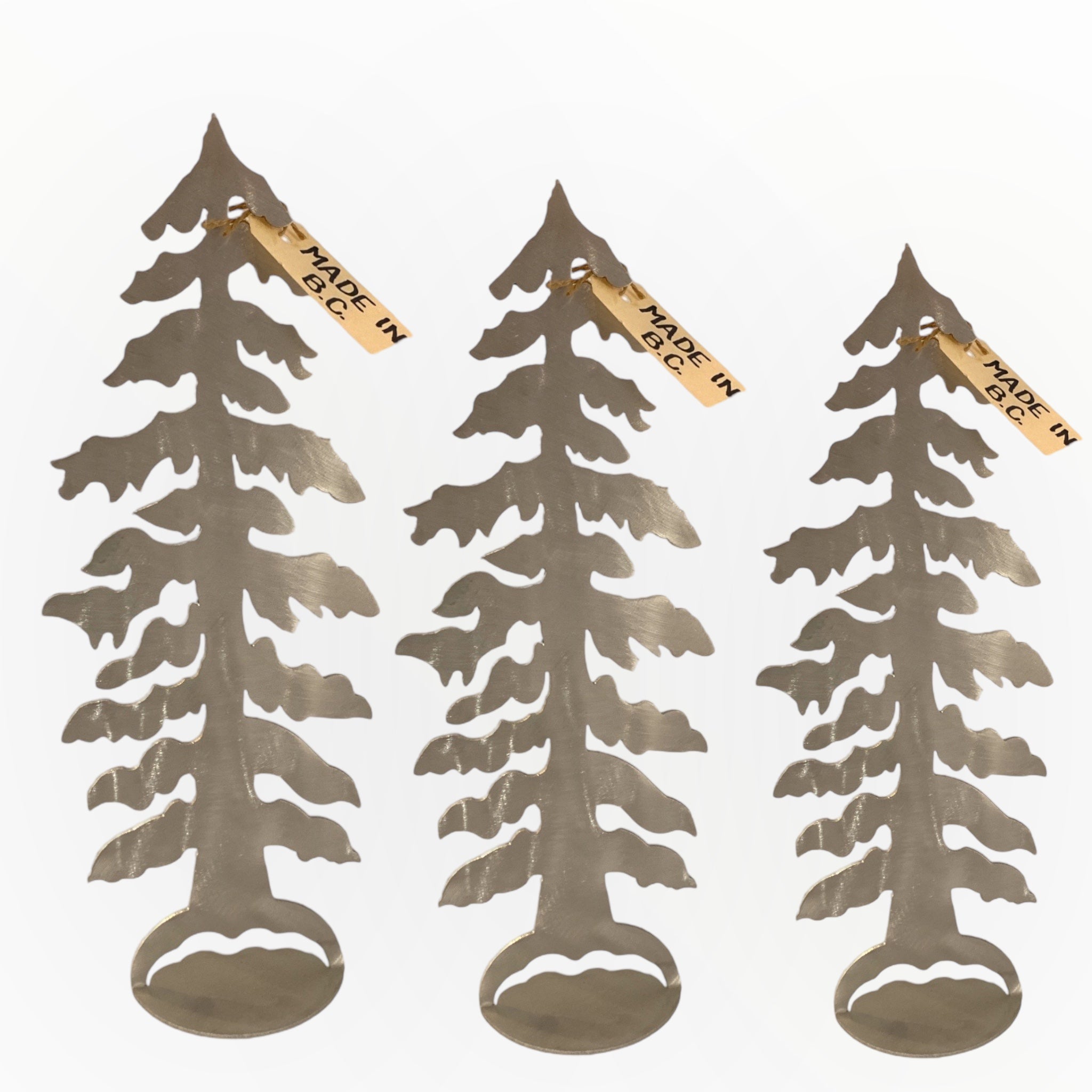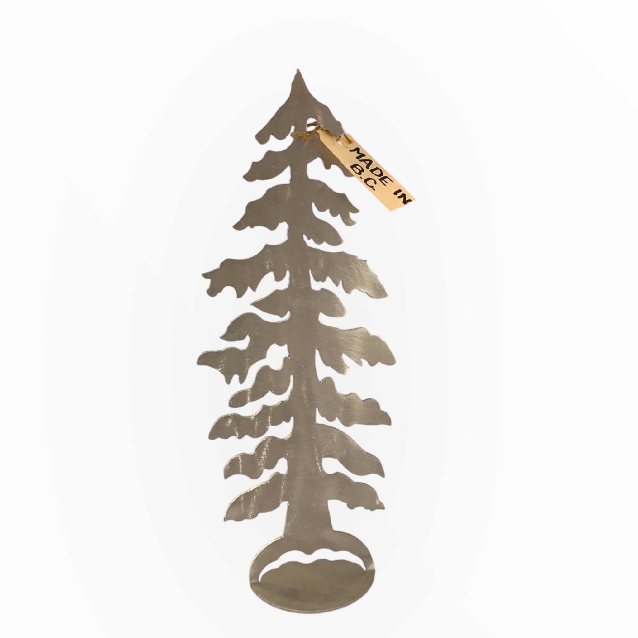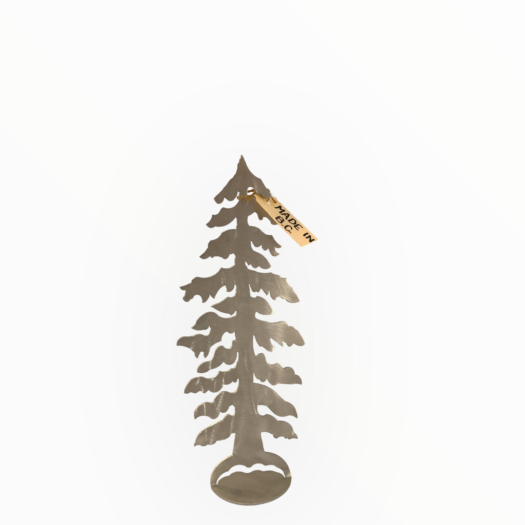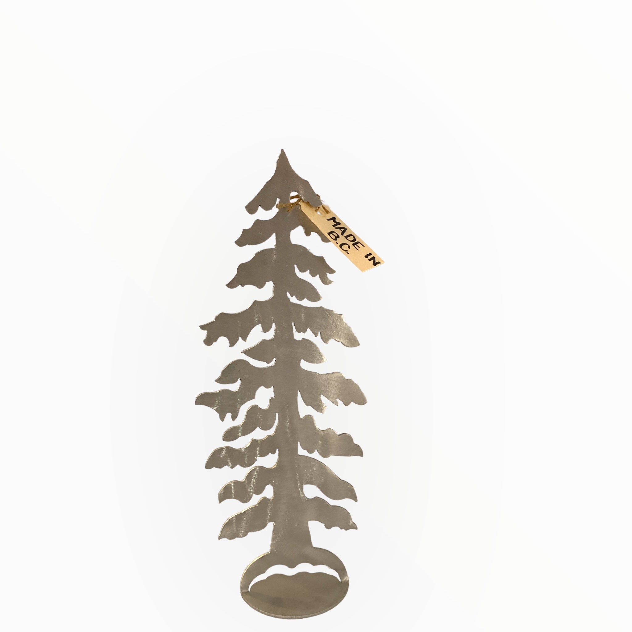 Decorative aluminum evergreen tree, free standing. Makes for a beautiful piece that can displayed indoor or outdoor.