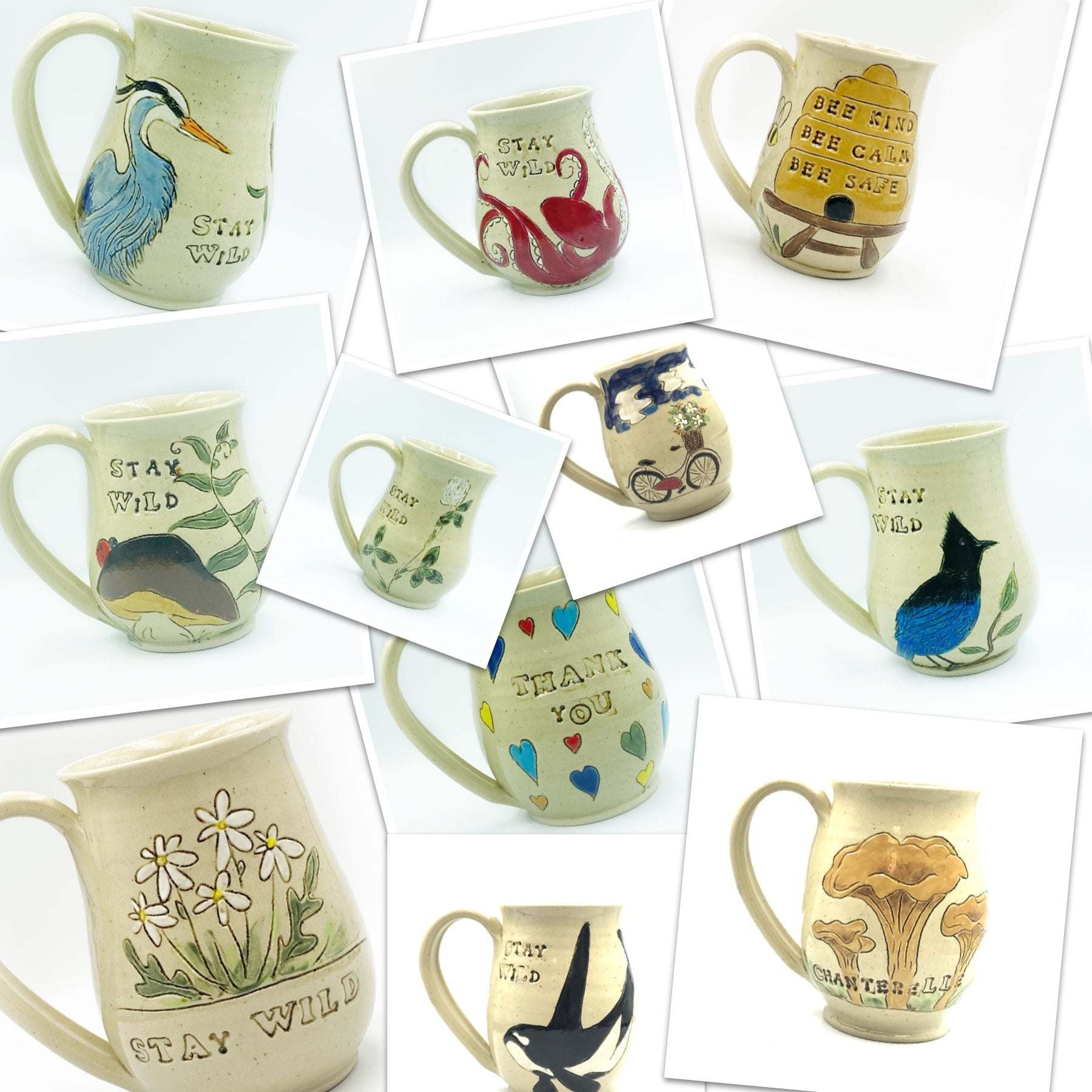 Funky Fungus Creations | Made locally in Parksville B.C. since 2005, Funky Fungus Creations are inspired by our local Island forests and all of our precious treasures found within. Mugs approximately 500ml.