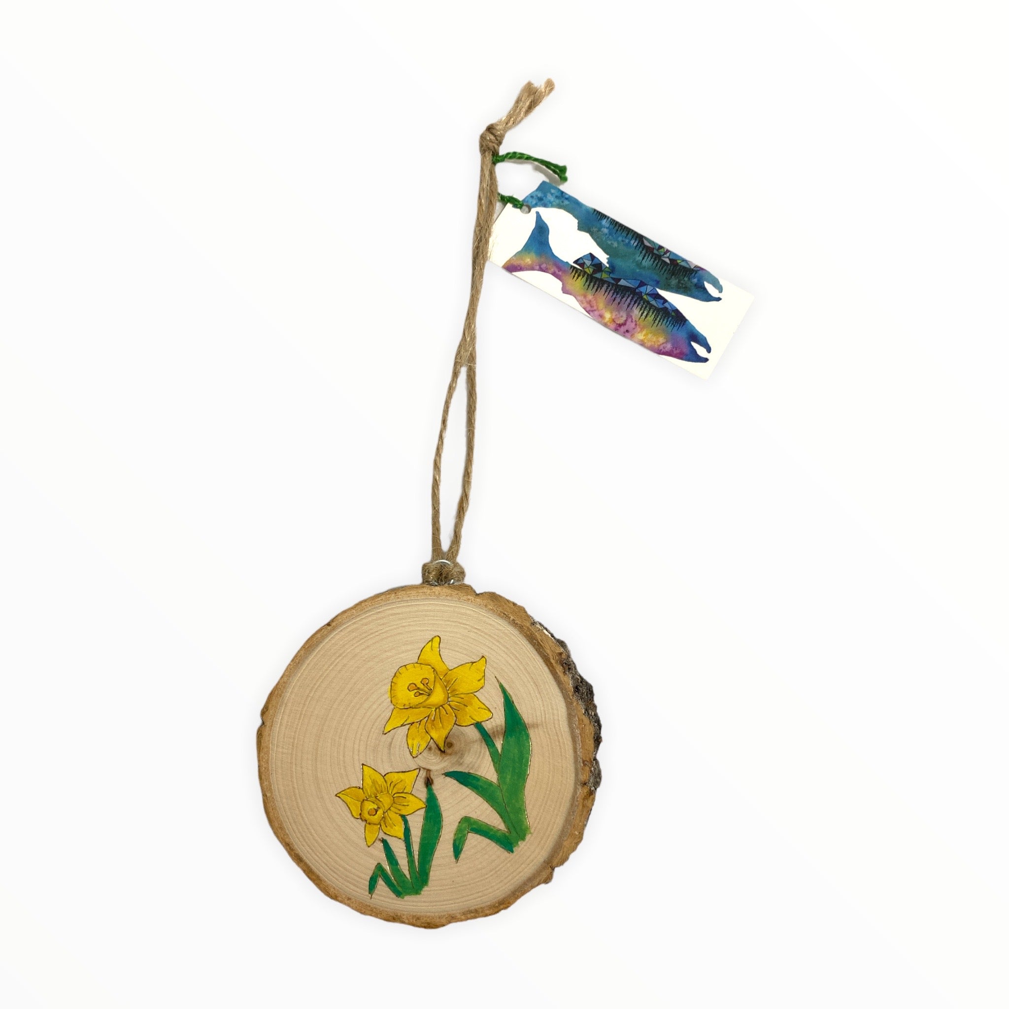 Hand-painted West Coast Wooden Ornament, Daffodil