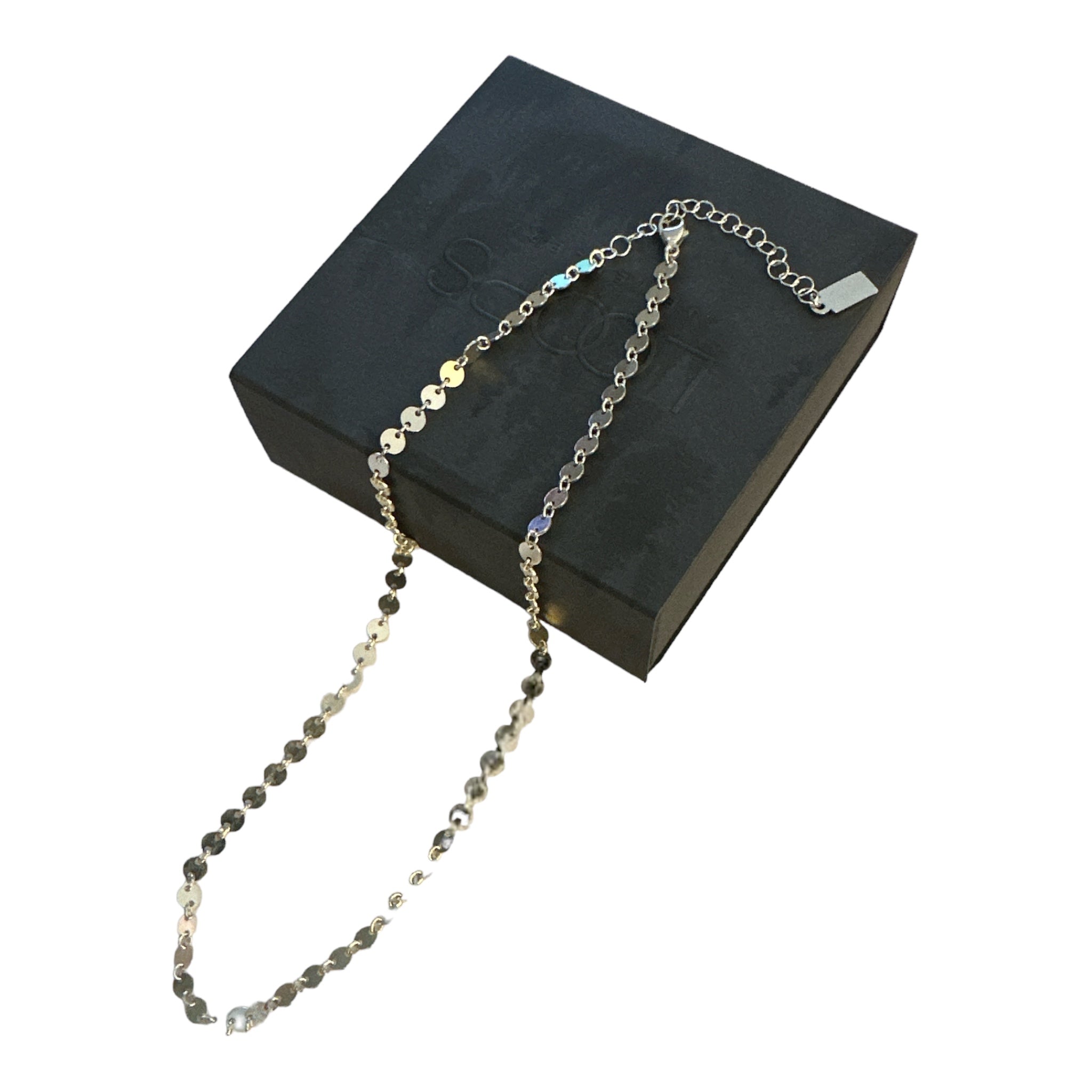 Illuminate any look with this necklace that shines and reflects light beautifully.  This 4mm discs linked chain also comes with a 2 inch chain extender to create additional length.
