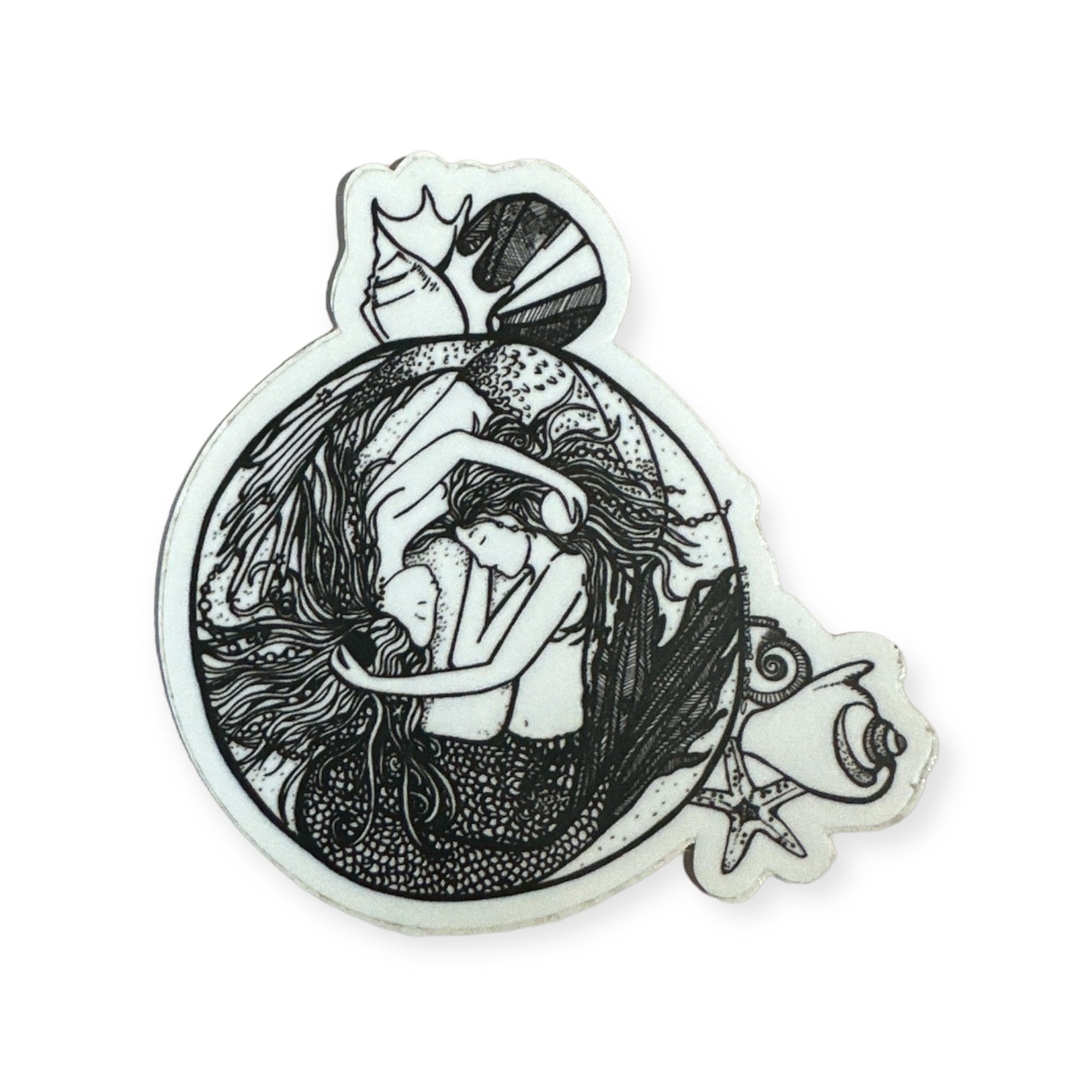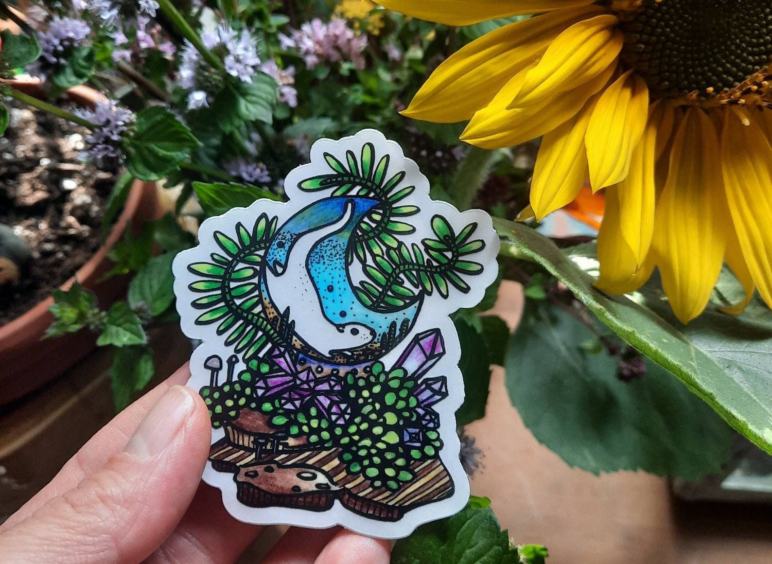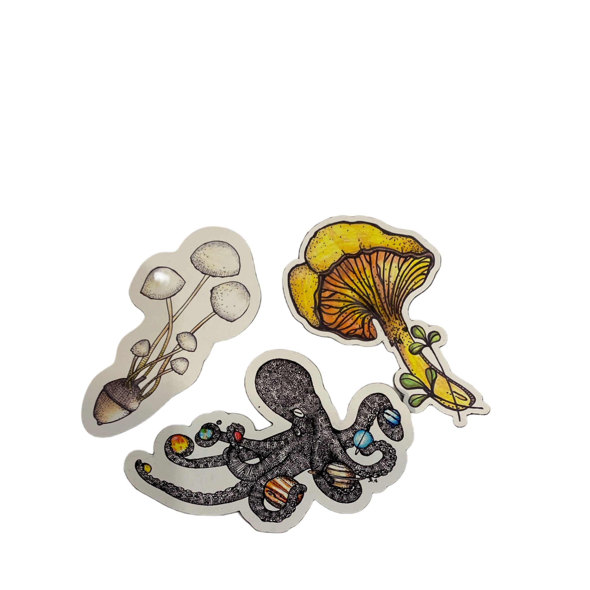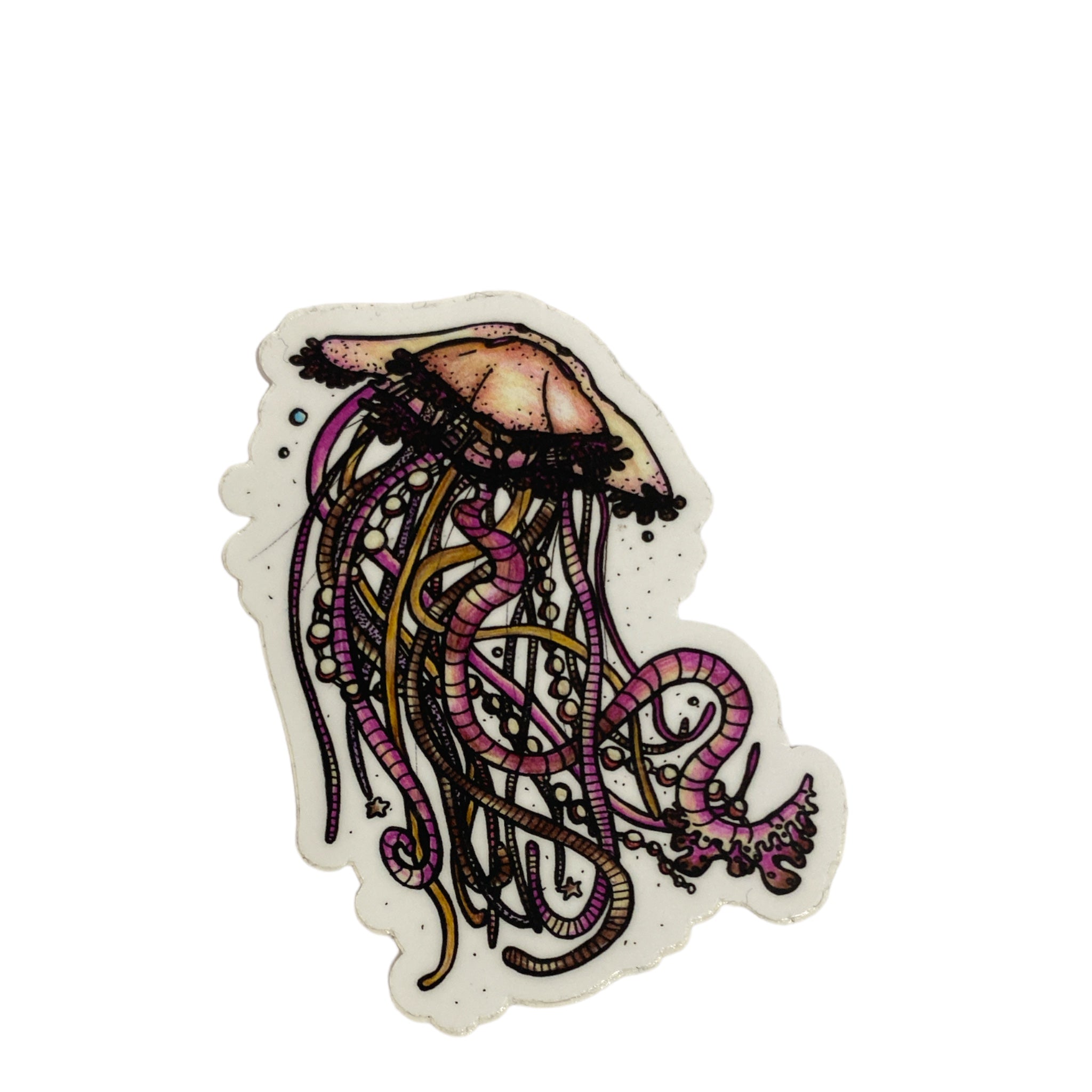 Jessie's beautiful drawing made into vinyl and holographic stickers.