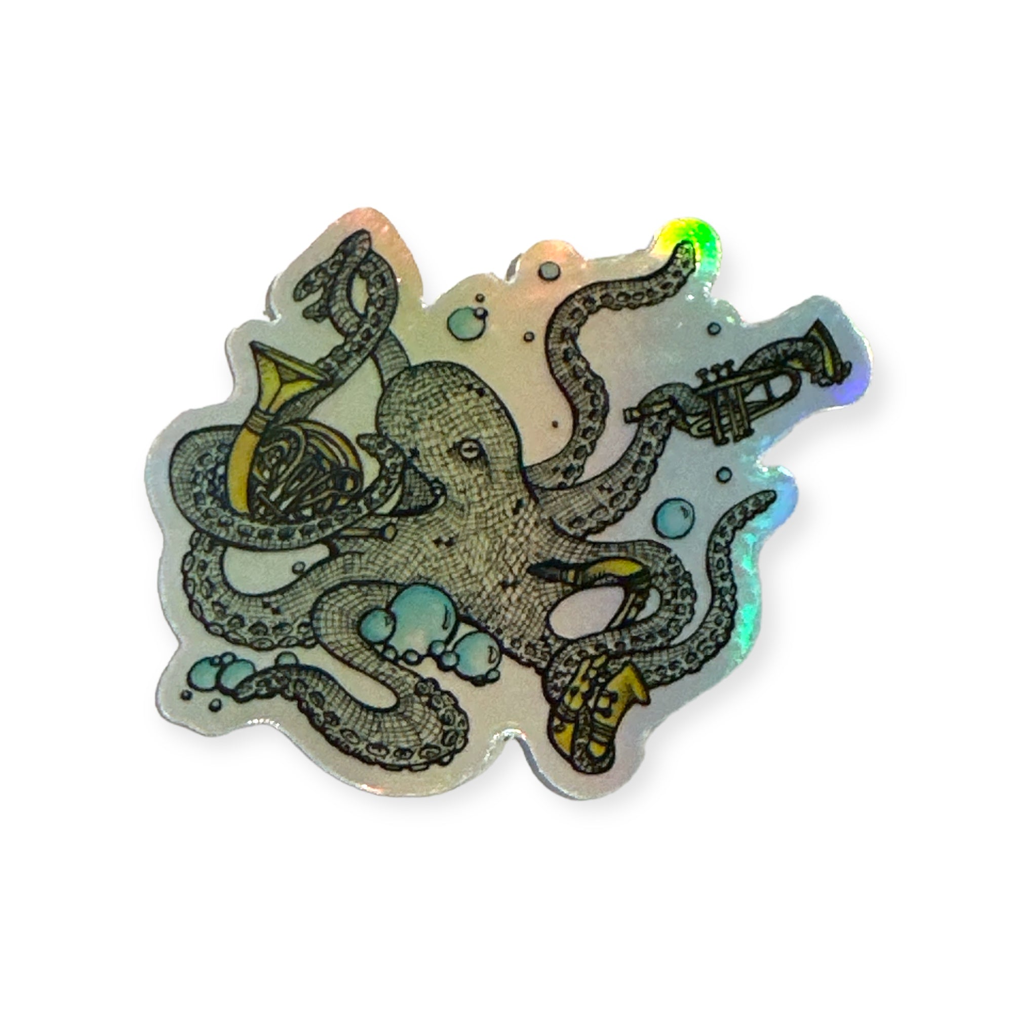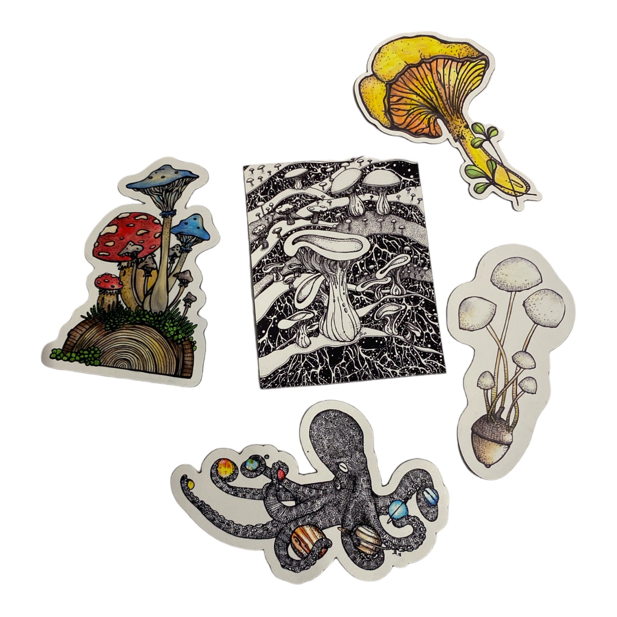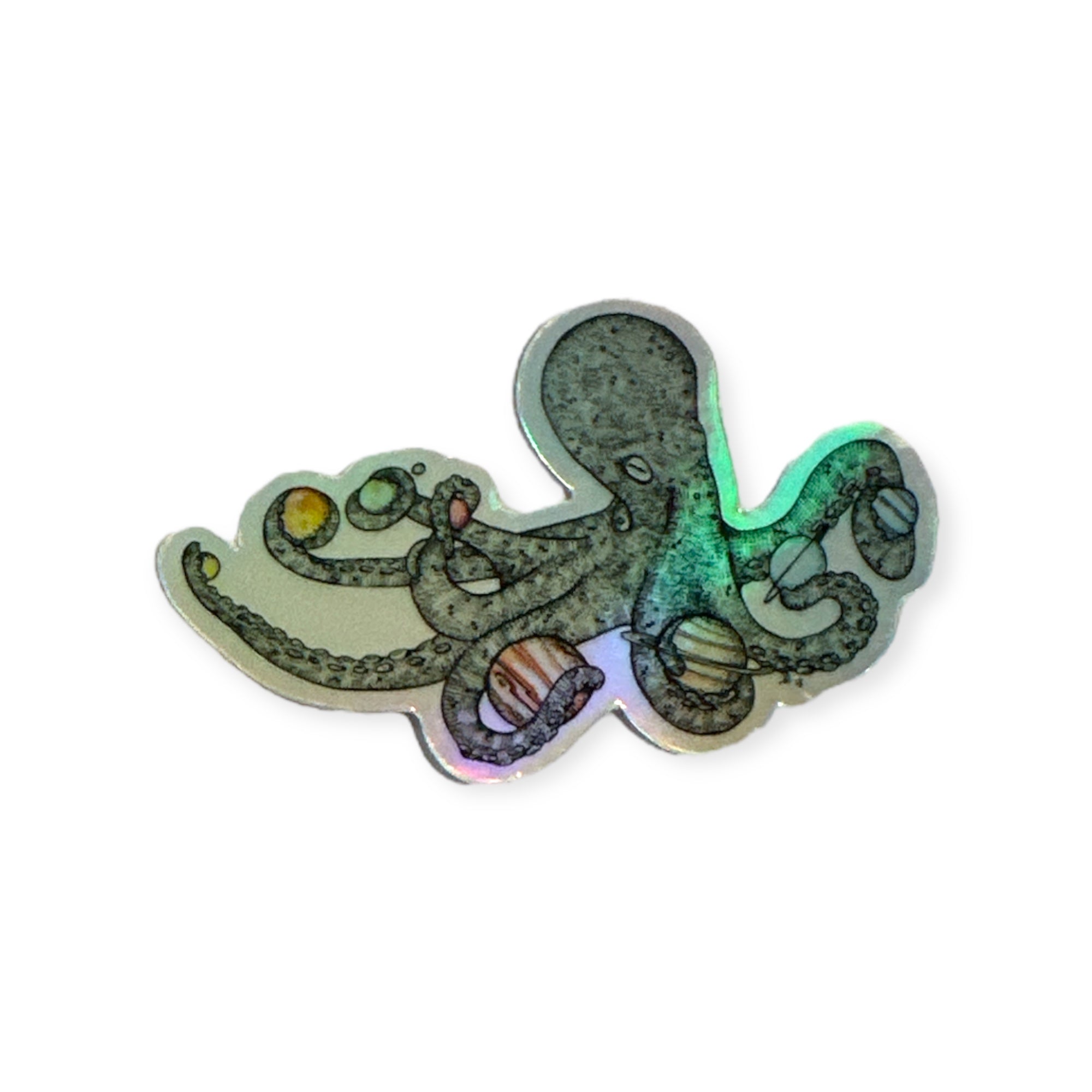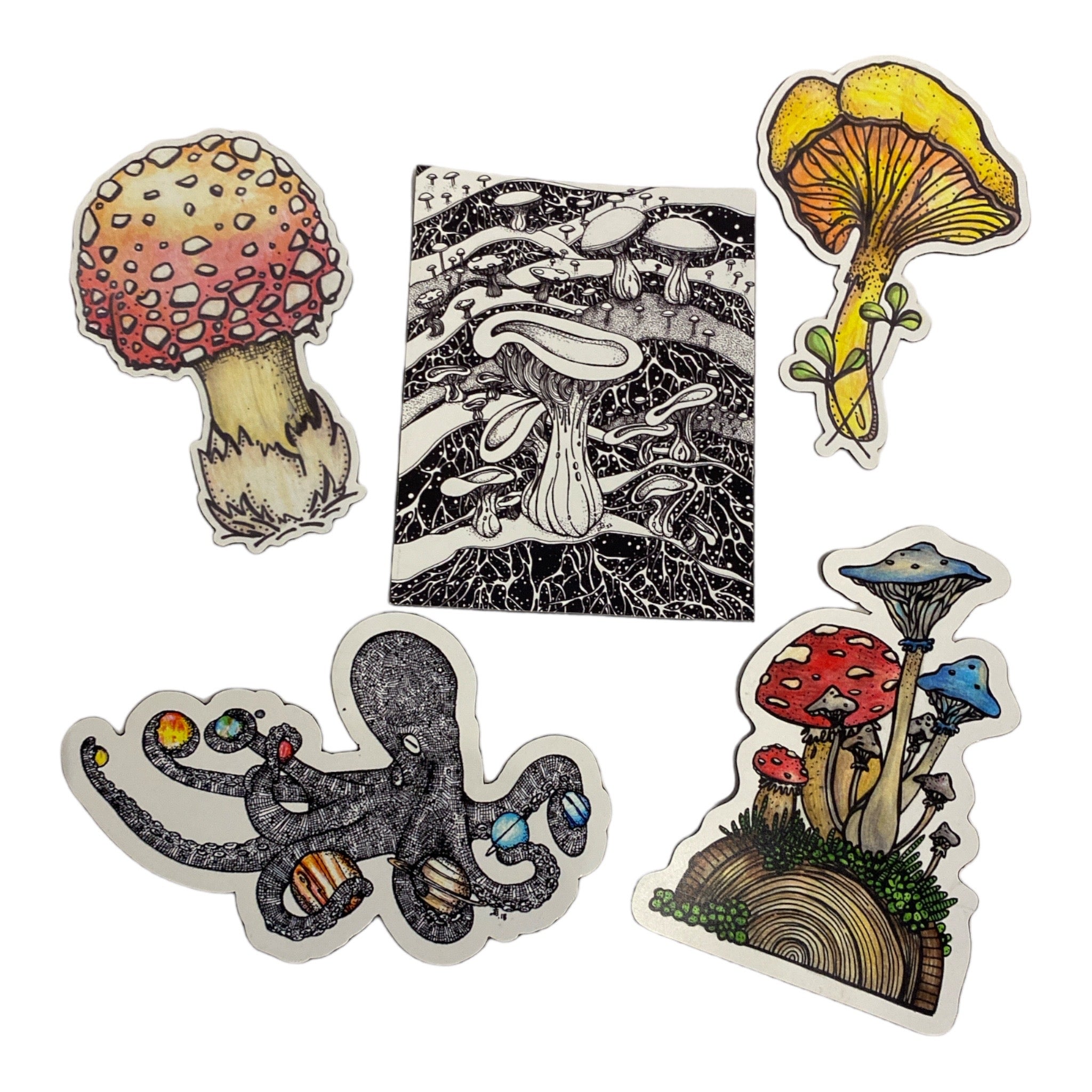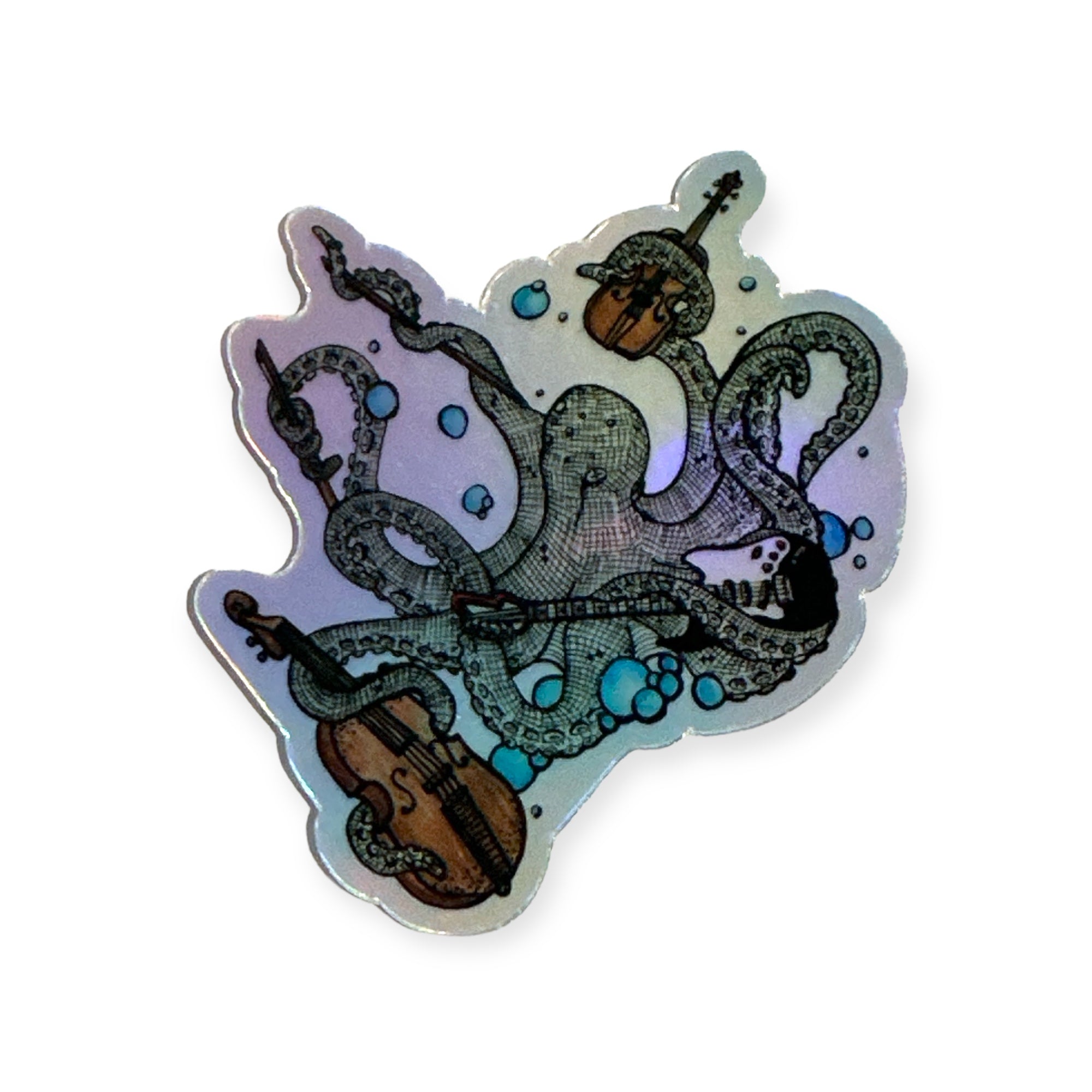 Jessie's beautiful drawing made into vinyl and holographic stickers.