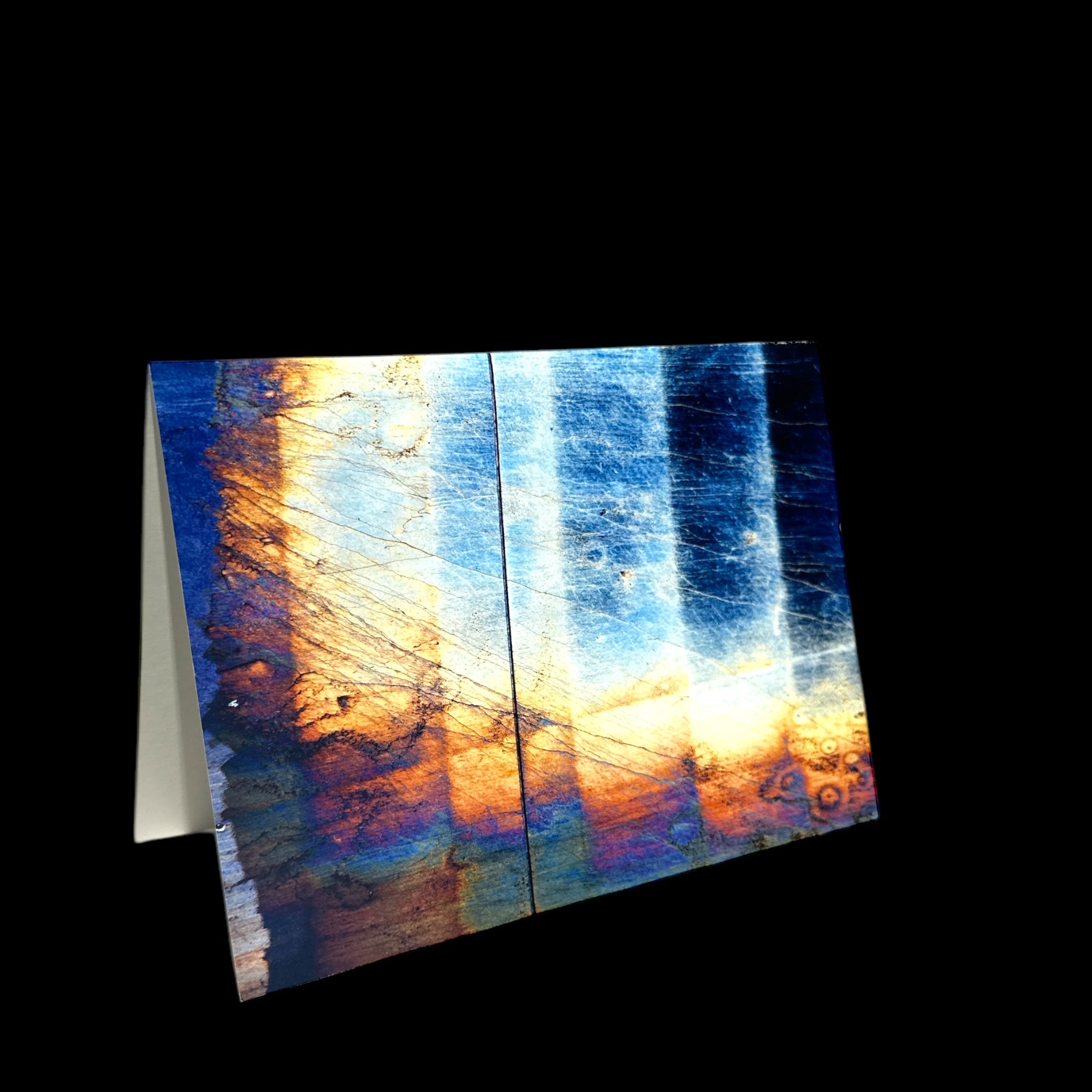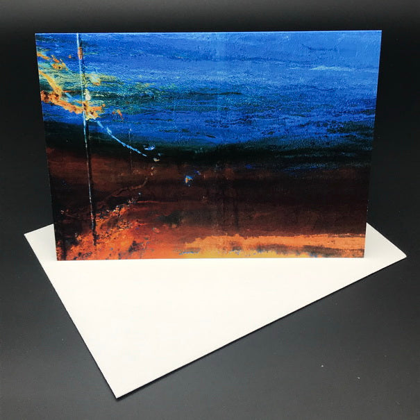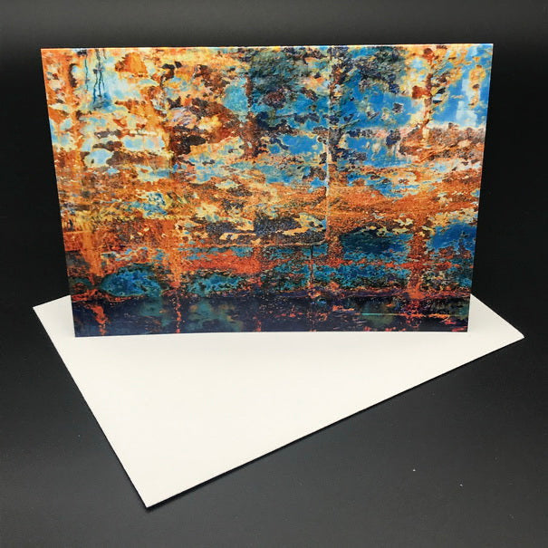 Jill’s work is not limited to West Coast images and her Abstract work reveals an appreciation for the spectacular colour and texture found on boats, barges and tankers that have become rusted by the sea. She enjoys the thrill of discovering something beautiful where it may not be obvious. The names of those pieces are drawn from the music and the lyrics that make up the sound track of her life. These images are often paired with her poetry and writing and has published three books of such combinations in the last few years; Blue Meets Blue, Untangled and One Thread.