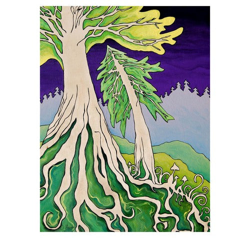 Living and growing up on the west coast surrounded by forest and sea, has filled Jodi with a deep appreciation for the rich natural systems she celebrates in her paintings. At one time she lived in both Australia and Europe, now drawing on elements from many environments to develop a universal feeling in her compositions.