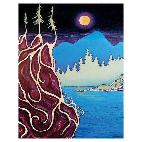 Jodi Mayne is a west coast landscape painter from Vancouver Island, British Columbia Canada. Now based in the capital city of Victoria, she grew up in the island’s nearby Cowichan Valley and studied visual arts at the Emily Carr University of Art & Design in Vancouver. While completing her visual art degree Jodi focused on printmaking techniques and developed the love for bold line and shape now evident in her painting and drawing.