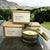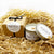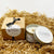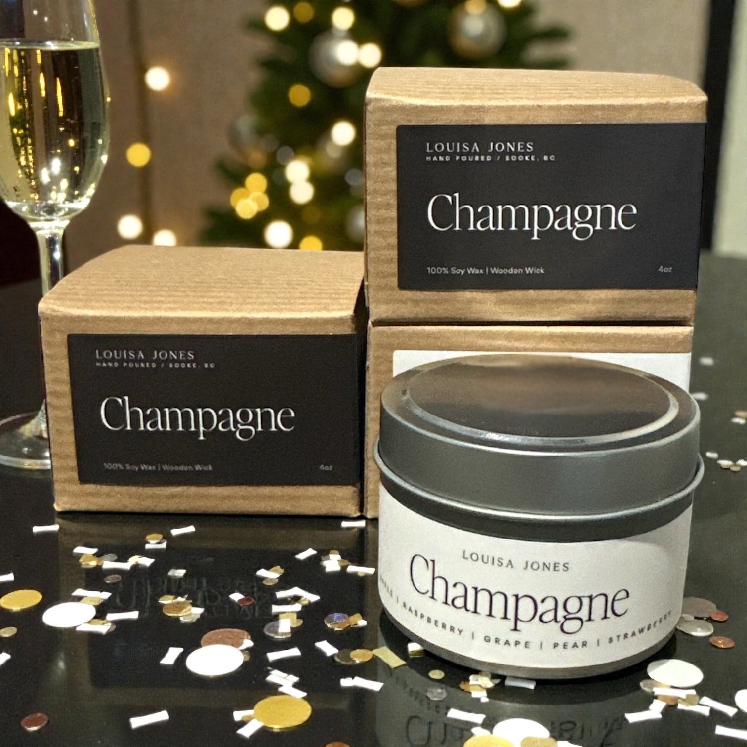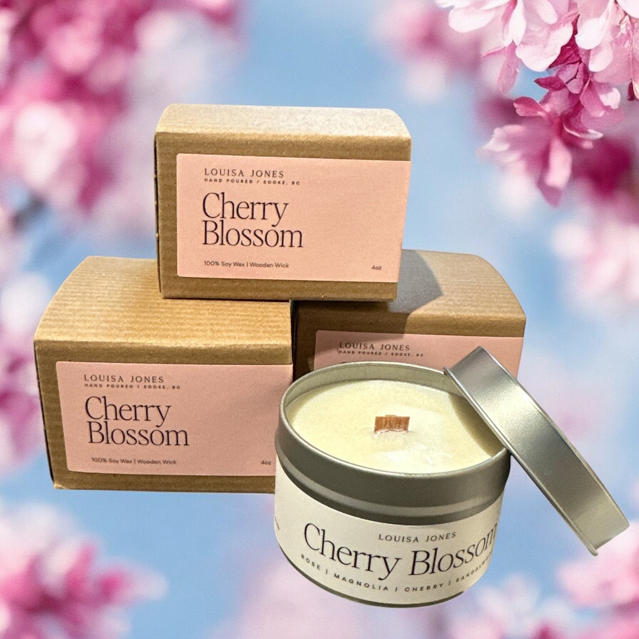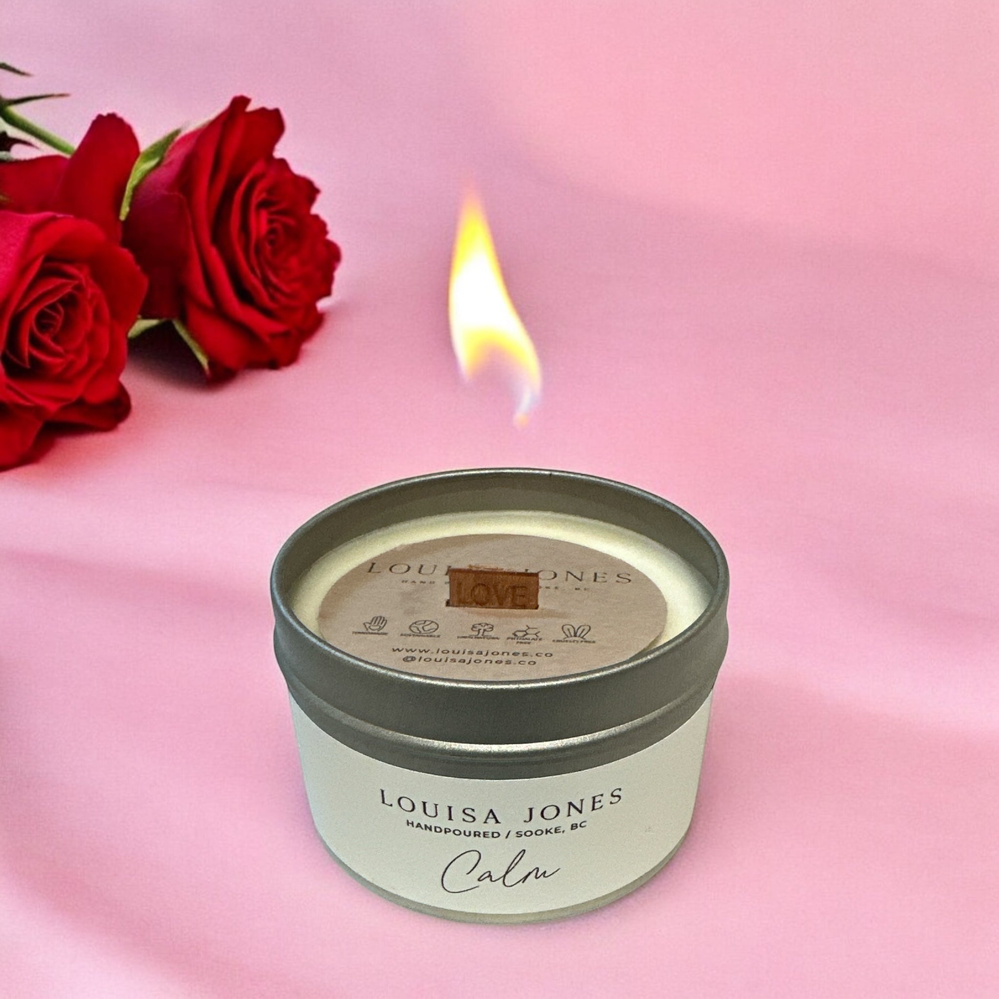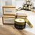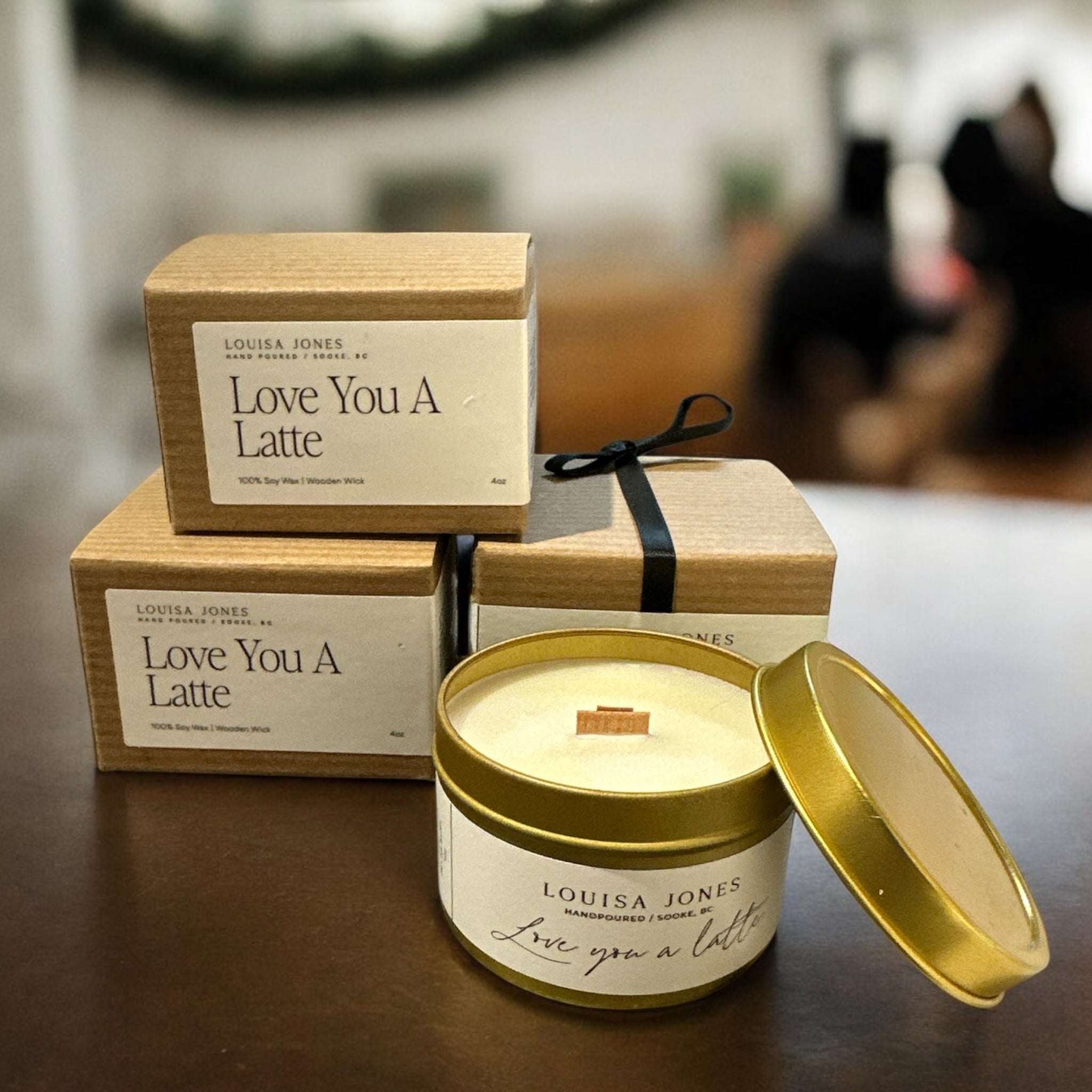 Wooden wick 100% Soy candles in luxe gold and silver tins in a gift box.